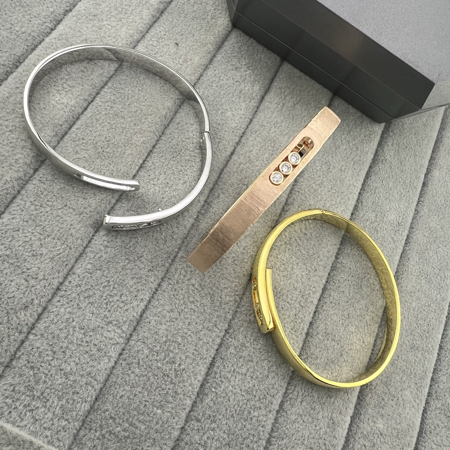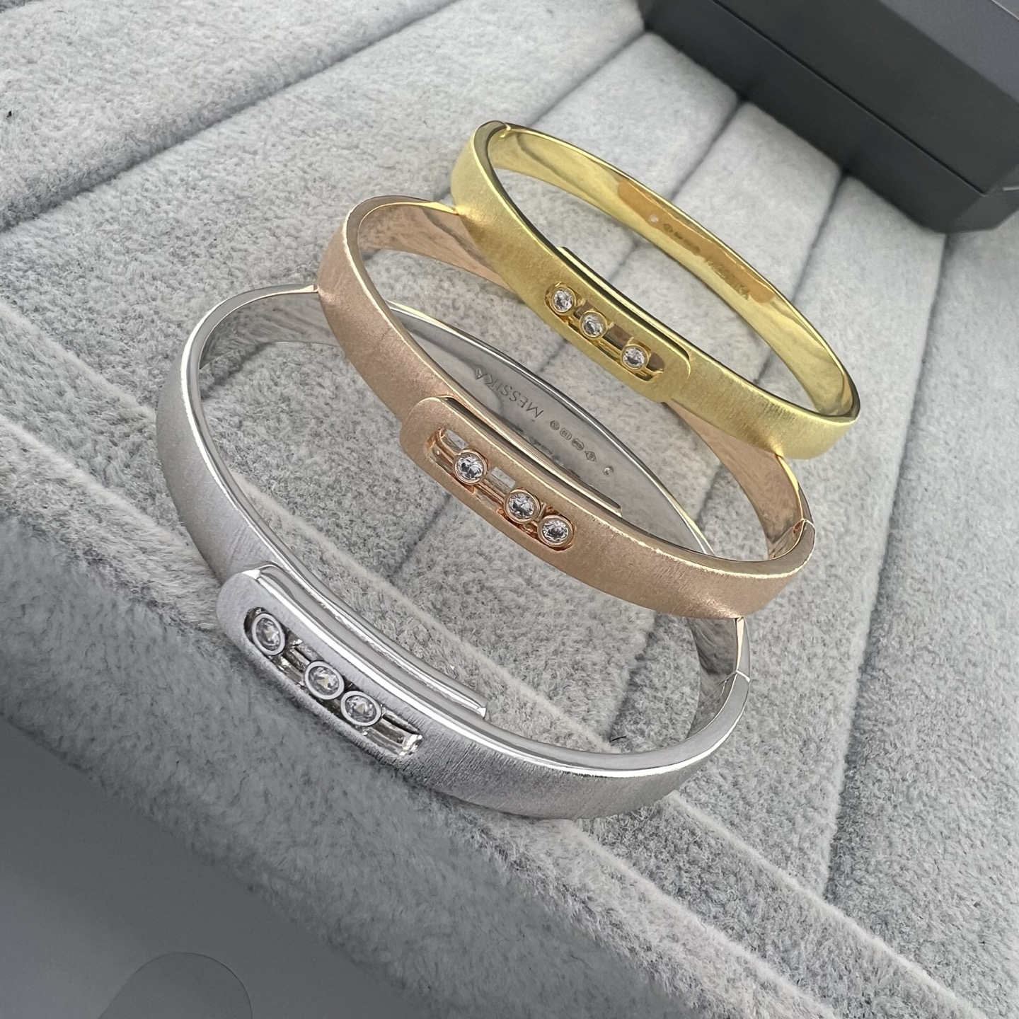 这款首饰是AAAAA 1:1 质量 (非常棒). 使用了和原版一模一样的材料. 商标部分也保持了和梅西卡/Messika一样. 图片拍摄是实物首饰拍摄, 您所收到的实物保证和我们图片一模一样.
