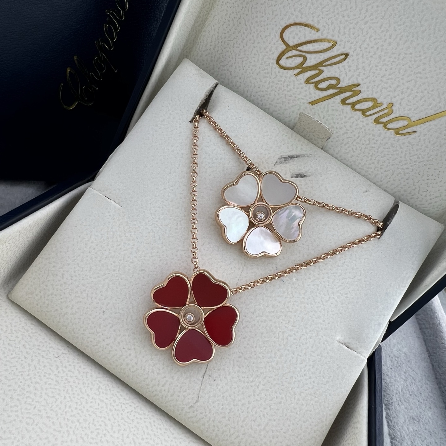 这款首饰是AAAAA 1:1 质量 (非常棒). 使用了和原版一模一样的材料. 商标部分也保持了和萧邦/Chopard一样. 图片拍摄是实物首饰拍摄, 您所收到的实物保证和我们图片一模一样.