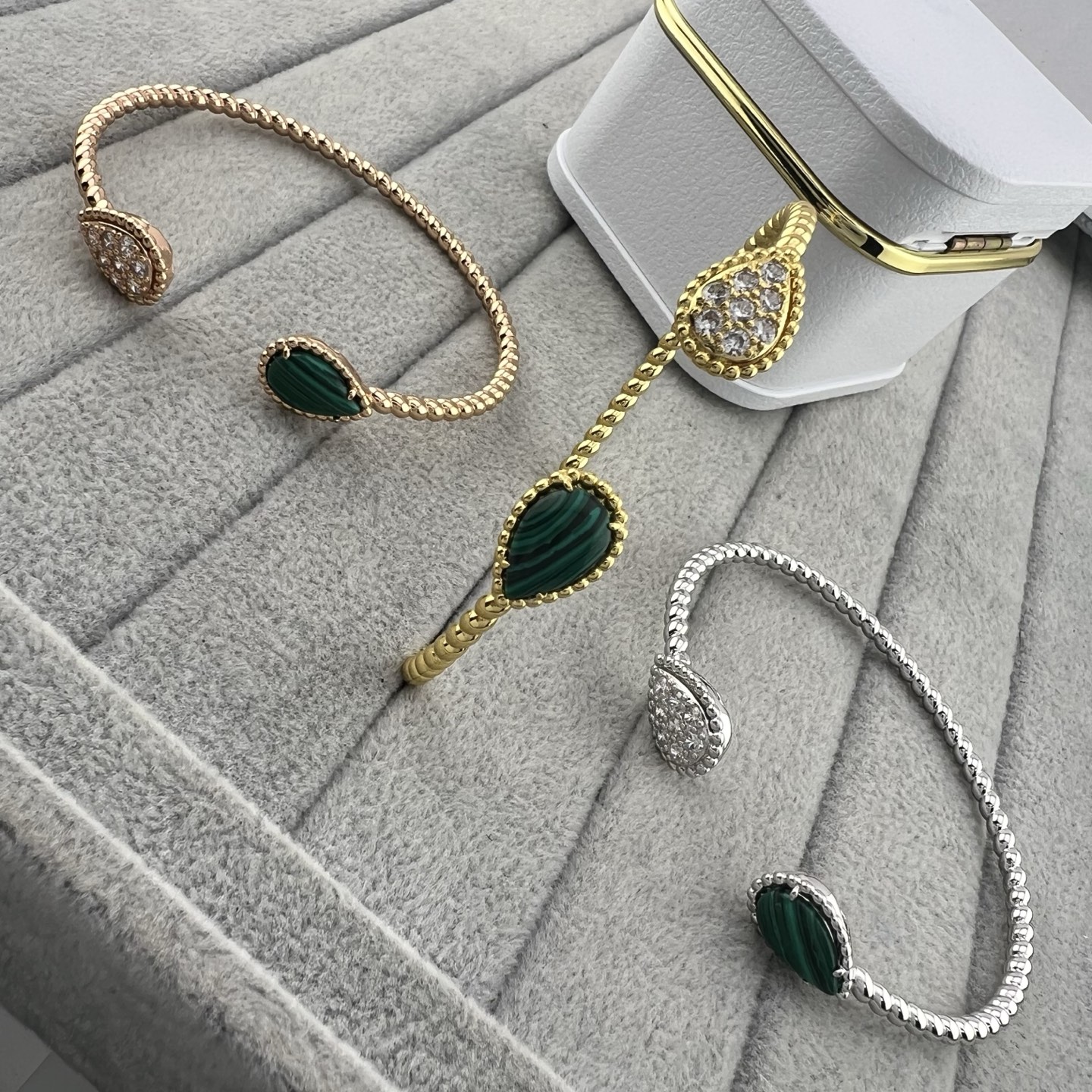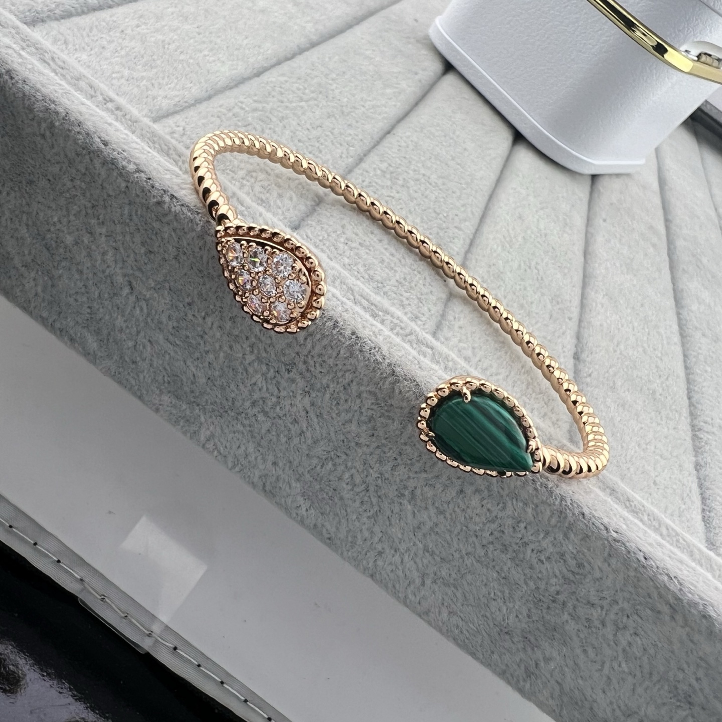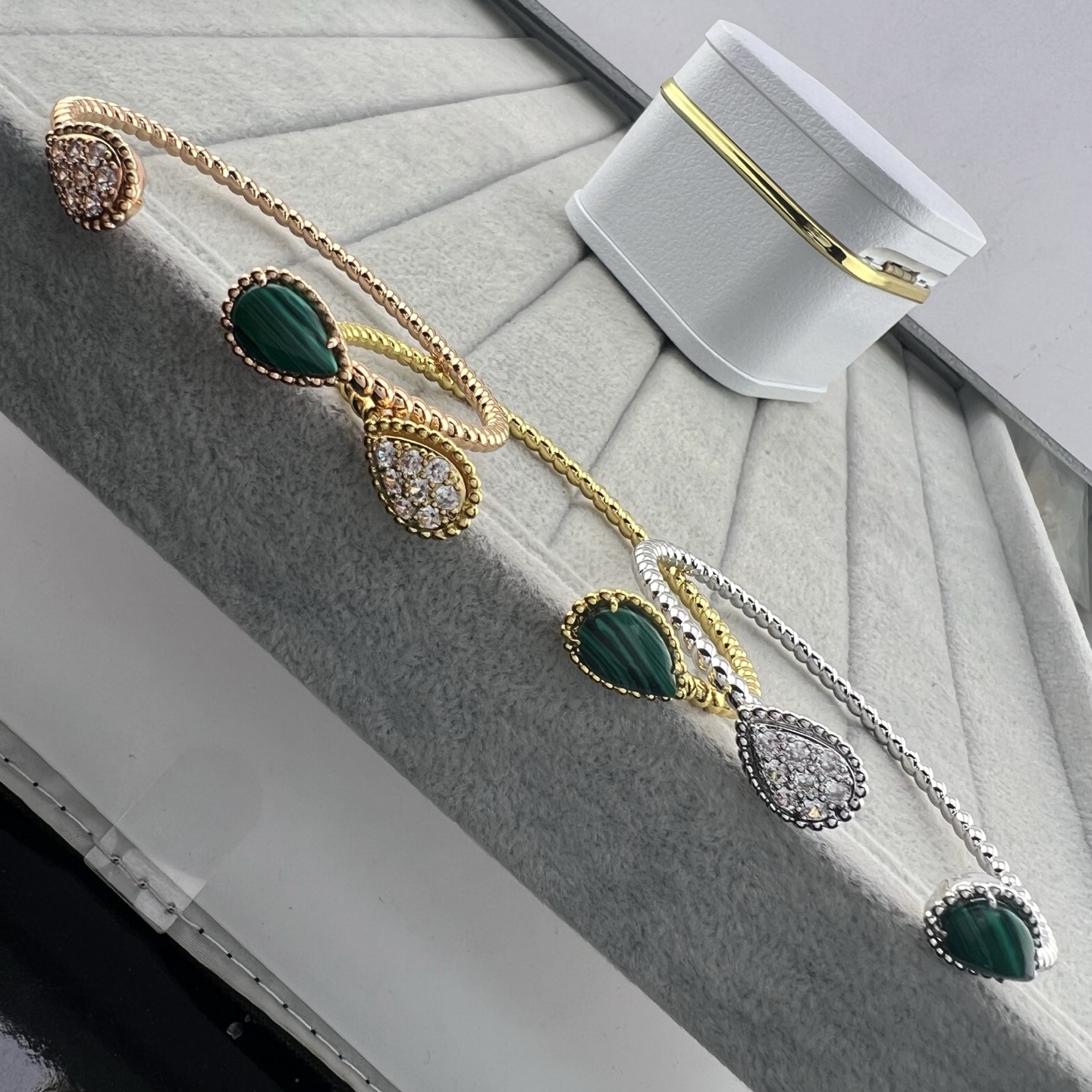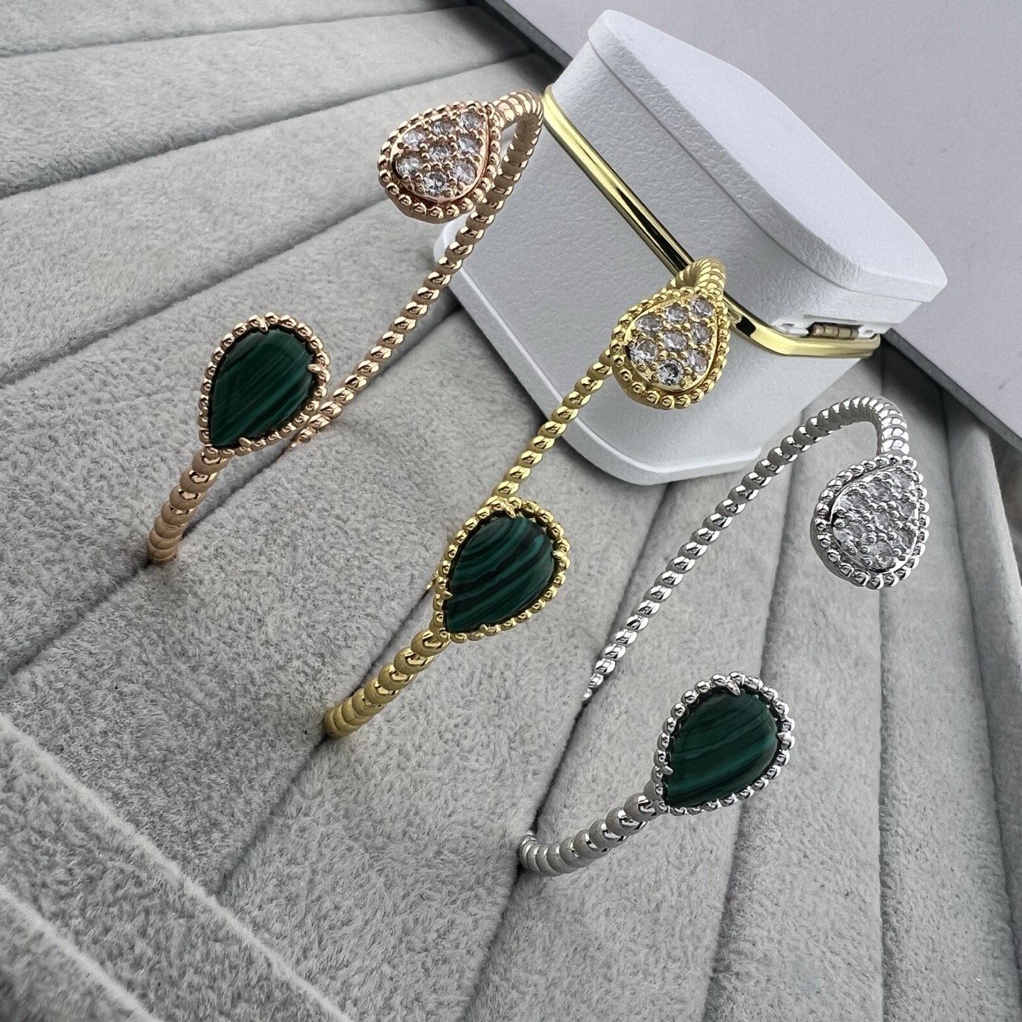 这款首饰是AAAAA 1:1 质量 (非常棒). 使用了和原版一模一样的材料. 商标部分也保持了和Boucheron一样. 图片拍摄是实物首饰拍摄, 您所收到的实物保证和我们图片一模一样.