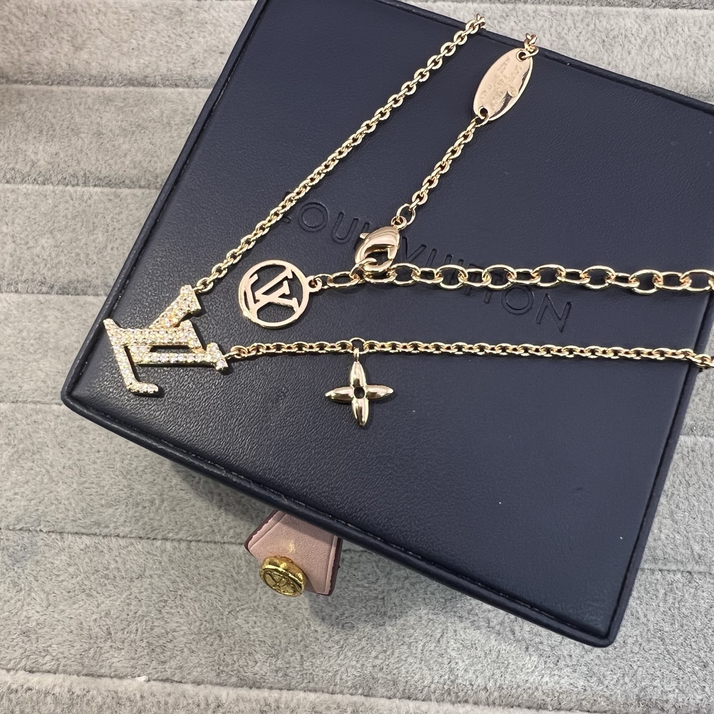 这款首饰是AAAAA 1:1 质量 (非常棒). 使用了和原版一模一样的材料. 商标部分也保持了和路易威登/Louis Vuitton一样. 图片拍摄是实物首饰拍摄, 您所收到的实物保证和我们图片一模一样.