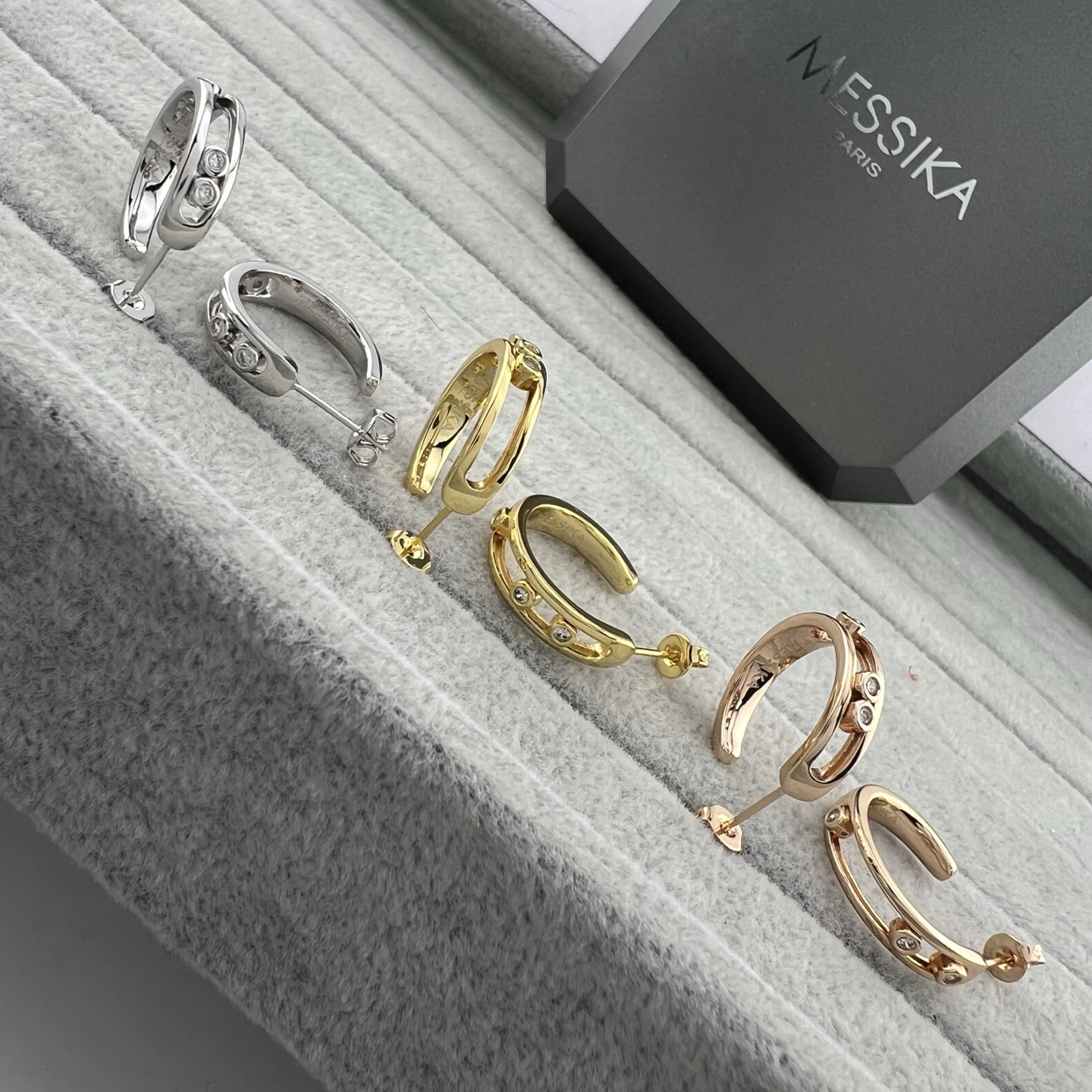 这款首饰是AAAAA 1:1 质量 (非常棒). 使用了和原版一模一样的材料. 商标部分也保持了和梅西卡/Messika一样. 图片拍摄是实物首饰拍摄, 您所收到的实物保证和我们图片一模一样.