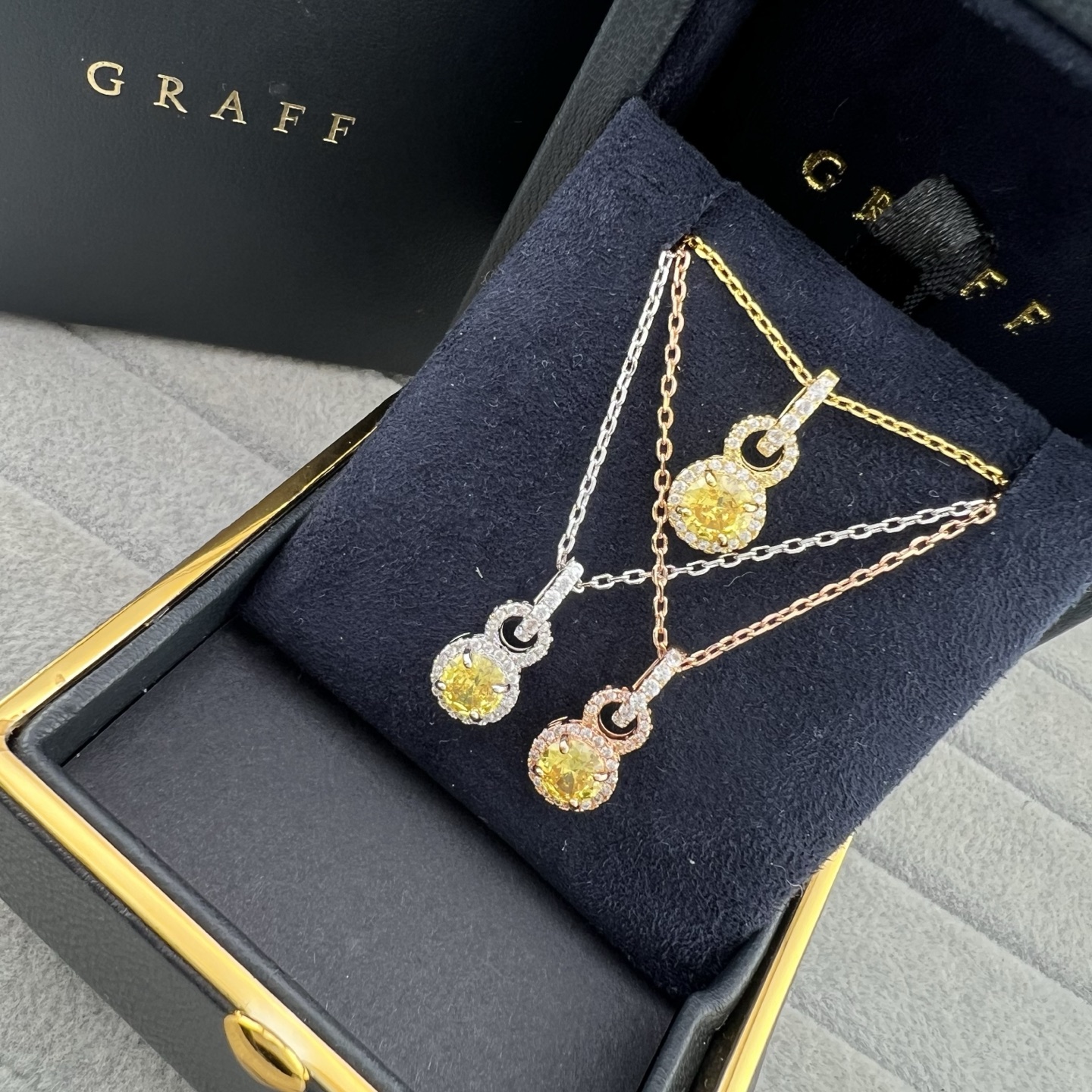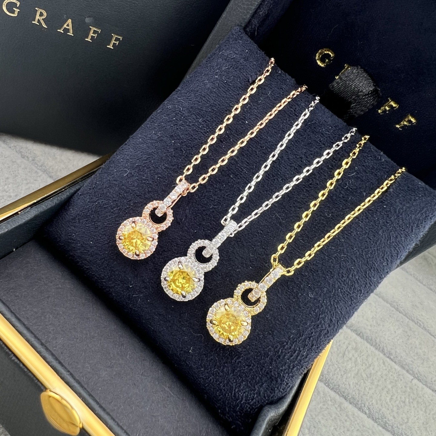 这款首饰是AAAAA 1:1 质量 (非常棒). 使用了和原版一模一样的材料. 商标部分也保持了和GRAFF一样. 图片拍摄是实物首饰拍摄, 您所收到的实物保证和我们图片一模一样.