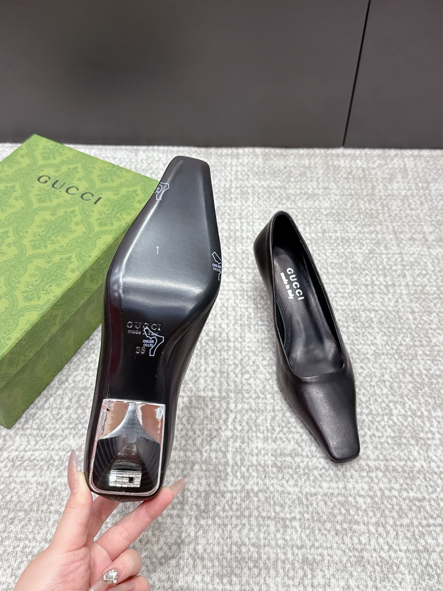 这款鞋子是AAAAA 1:1 质量 (非常棒). 使用了和原版一模一样的材料. 商标部分也保持了和古奇/Gucci一样. 图片拍摄是实物鞋子拍摄, 您所收到的实物保证和我们图片一模一样.