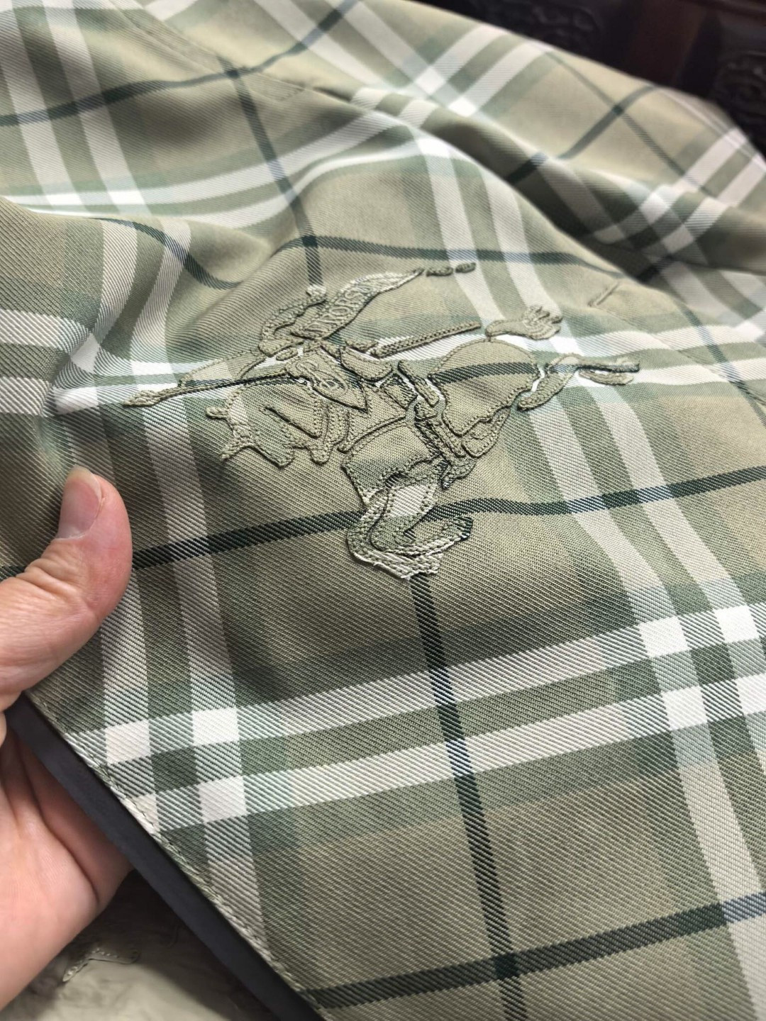 这款衣服是AAAAA 1:1 质量 (非常棒). 使用了和原版一模一样的材料. 商标部分也保持了和巴宝莉/Burberry一样. 图片拍摄是实物衣服拍摄, 您所收到的实物保证和我们图片一模一样.