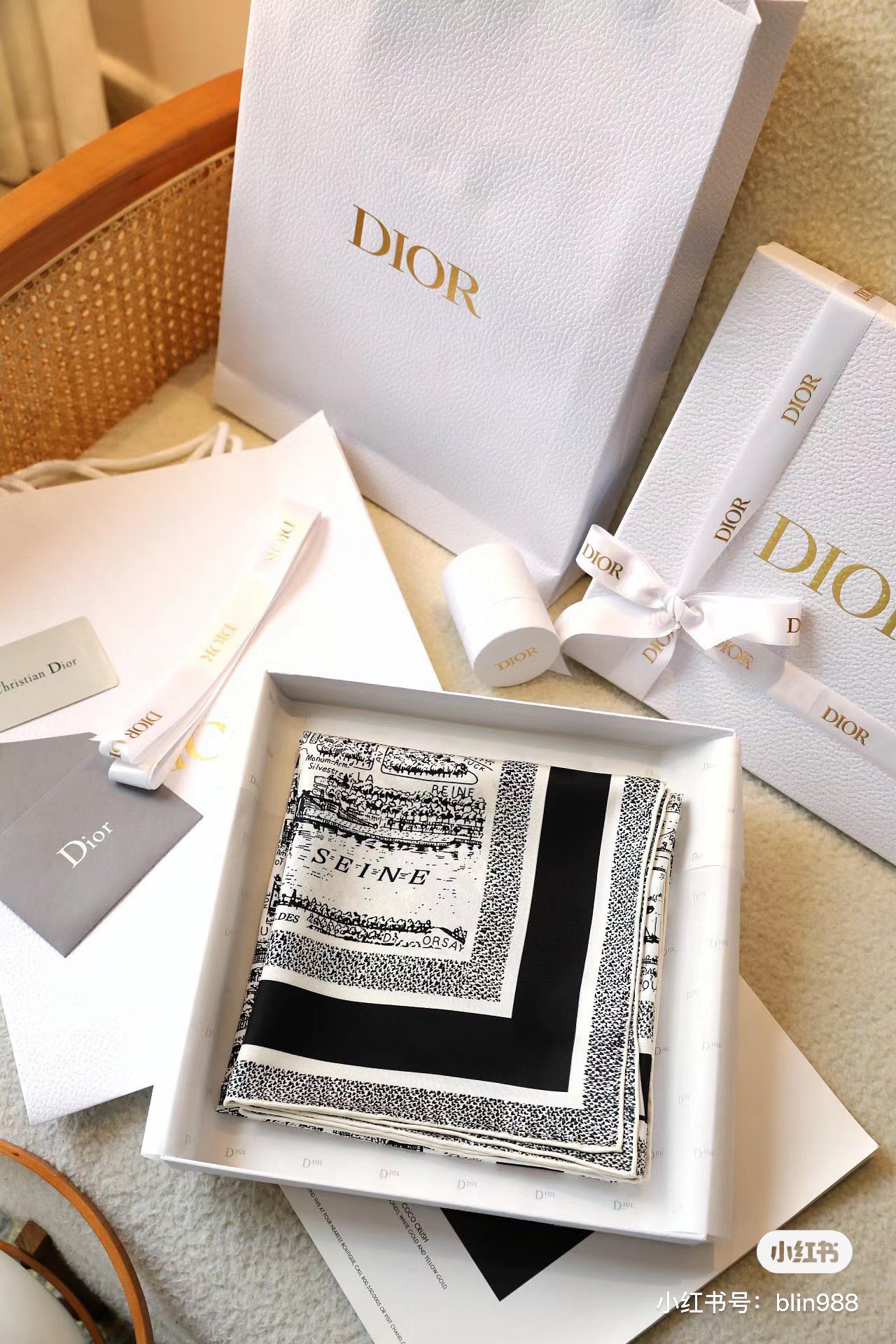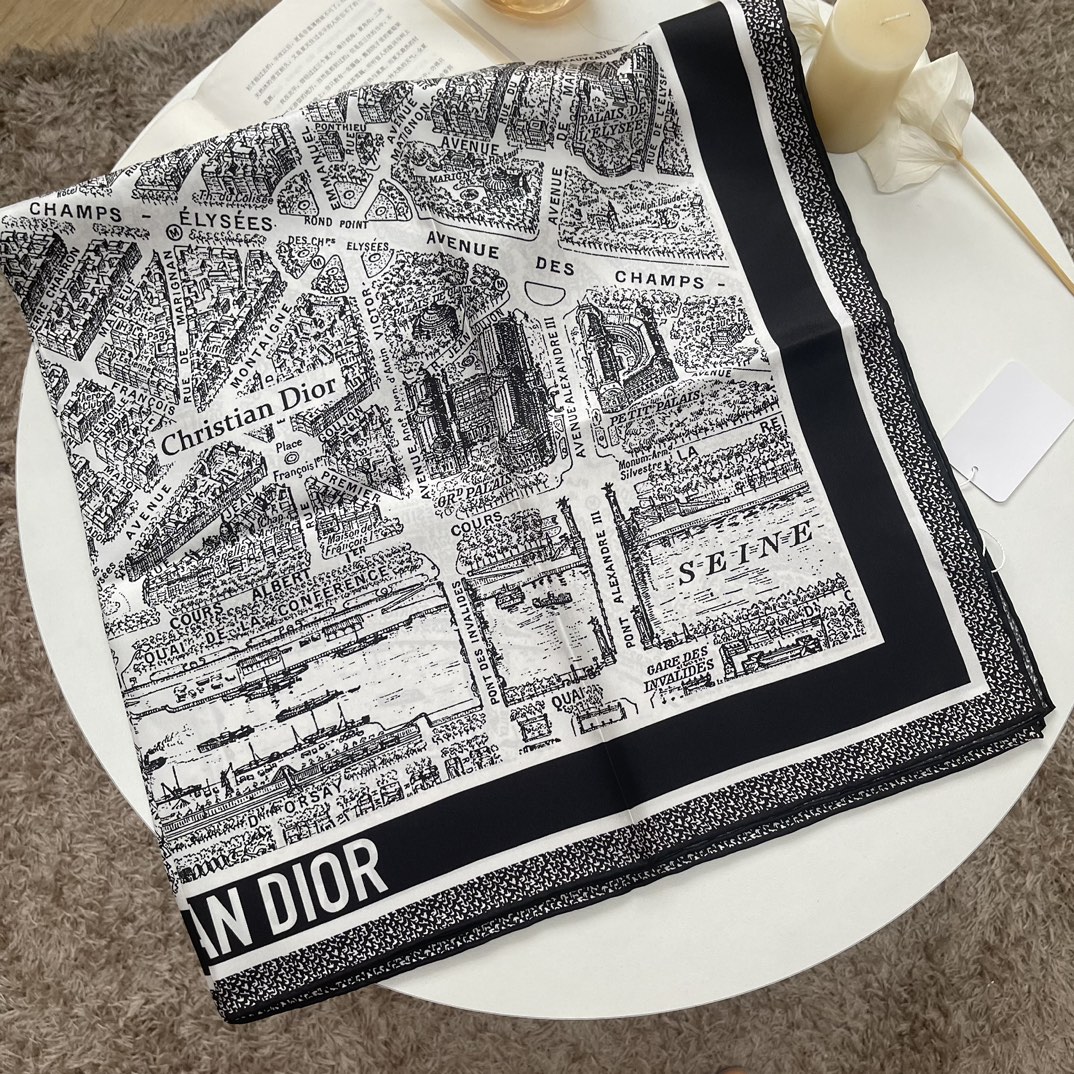 这款围巾是AAAAA 1:1 质量 (非常棒). 使用了和原版一模一样的材料. 商标部分也保持了和迪奥/Dior一样. 图片拍摄是实物围巾拍摄, 您所收到的实物保证和我们图片一模一样.