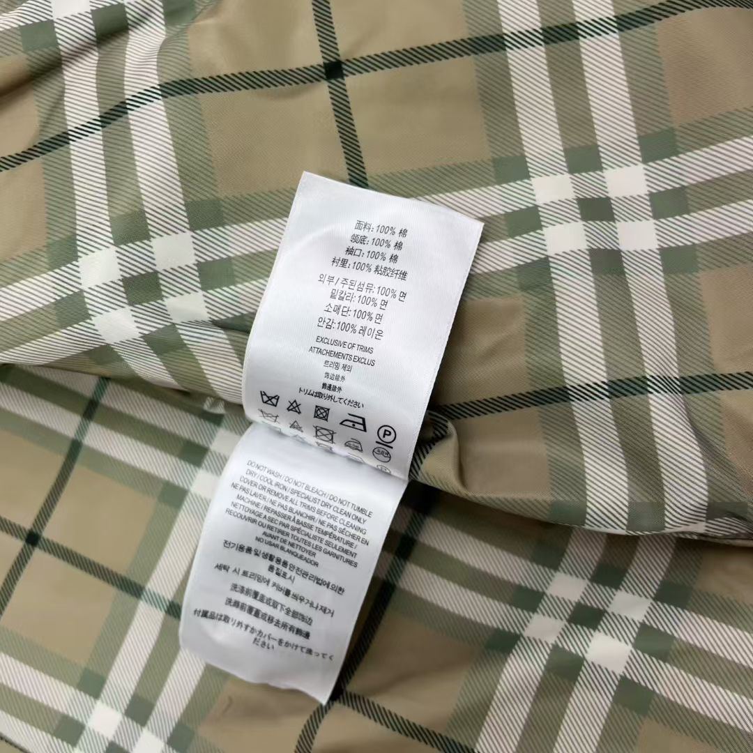 这款衣服是AAAAA 1:1 质量 (非常棒). 使用了和原版一模一样的材料. 商标部分也保持了和巴宝莉/Burberry一样. 图片拍摄是实物衣服拍摄, 您所收到的实物保证和我们图片一模一样.
