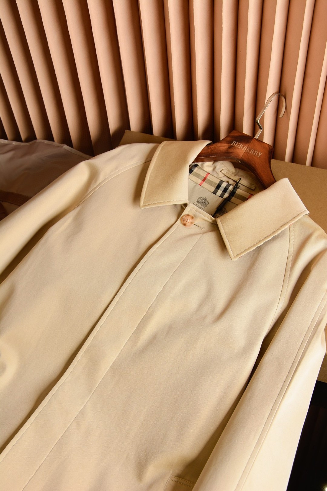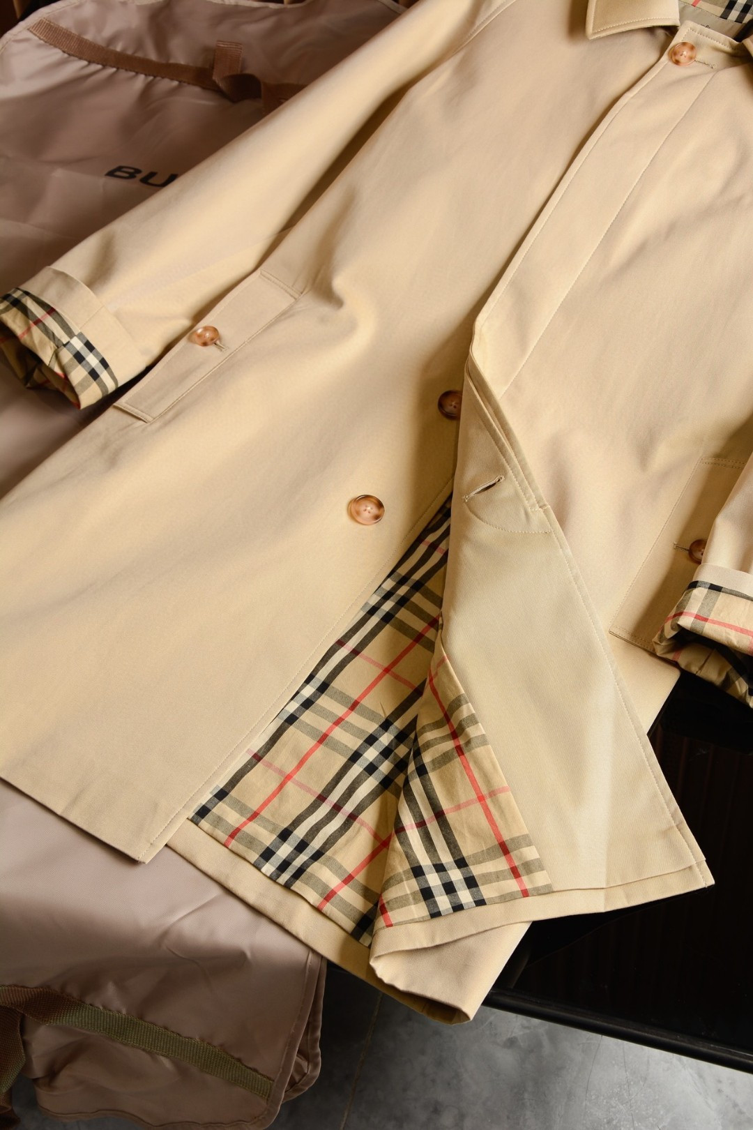 这款衣服是AAAAA 1:1 质量 (非常棒). 使用了和原版一模一样的材料. 商标部分也保持了和巴宝莉/Burberry一样. 图片拍摄是实物衣服拍摄, 您所收到的实物保证和我们图片一模一样.