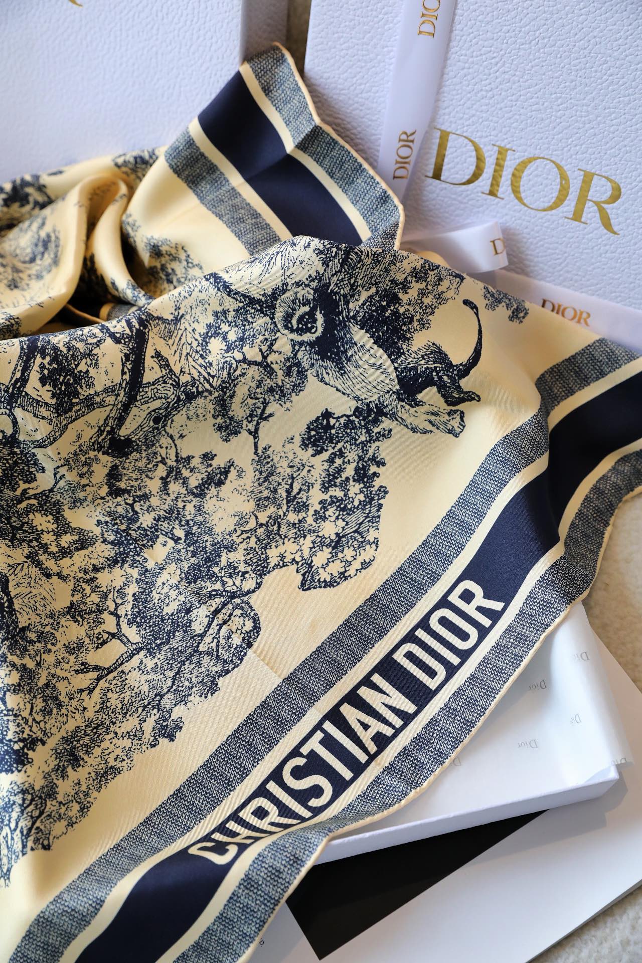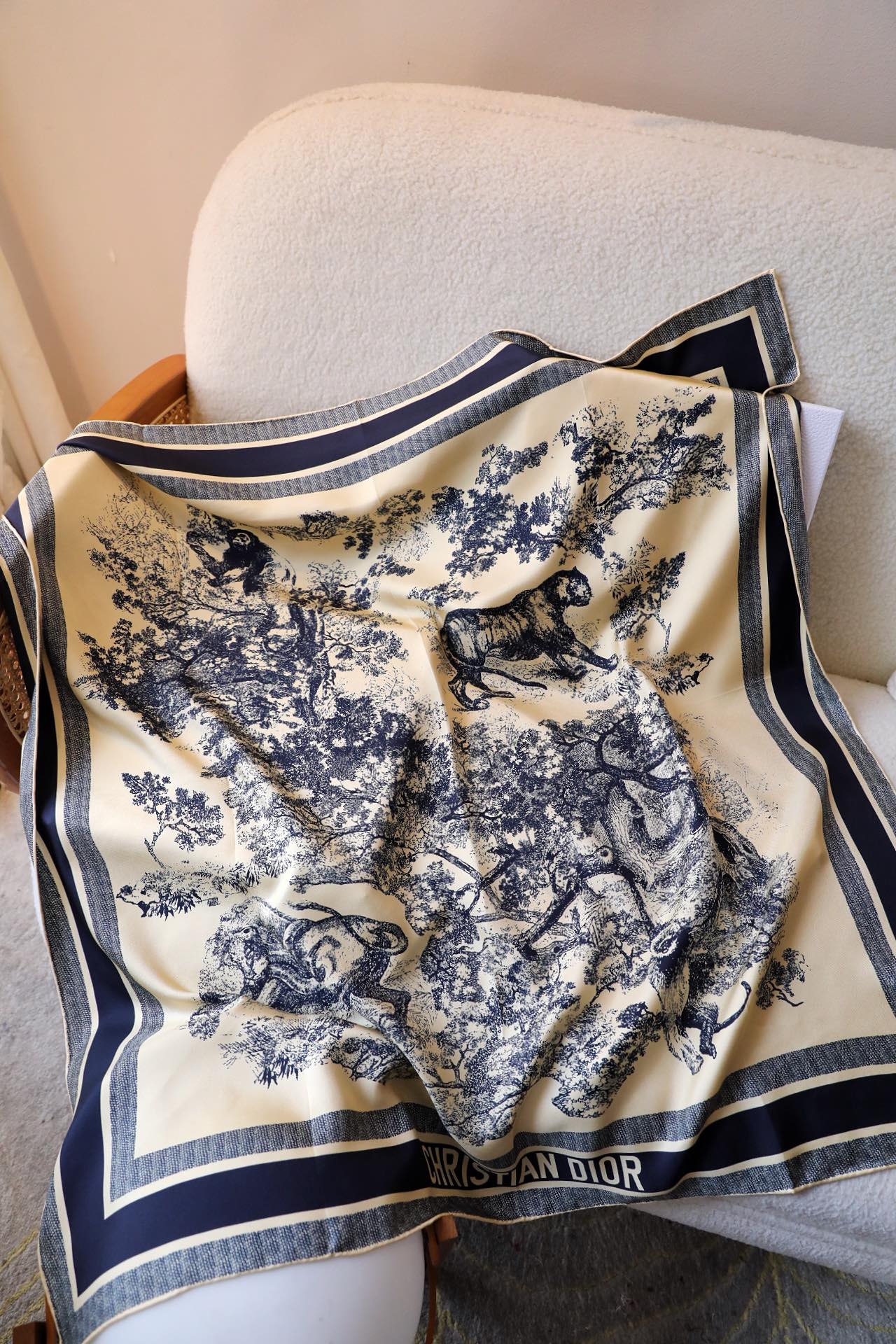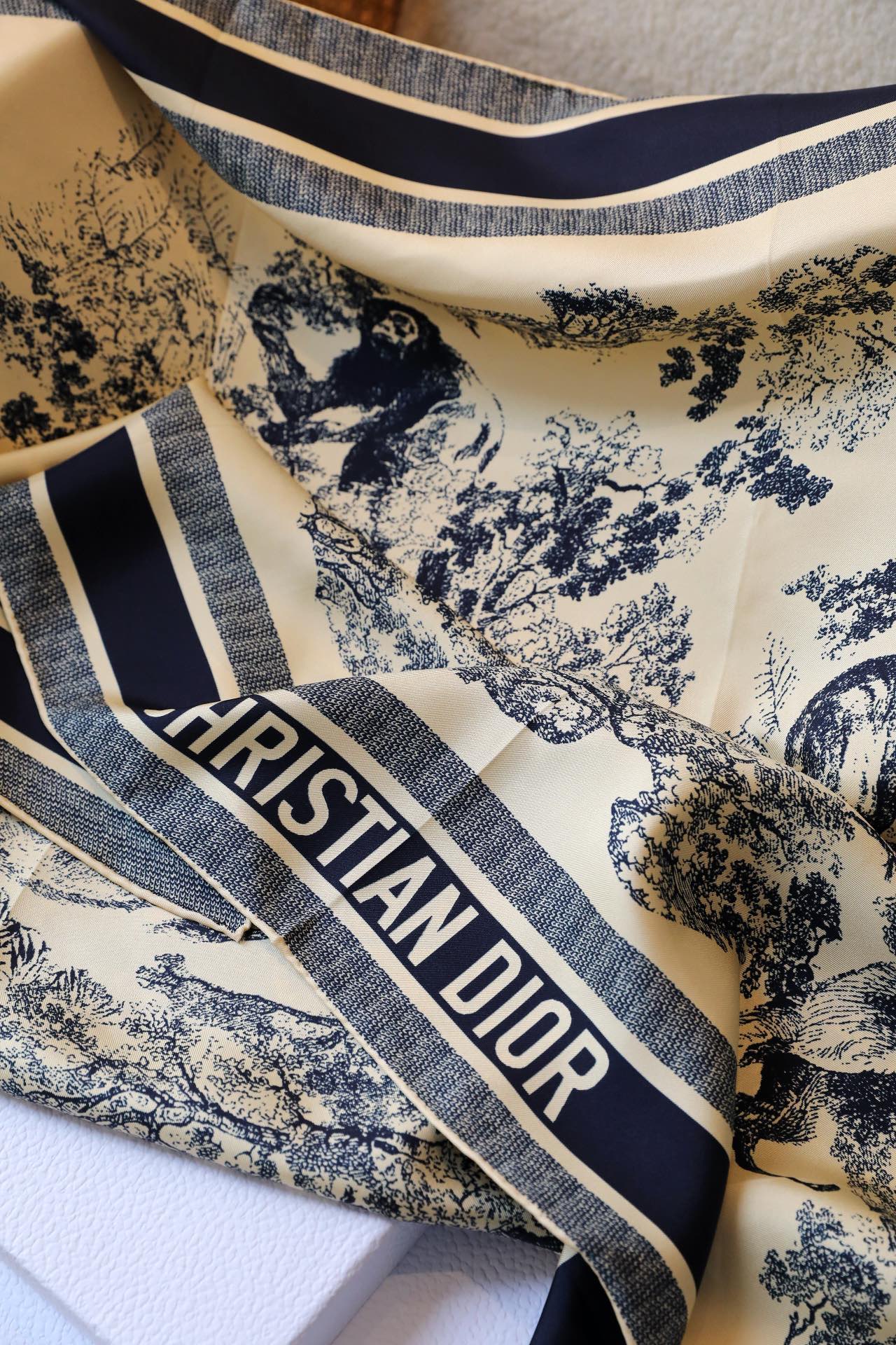 这款围巾是AAAAA 1:1 质量 (非常棒). 使用了和原版一模一样的材料. 商标部分也保持了和迪奥/Dior一样. 图片拍摄是实物围巾拍摄, 您所收到的实物保证和我们图片一模一样.