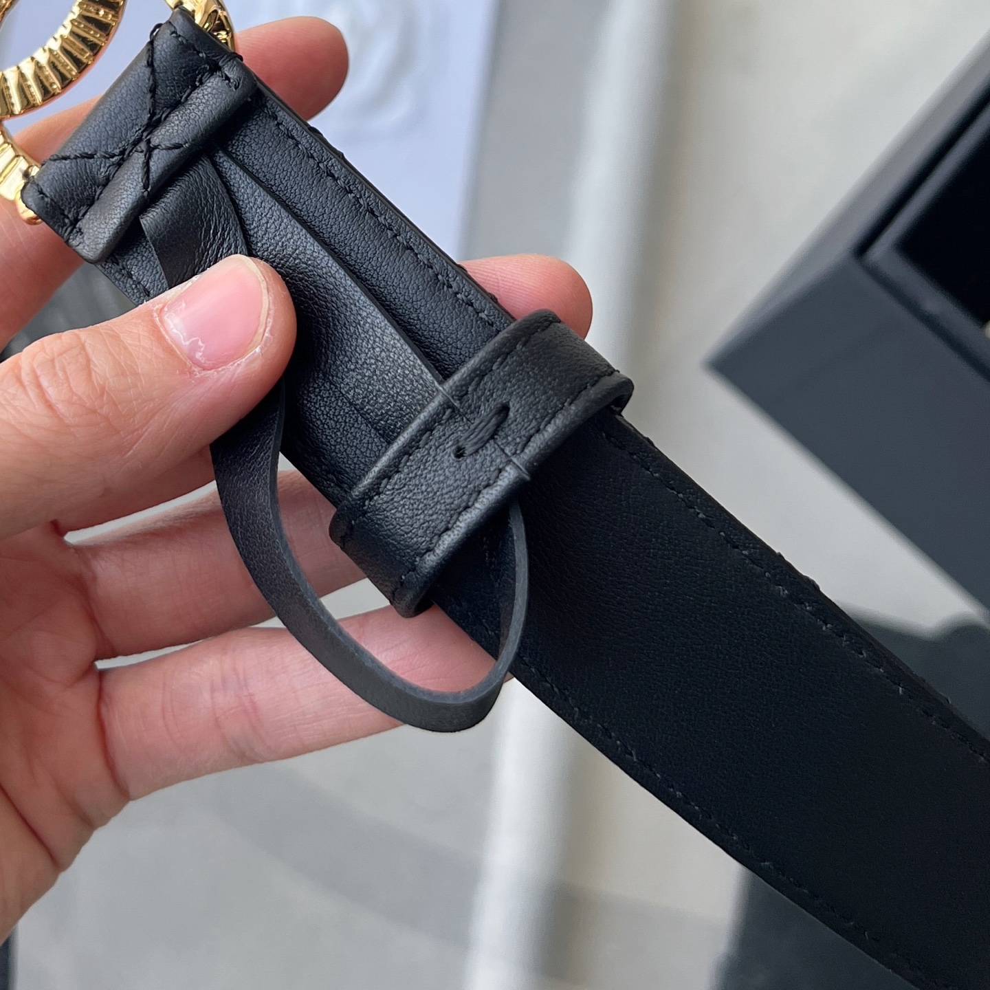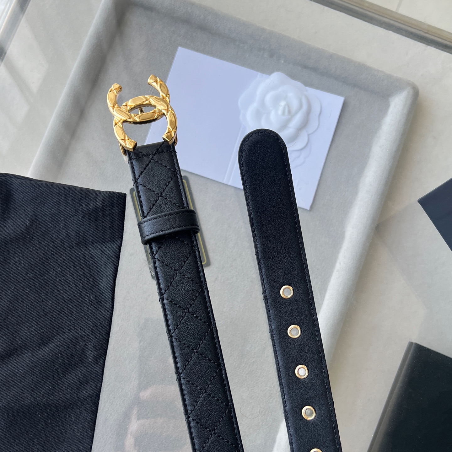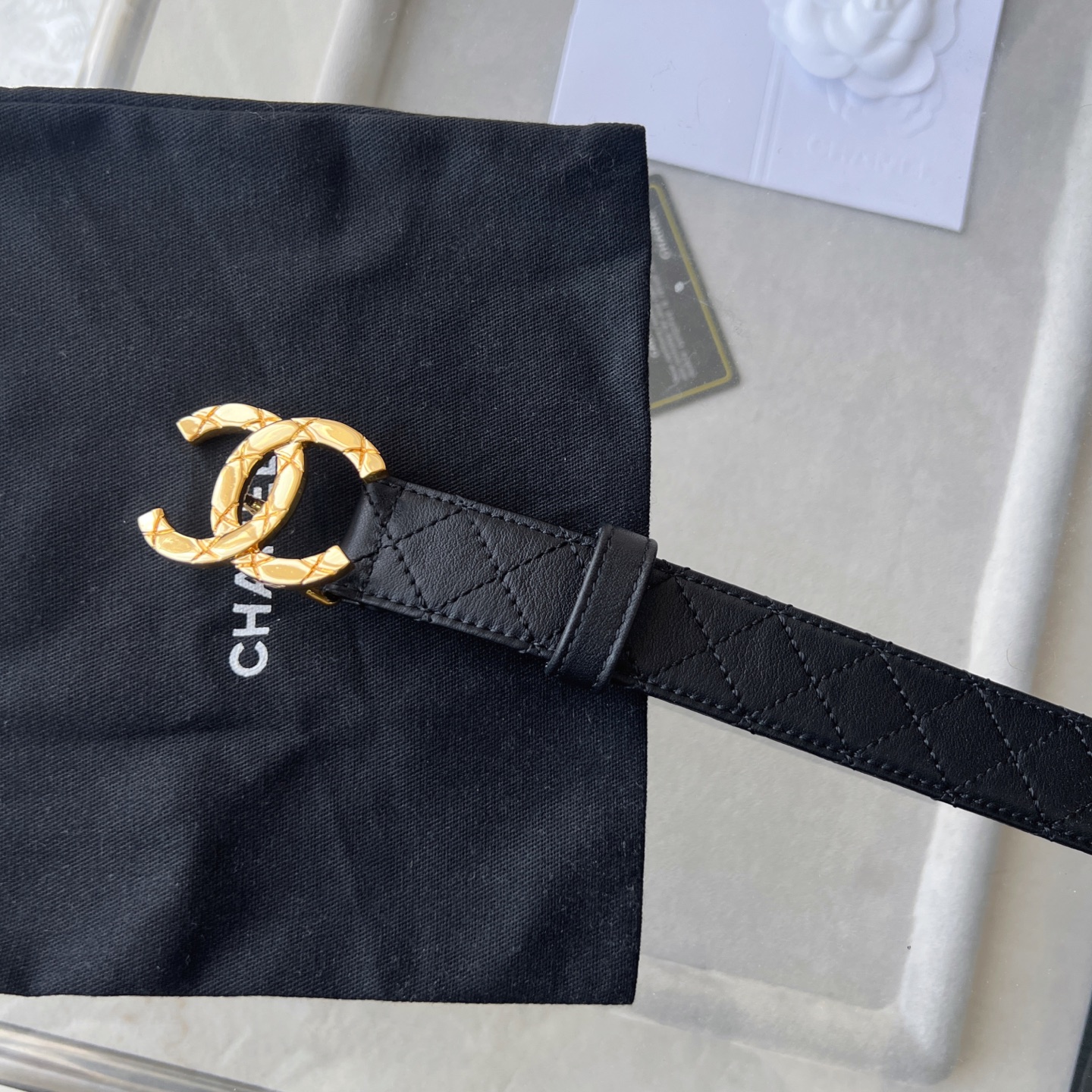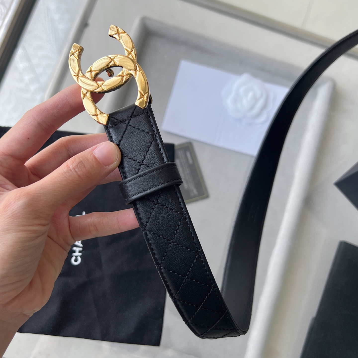 这款皮带是AAAAA 1:1 质量 (非常棒). 使用了和原版一模一样的材料. 商标部分也保持了和香奈儿/Chanel一样. 图片拍摄是实物皮带拍摄, 您所收到的实物保证和我们图片一模一样.