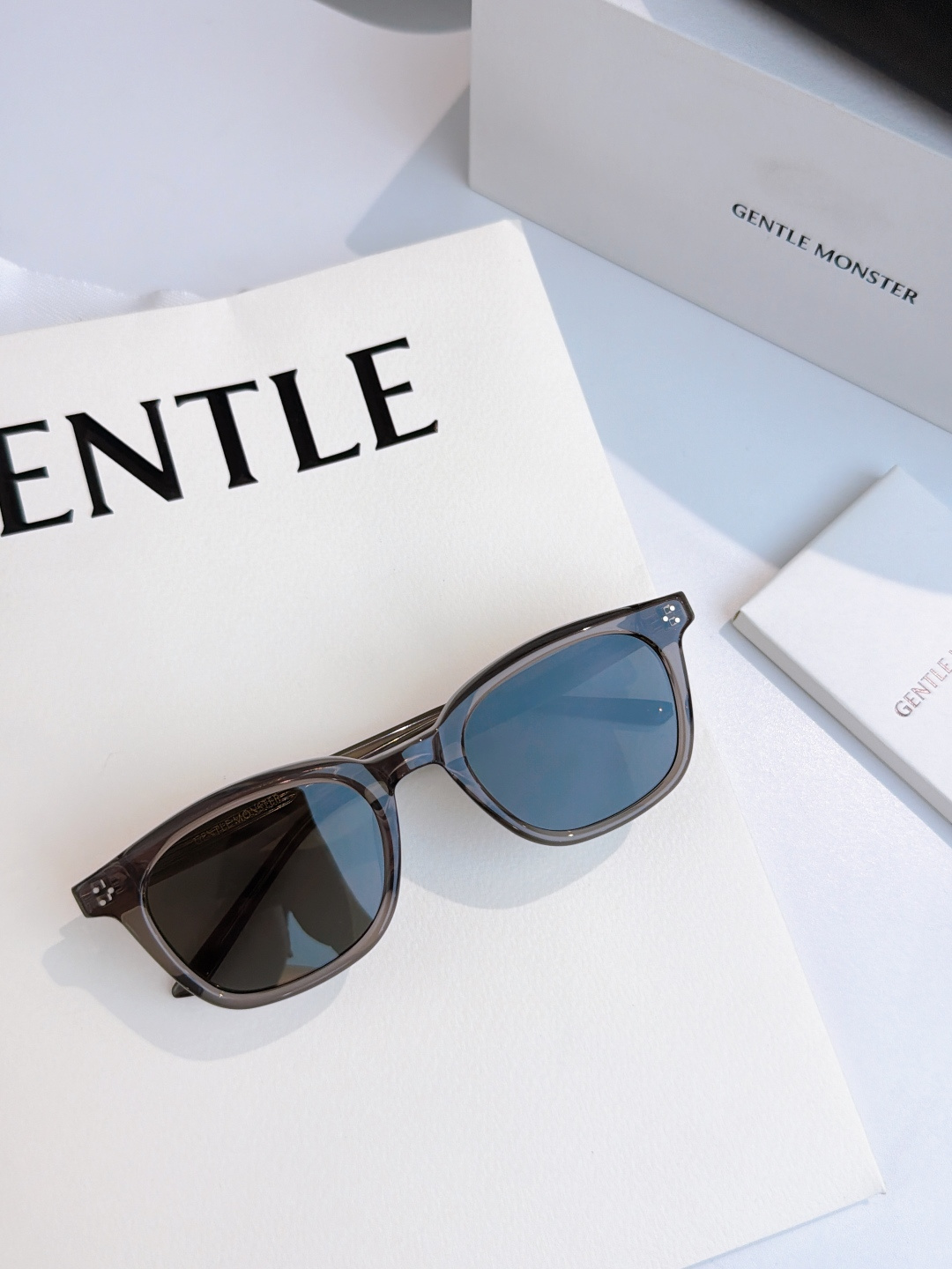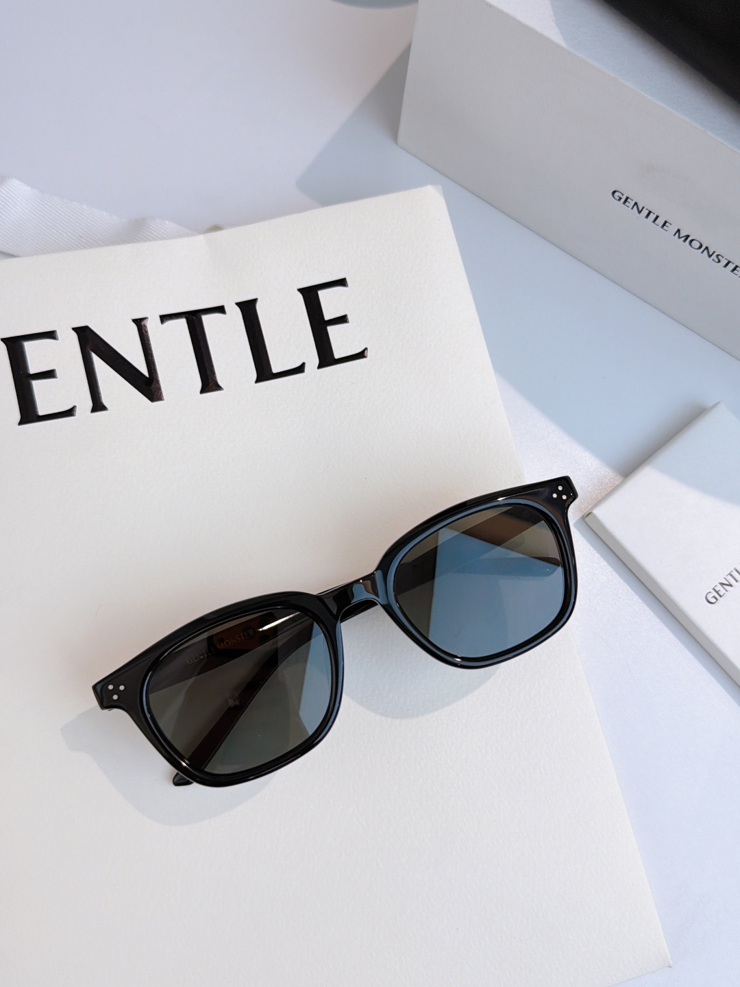 这款太阳眼镜是AAAAA 1:1 质量 (非常棒). 使用了和原版一模一样的材料. 商标部分也保持了和Gentle Monster一样. 图片拍摄是实物太阳眼镜拍摄, 您所收到的实物保证和我们图片一模一样.