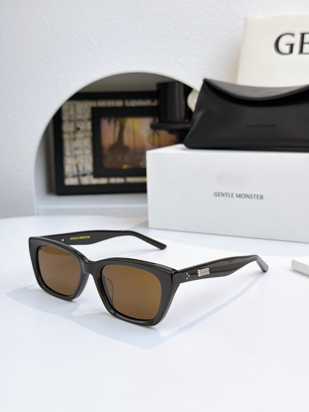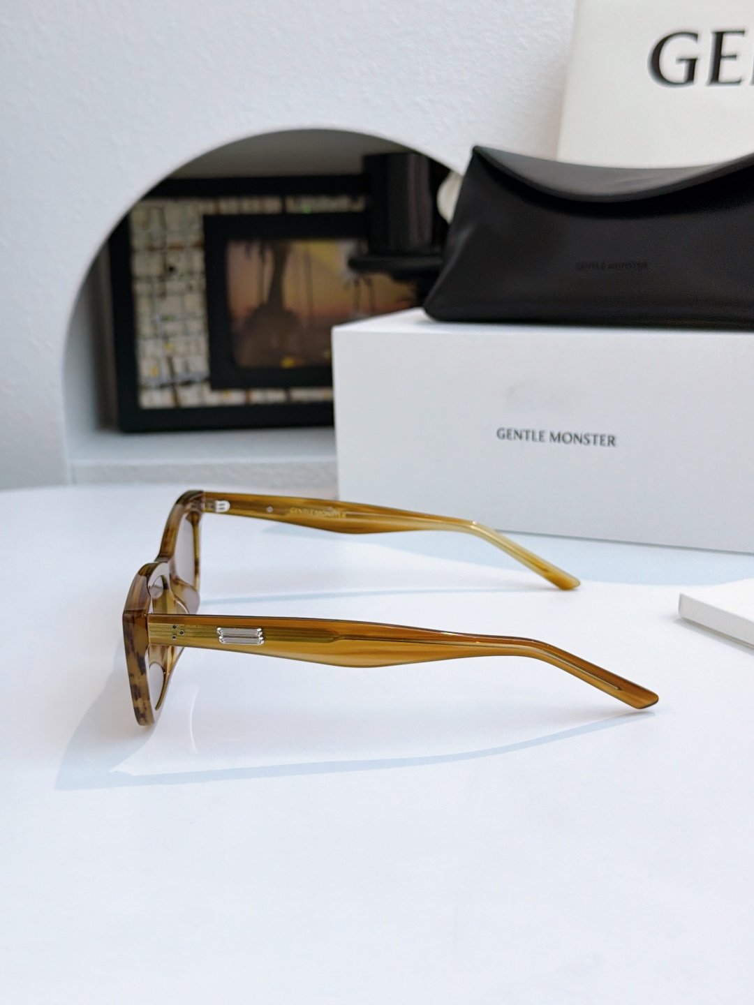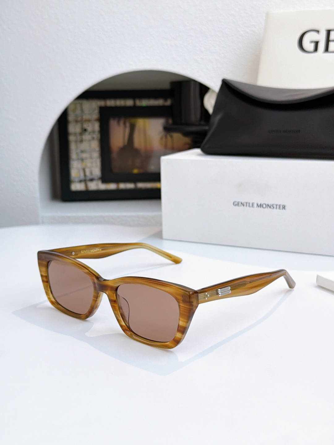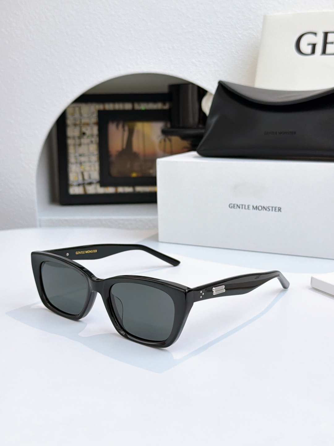 这款太阳眼镜是AAAAA 1:1 质量 (非常棒). 使用了和原版一模一样的材料. 商标部分也保持了和Gentle Monster一样. 图片拍摄是实物太阳眼镜拍摄, 您所收到的实物保证和我们图片一模一样.