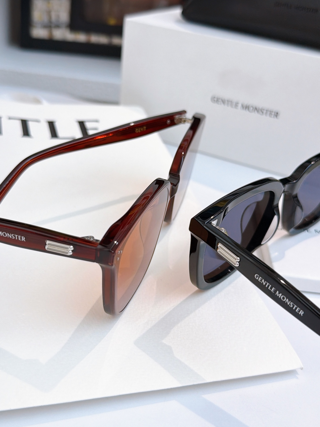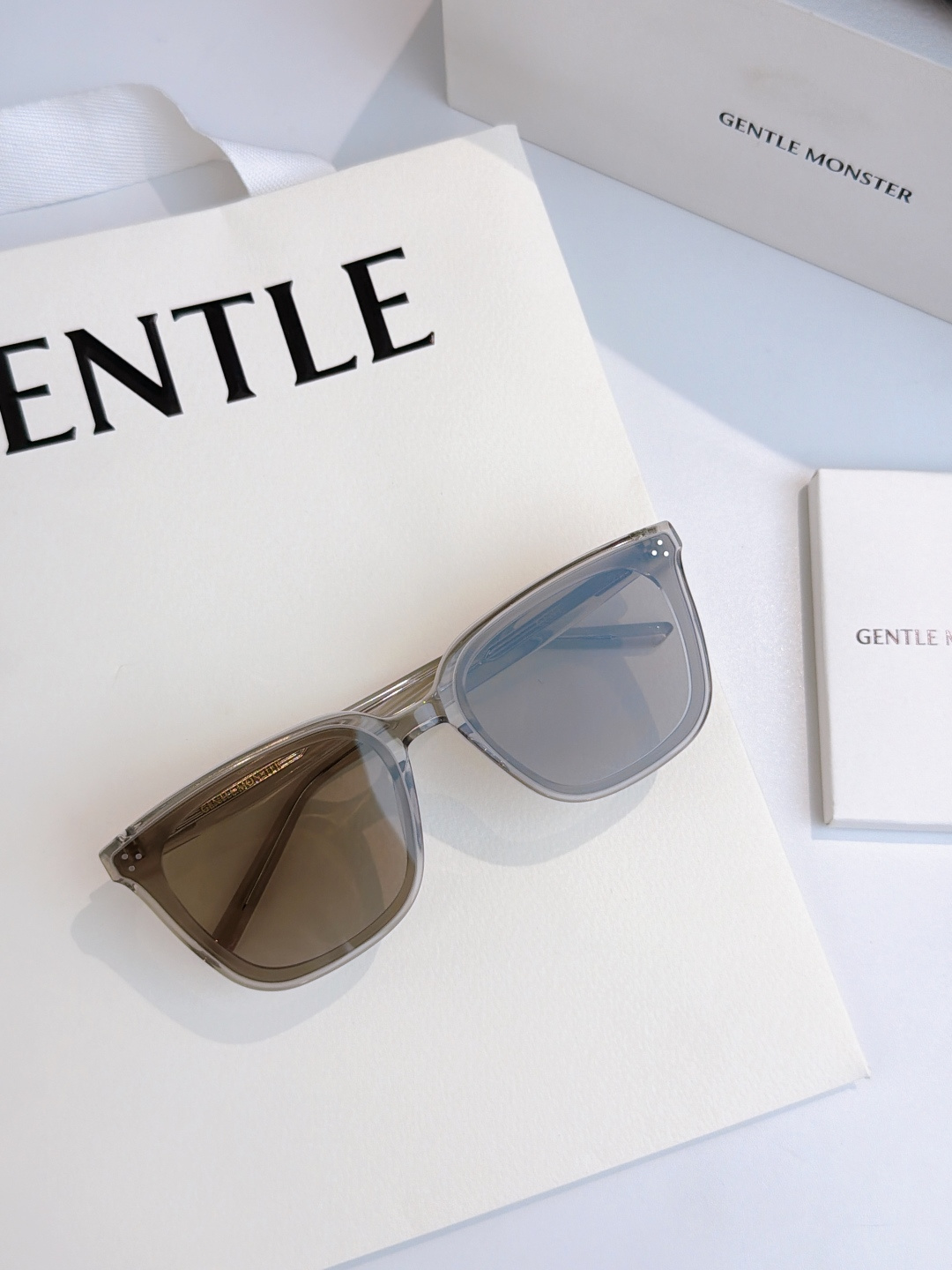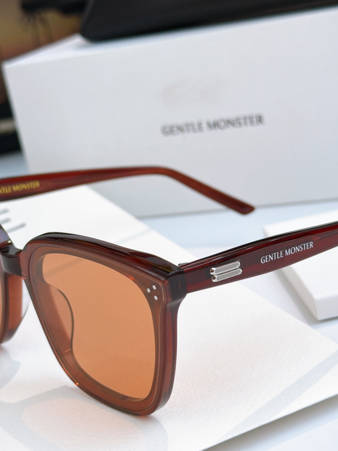 这款太阳眼镜是AAAAA 1:1 质量 (非常棒). 使用了和原版一模一样的材料. 商标部分也保持了和Gentle Monster一样. 图片拍摄是实物太阳眼镜拍摄, 您所收到的实物保证和我们图片一模一样.