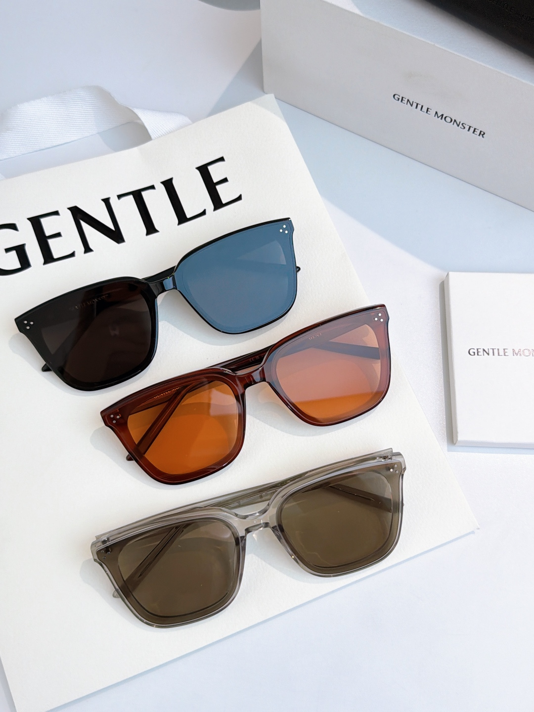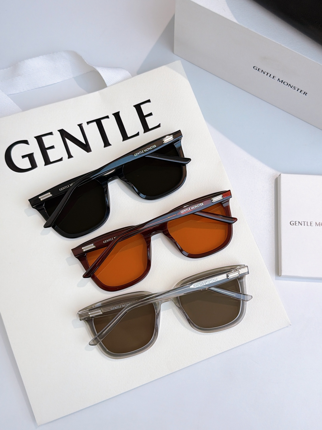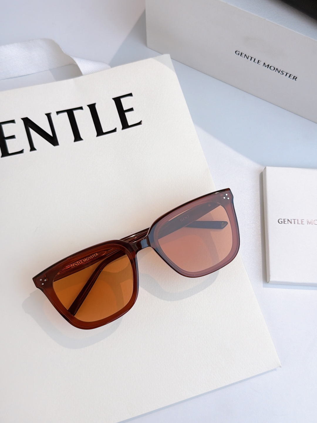 这款太阳眼镜是AAAAA 1:1 质量 (非常棒). 使用了和原版一模一样的材料. 商标部分也保持了和Gentle Monster一样. 图片拍摄是实物太阳眼镜拍摄, 您所收到的实物保证和我们图片一模一样.