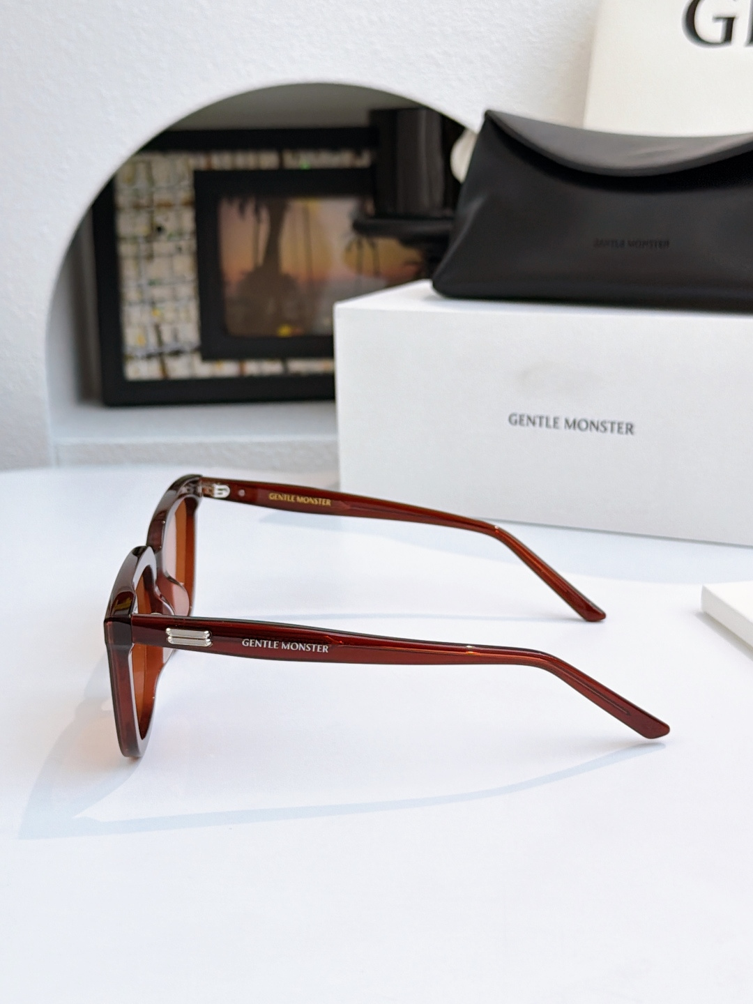 这款太阳眼镜是AAAAA 1:1 质量 (非常棒). 使用了和原版一模一样的材料. 商标部分也保持了和Gentle Monster一样. 图片拍摄是实物太阳眼镜拍摄, 您所收到的实物保证和我们图片一模一样.