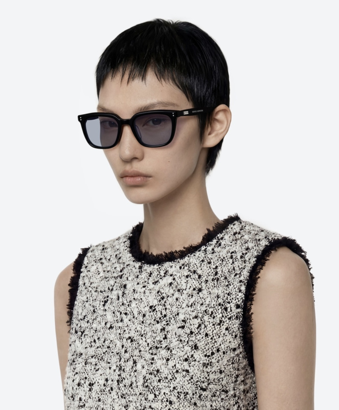这款太阳眼镜是AAAAA 1:1 质量 (非常棒). 使用了和原版一模一样的材料. 商标部分也保持了和Gentle Monster一样. 图片拍摄是实物太阳眼镜拍摄, 您所收到的实物保证和我们图片一模一样.