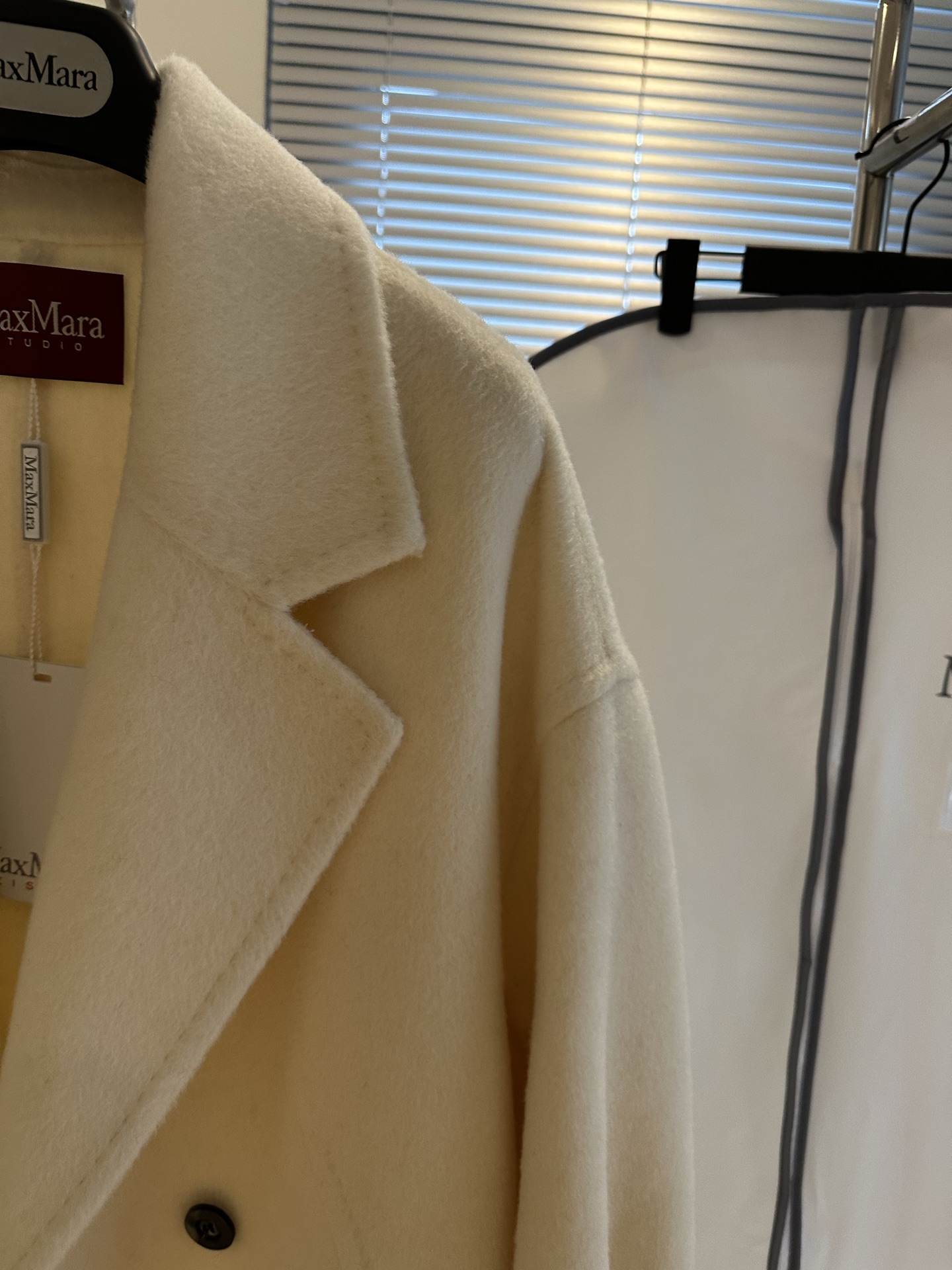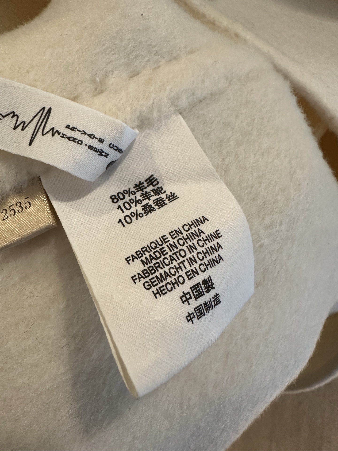 这款衣服是AAAAA 1:1 质量 (非常棒). 使用了和原版一模一样的材料. 商标部分也保持了和Max Mara一样. 图片拍摄是实物衣服拍摄, 您所收到的实物保证和我们图片一模一样.