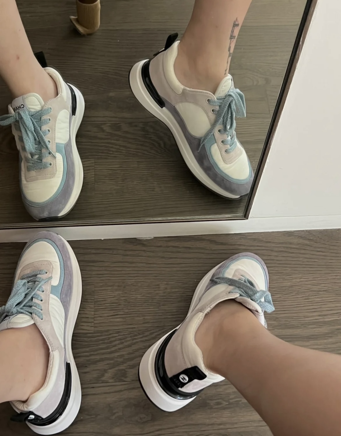 这款鞋子是AAAAA 1:1 质量 (非常棒). 使用了和原版一模一样的材料. 商标部分也保持了和香奈儿/Chanel一样. 图片拍摄是实物鞋子拍摄, 您所收到的实物保证和我们图片一模一样.
