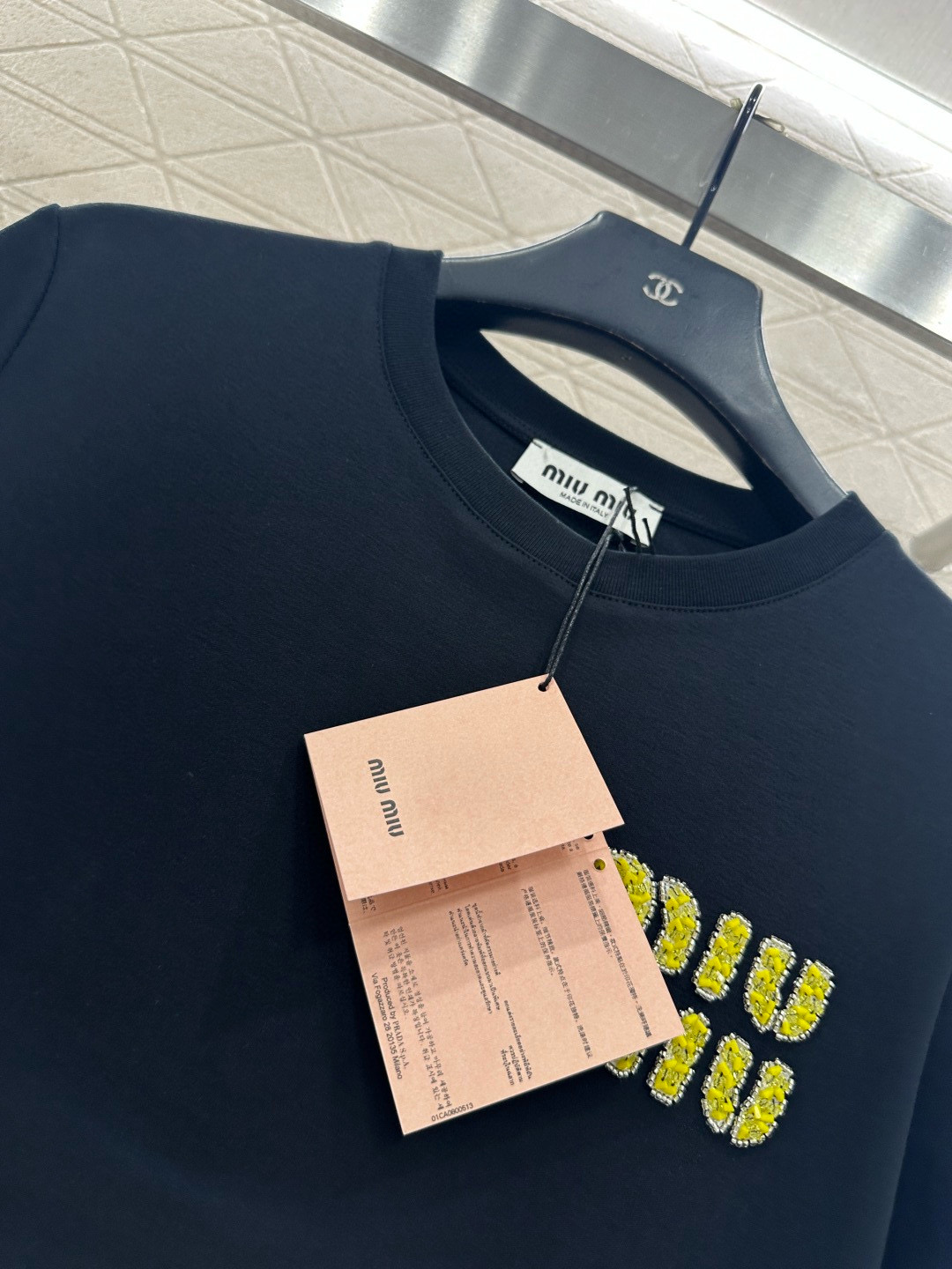 这款衣服是AAAAA 1:1 质量 (非常棒). 使用了和原版一模一样的材料. 商标部分也保持了和缪缪/Miu Miu一样. 图片拍摄是实物衣服拍摄, 您所收到的实物保证和我们图片一模一样.