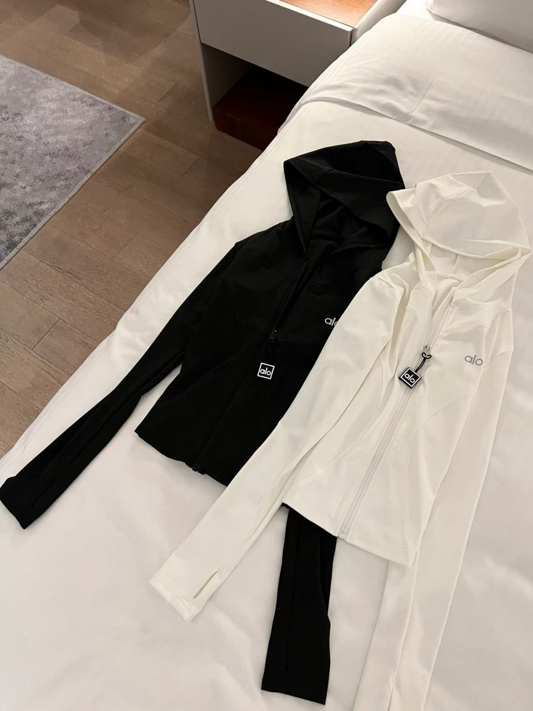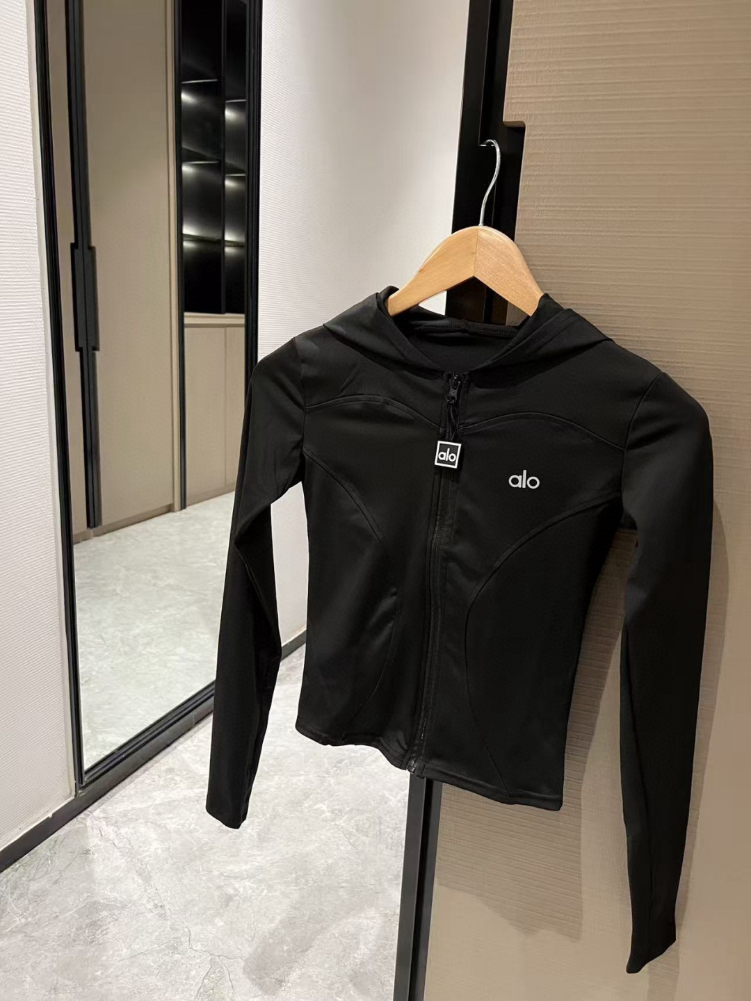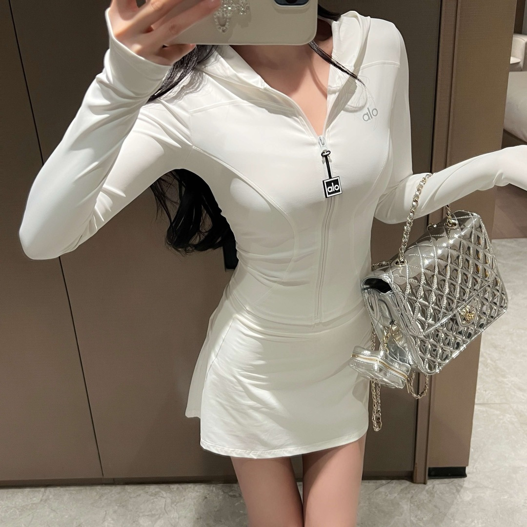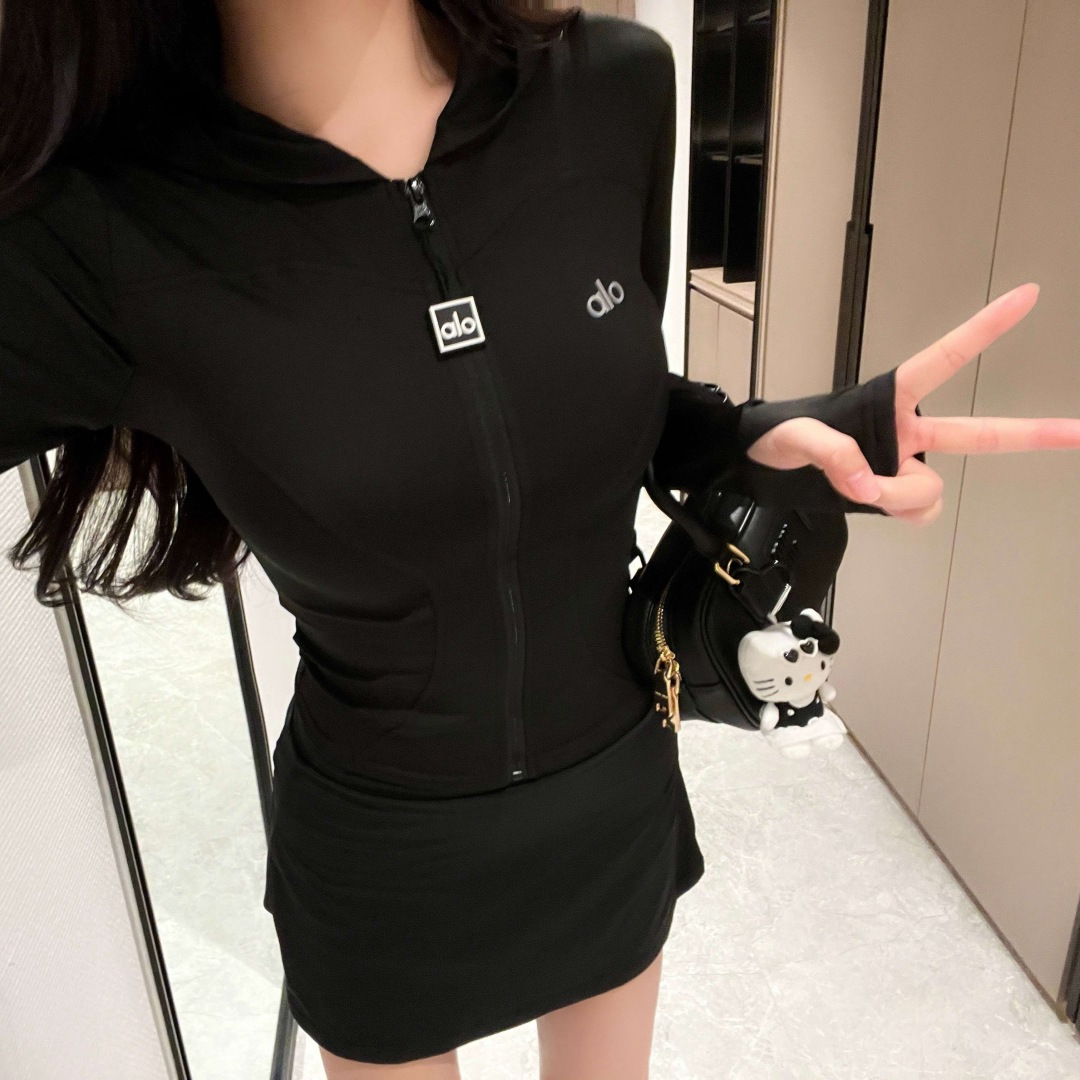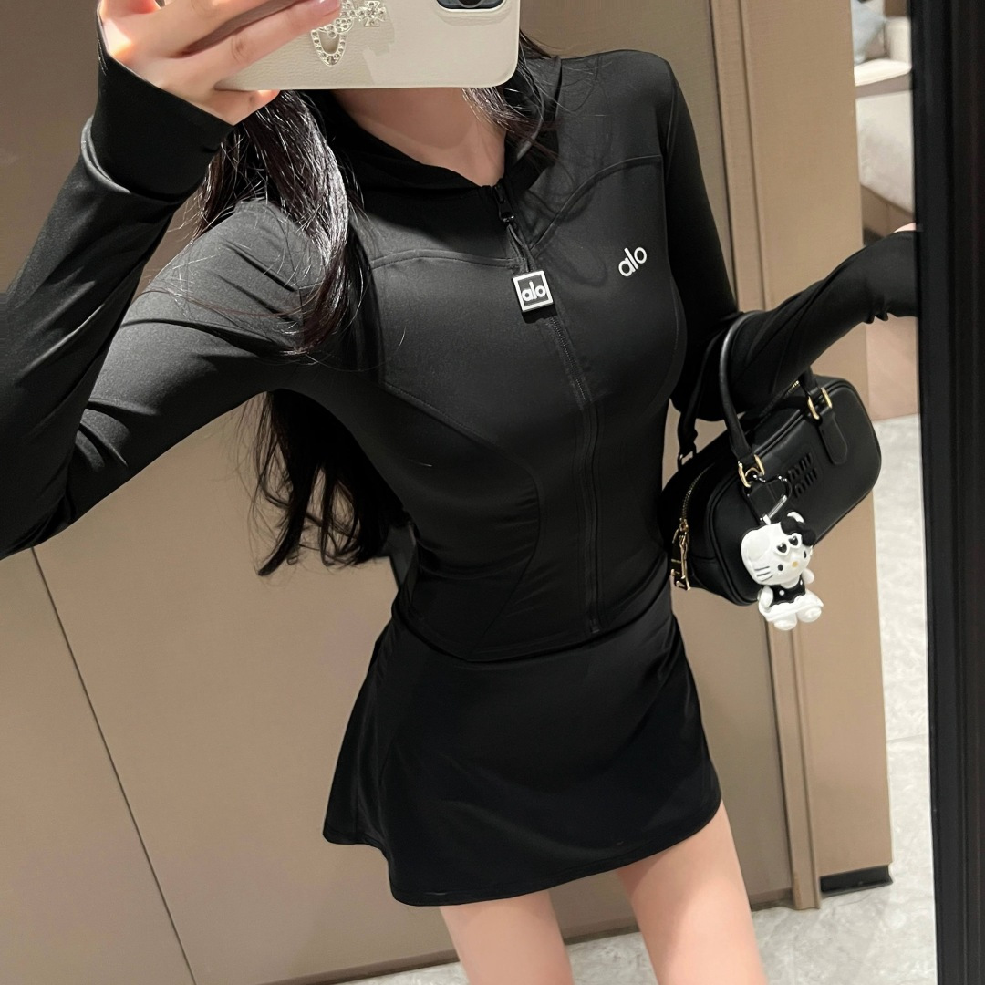 这款衣服是AAAAA 1:1 质量 (非常棒). 使用了和原版一模一样的材料. 商标部分也保持了和Alo Yoga一样. 图片拍摄是实物衣服拍摄, 您所收到的实物保证和我们图片一模一样.