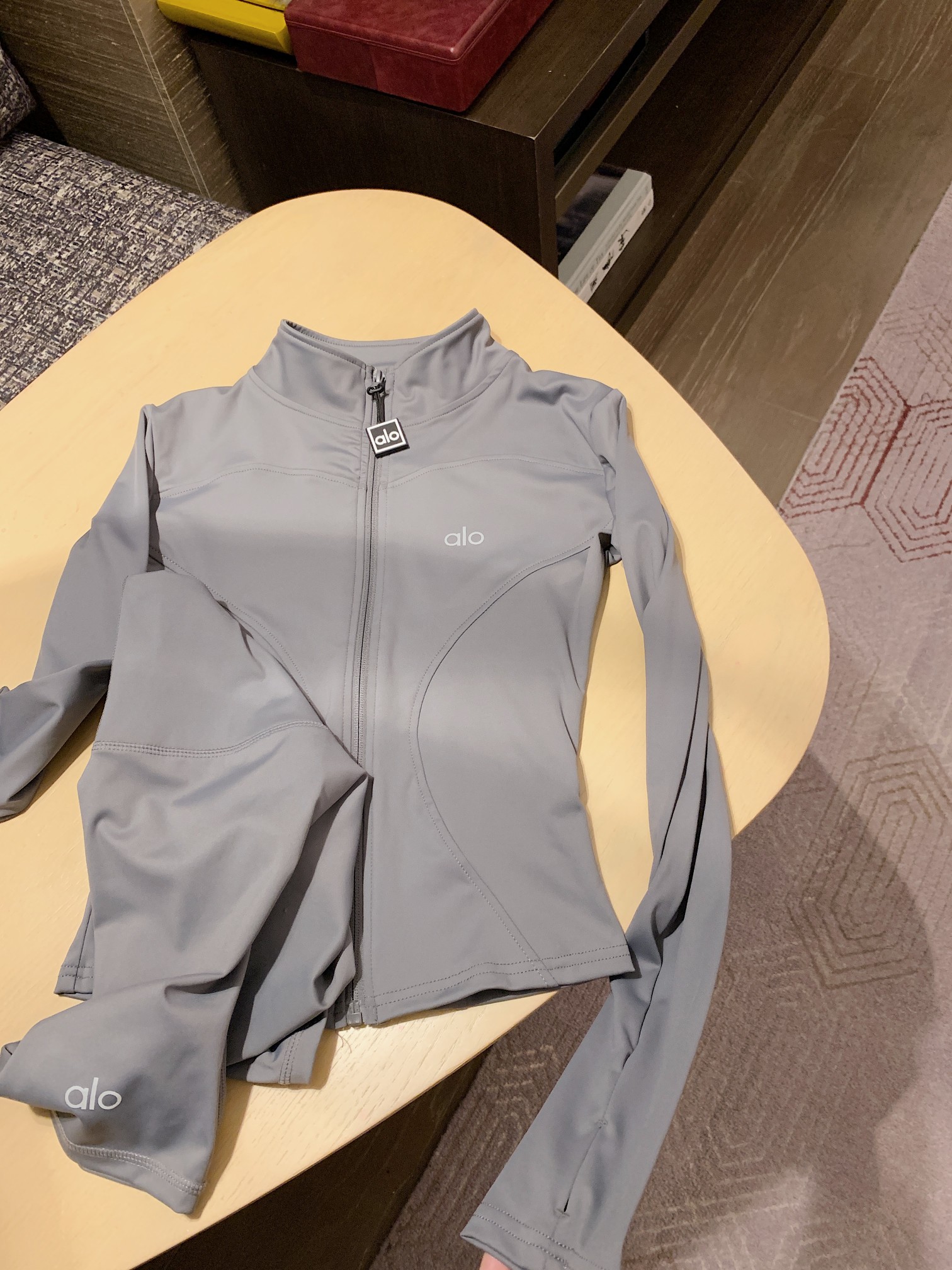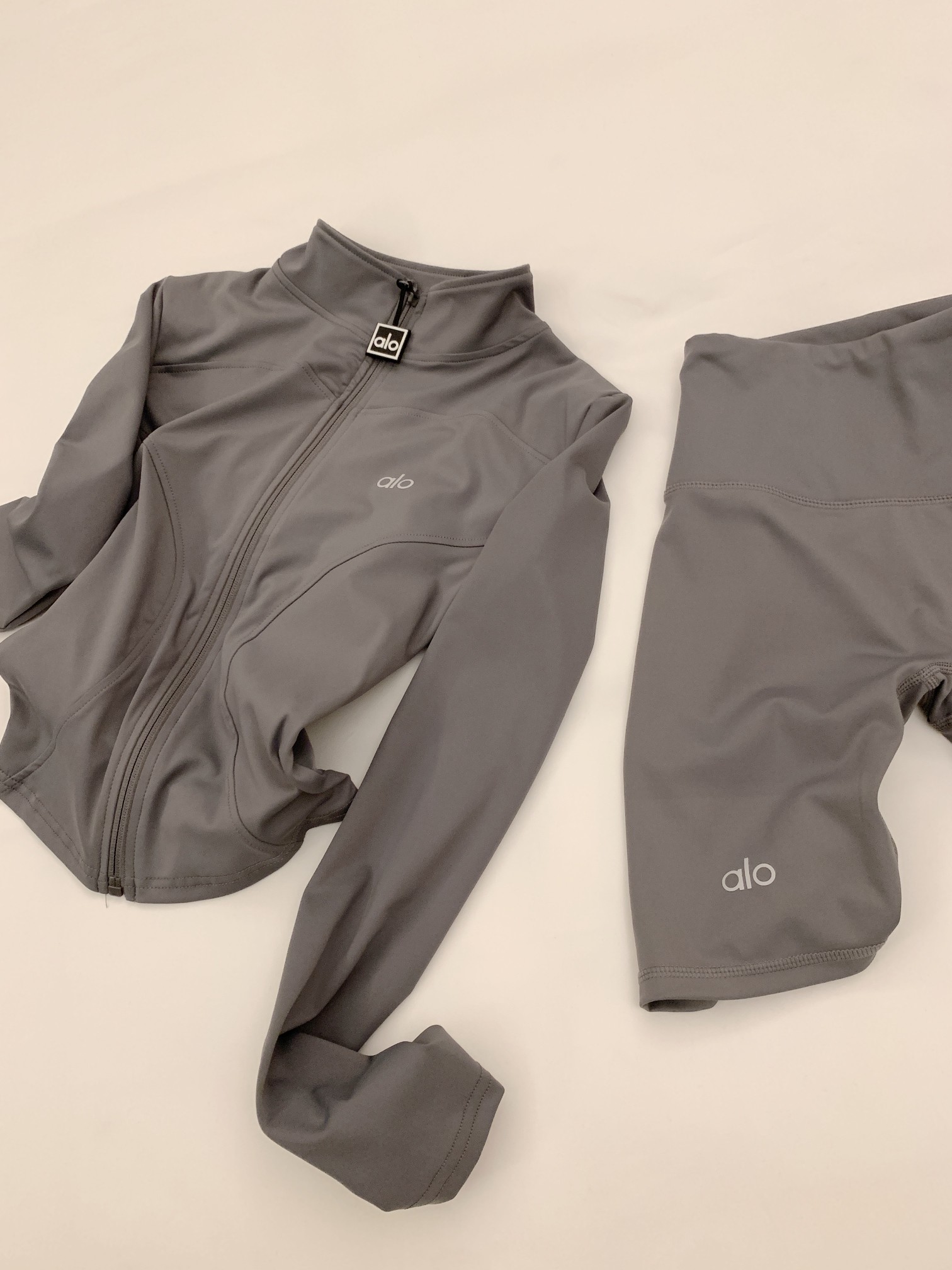 这款衣服是AAAAA 1:1 质量 (非常棒). 使用了和原版一模一样的材料. 商标部分也保持了和Alo Yoga一样. 图片拍摄是实物衣服拍摄, 您所收到的实物保证和我们图片一模一样.