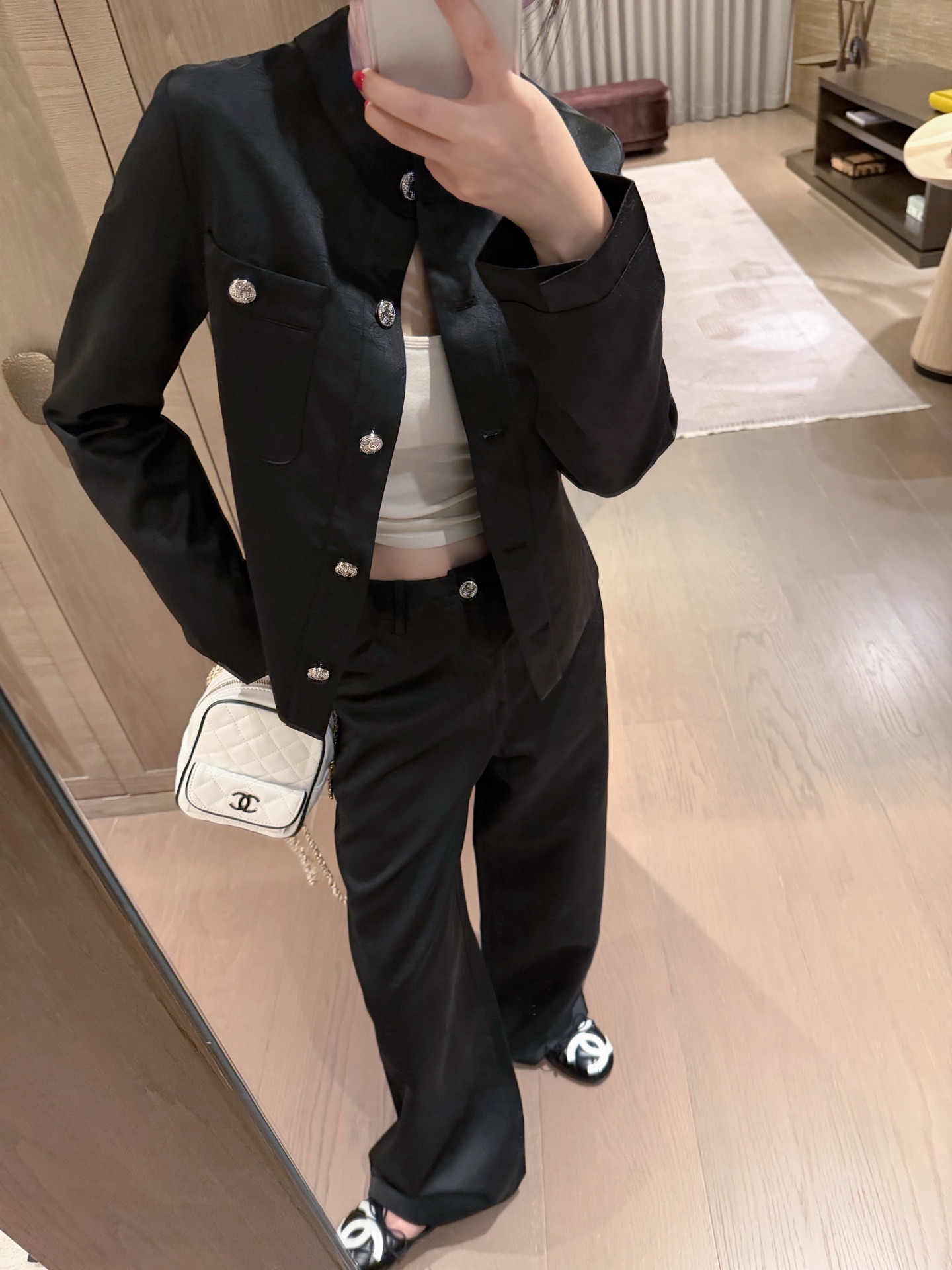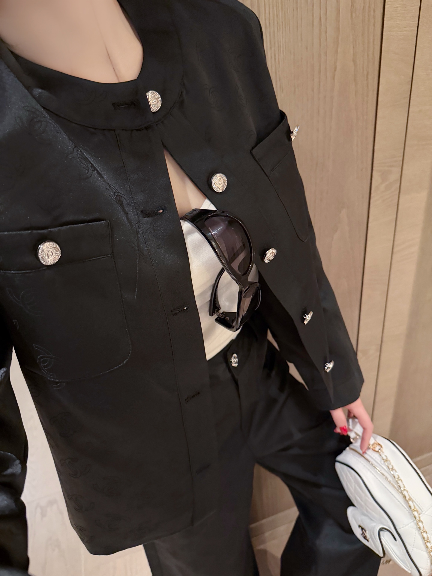 这款衣服是AAAAA 1:1 质量 (非常棒). 使用了和原版一模一样的材料. 商标部分也保持了和香奈儿/Chanel一样. 图片拍摄是实物衣服拍摄, 您所收到的实物保证和我们图片一模一样.