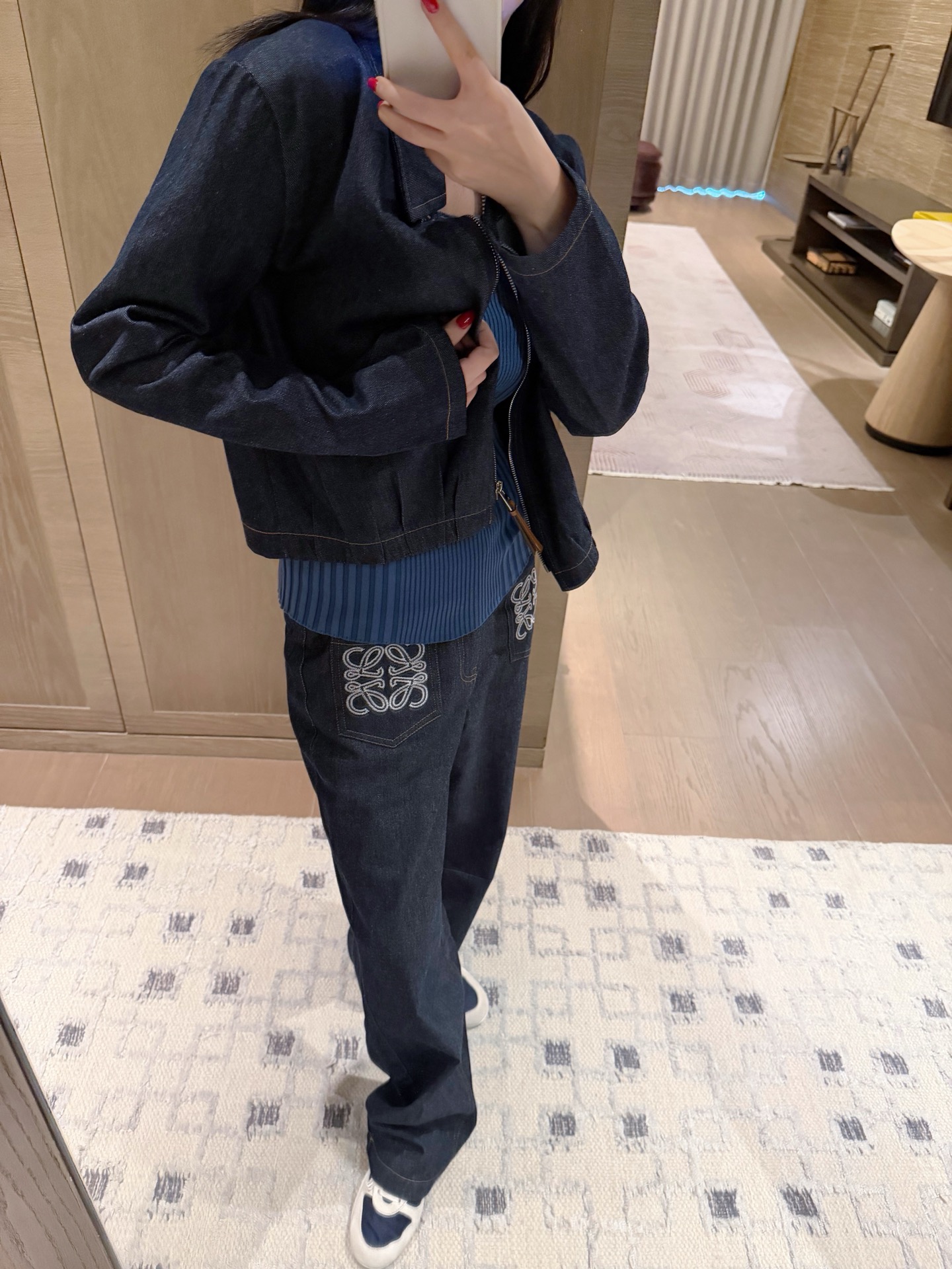 这款衣服是AAAAA 1:1 质量 (非常棒). 使用了和原版一模一样的材料. 商标部分也保持了和罗意威/Loewe一样. 图片拍摄是实物衣服拍摄, 您所收到的实物保证和我们图片一模一样.