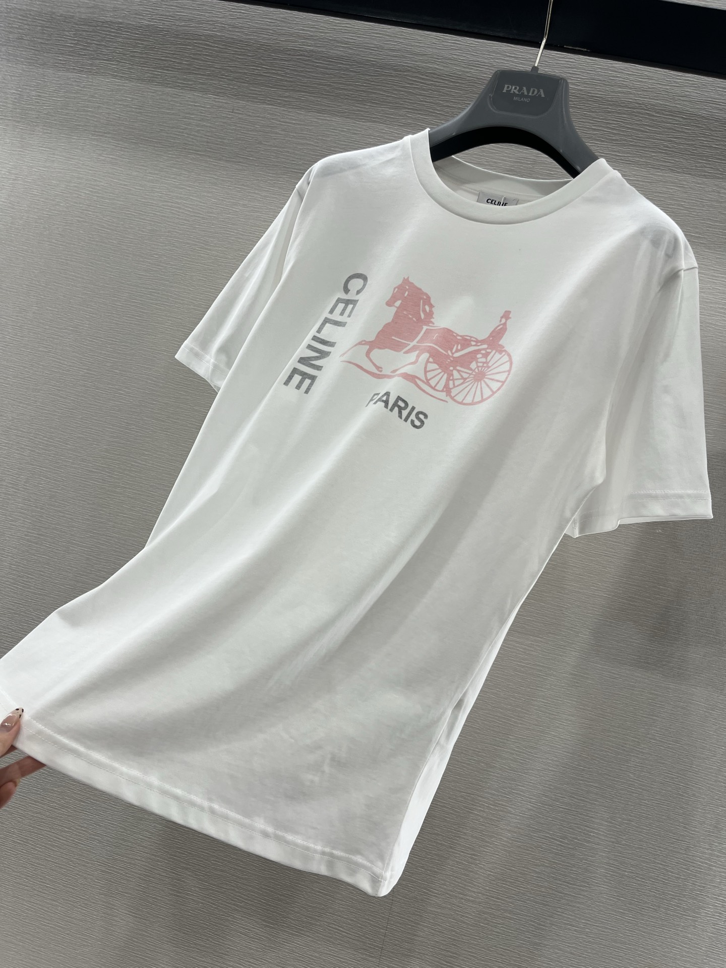 这款衣服是AAAAA 1:1 质量 (非常棒). 使用了和原版一模一样的材料. 商标部分也保持了和思琳/Celine一样. 图片拍摄是实物衣服拍摄, 您所收到的实物保证和我们图片一模一样.
