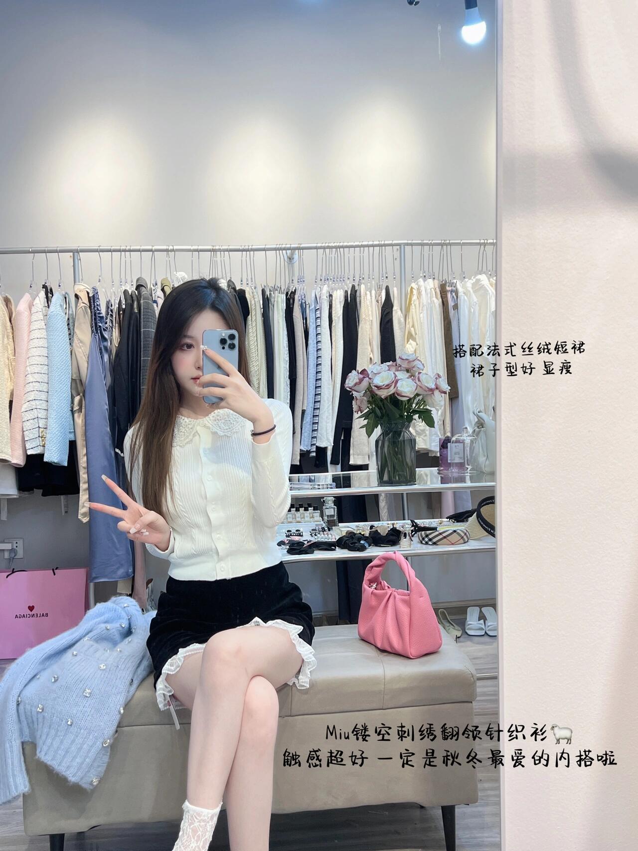 这款衣服是AAAAA 1:1 质量 (非常棒). 使用了和原版一模一样的材料. 商标部分也保持了和缪缪/Miu Miu一样. 图片拍摄是实物衣服拍摄, 您所收到的实物保证和我们图片一模一样.