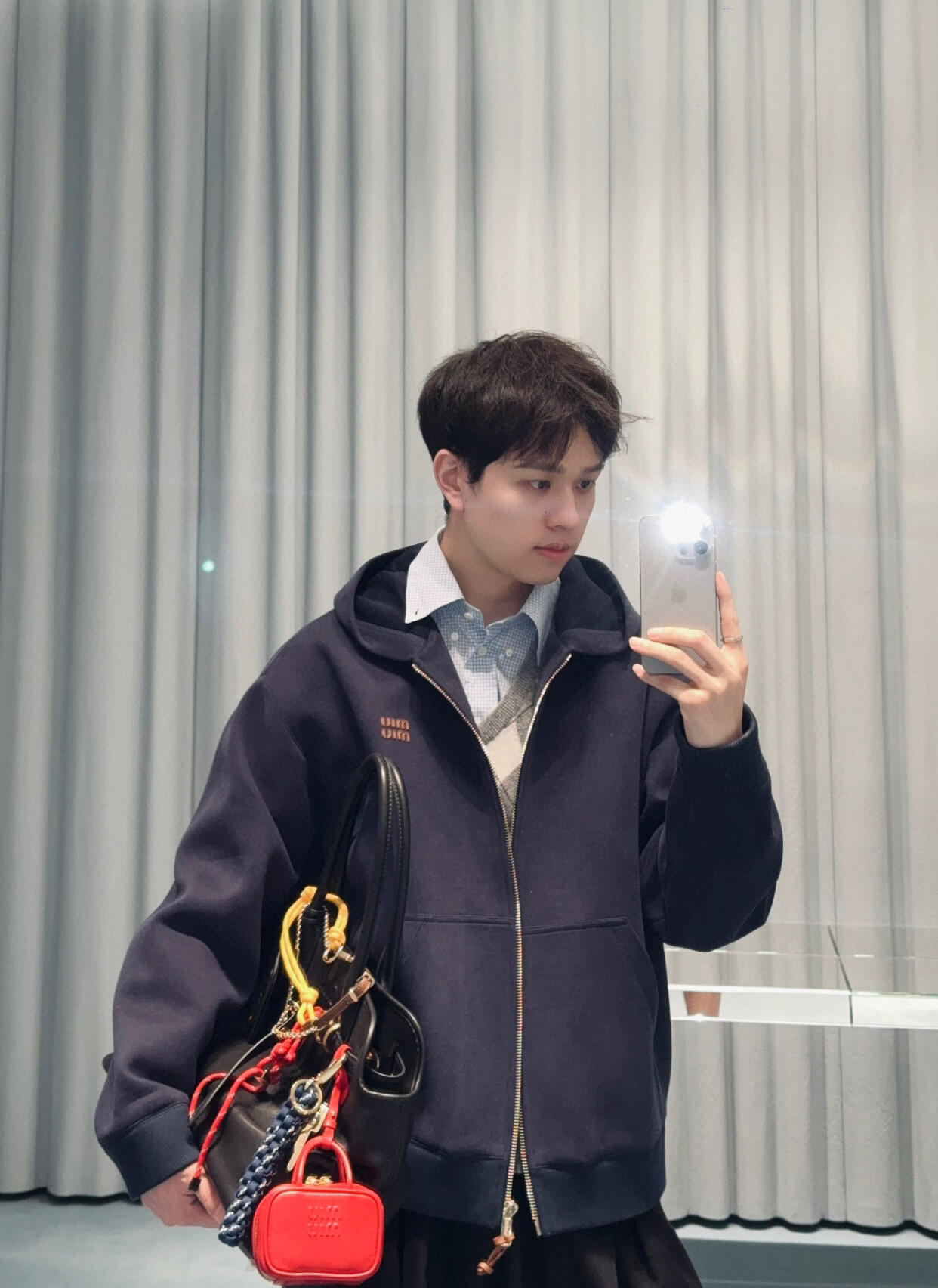 这款衣服是AAAAA 1:1 质量 (非常棒). 使用了和原版一模一样的材料. 商标部分也保持了和缪缪/Miu Miu一样. 图片拍摄是实物衣服拍摄, 您所收到的实物保证和我们图片一模一样.