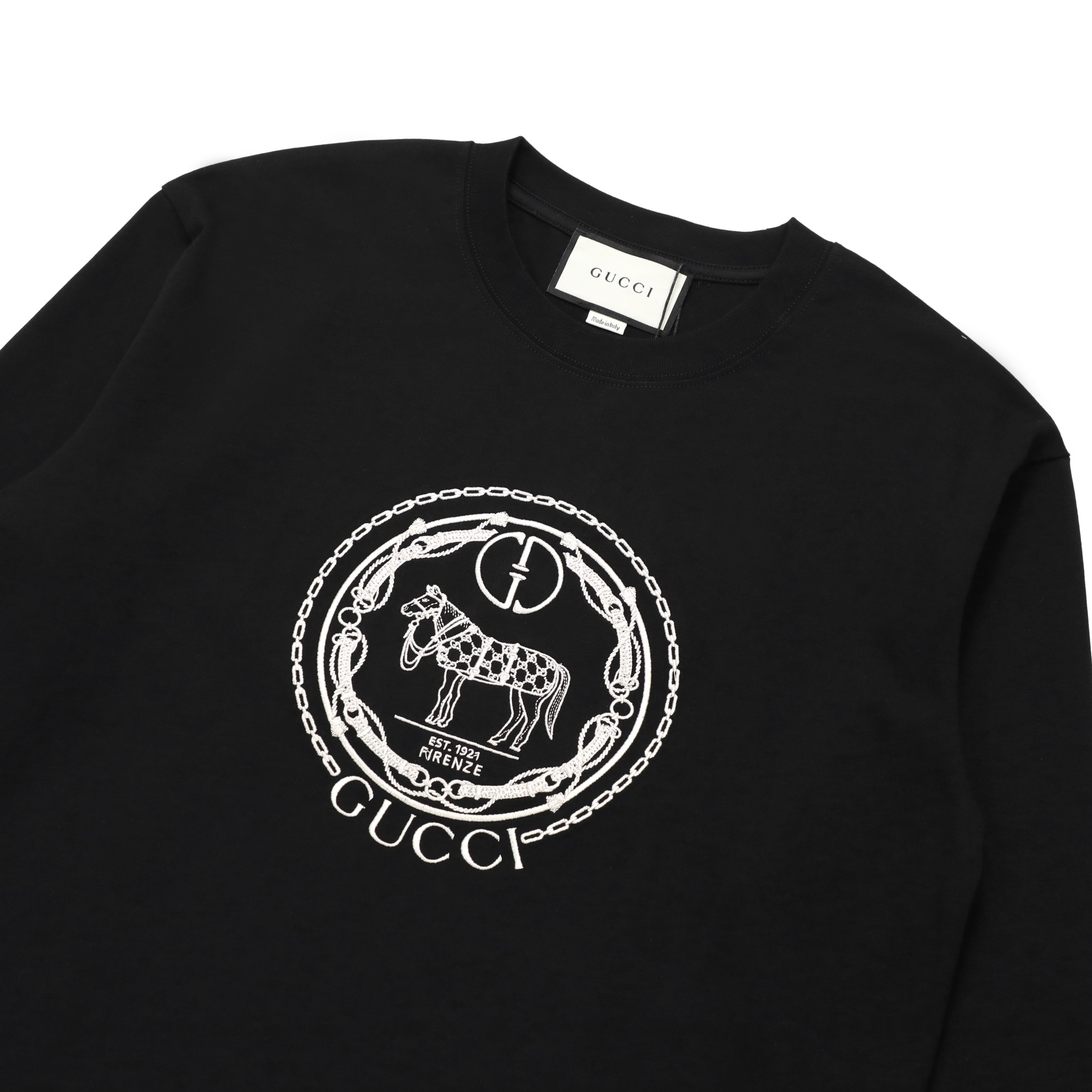 这款衣服是AAAAA 1:1 质量 (非常棒). 使用了和原版一模一样的材料. 商标部分也保持了和古奇/Gucci一样. 图片拍摄是实物衣服拍摄, 您所收到的实物保证和我们图片一模一样.