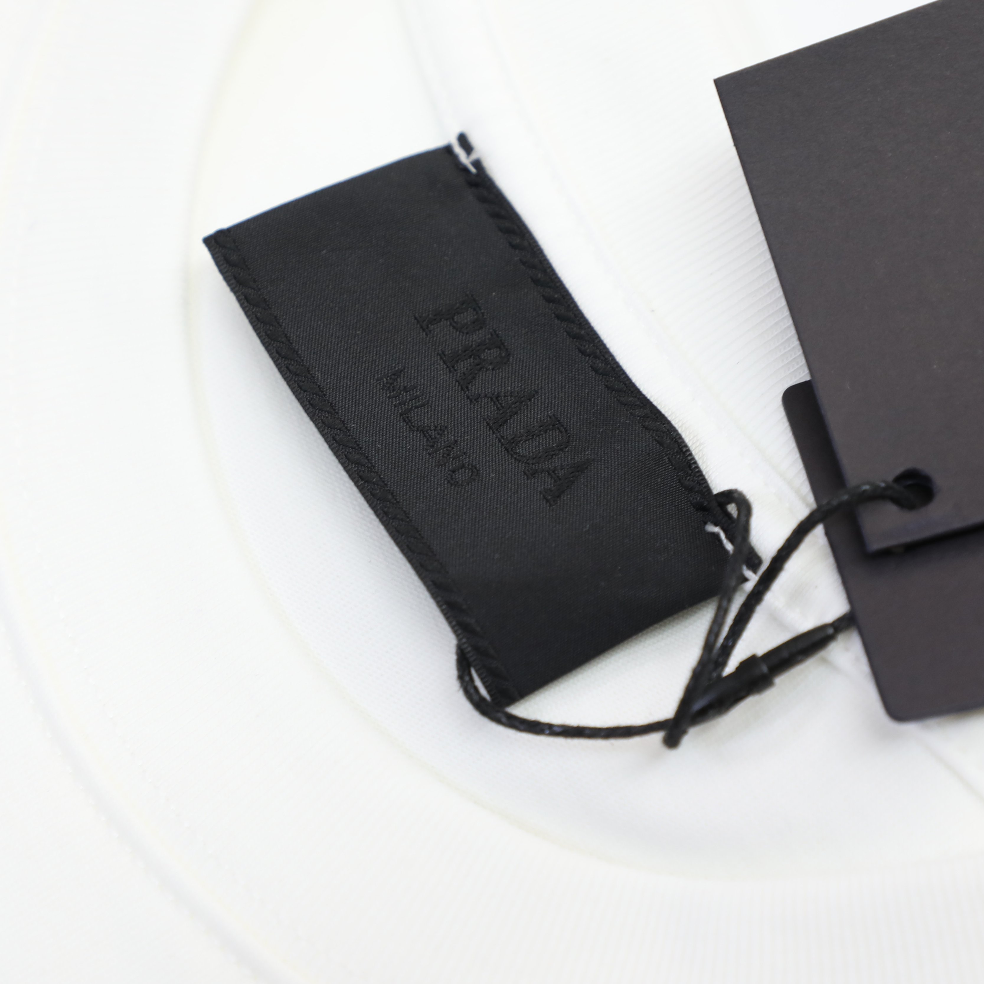 这款衣服是AAAAA 1:1 质量 (非常棒). 使用了和原版一模一样的材料. 商标部分也保持了和普拉达/Prada一样. 图片拍摄是实物衣服拍摄, 您所收到的实物保证和我们图片一模一样.