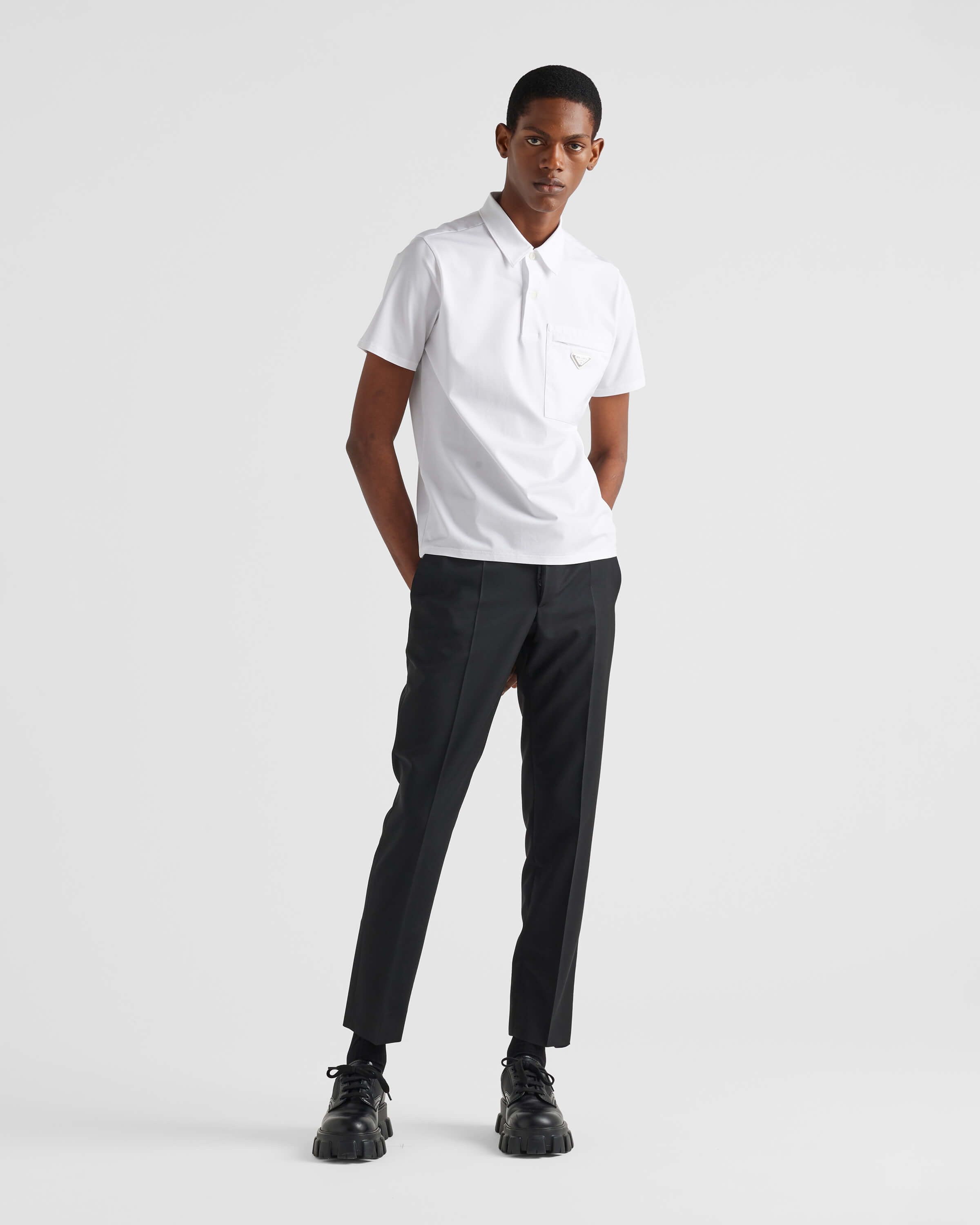这款衣服是AAAAA 1:1 质量 (非常棒). 使用了和原版一模一样的材料. 商标部分也保持了和普拉达/Prada一样. 图片拍摄是实物衣服拍摄, 您所收到的实物保证和我们图片一模一样.