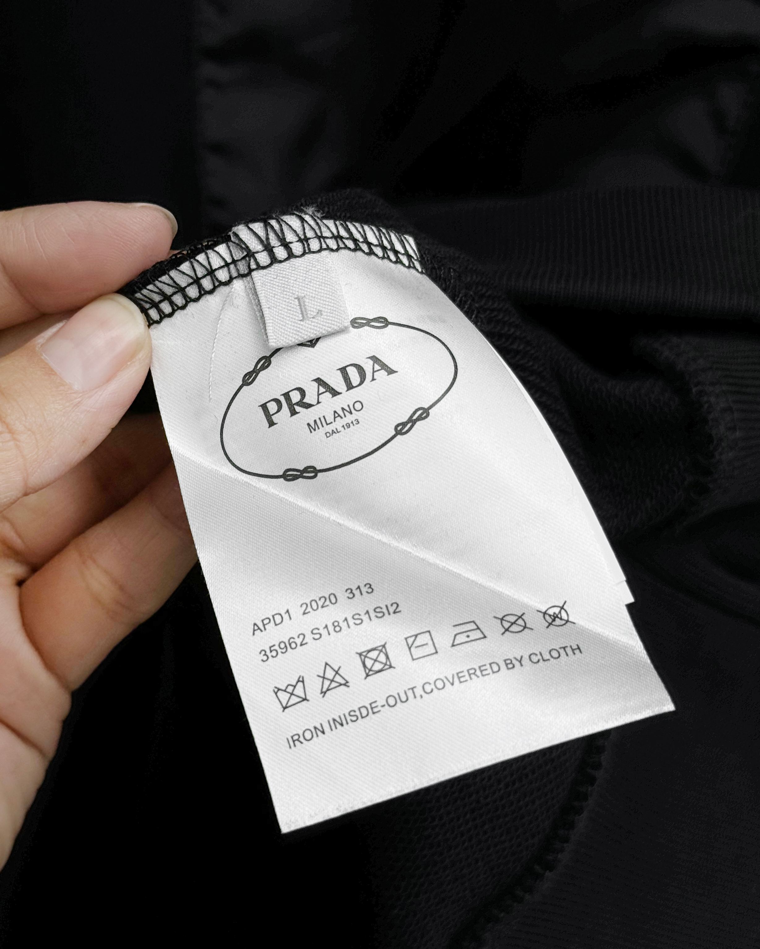 这款衣服是AAAAA 1:1 质量 (非常棒). 使用了和原版一模一样的材料. 商标部分也保持了和普拉达/Prada一样. 图片拍摄是实物衣服拍摄, 您所收到的实物保证和我们图片一模一样.