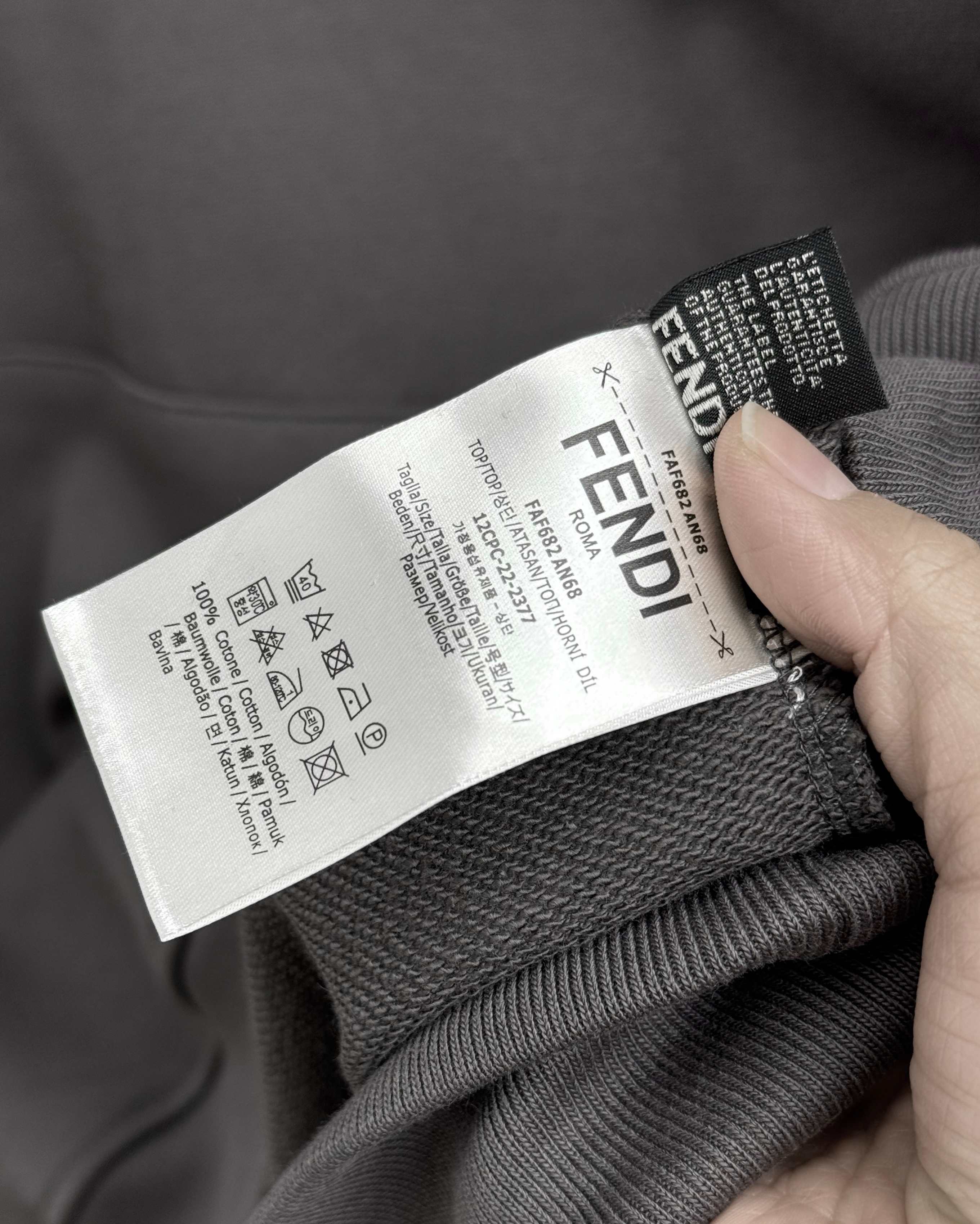 这款衣服是AAAAA 1:1 质量 (非常棒). 使用了和原版一模一样的材料. 商标部分也保持了和芬迪/Fendi一样. 图片拍摄是实物衣服拍摄, 您所收到的实物保证和我们图片一模一样.