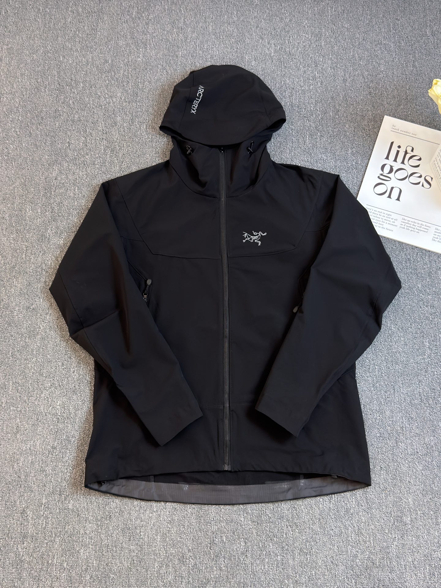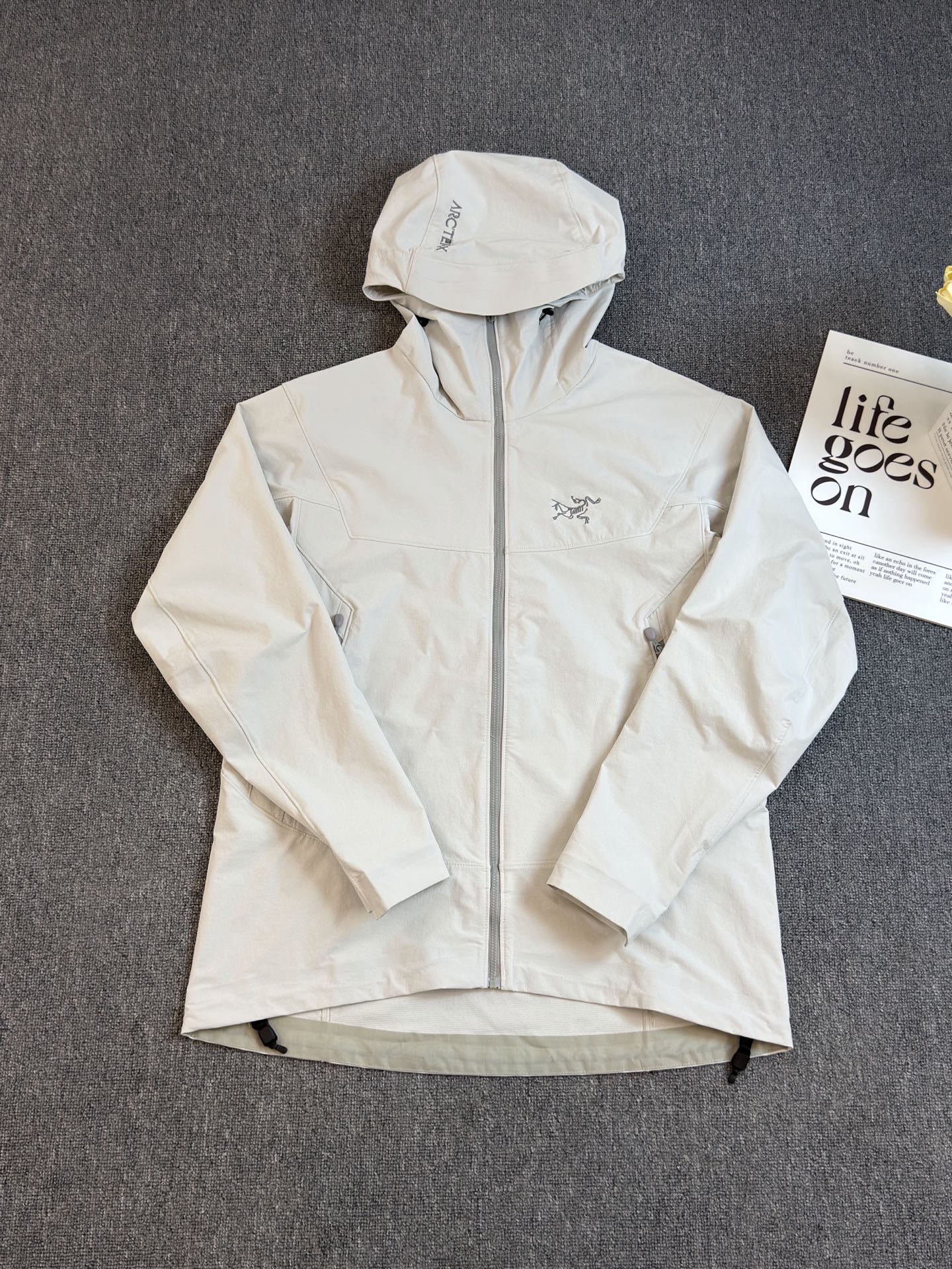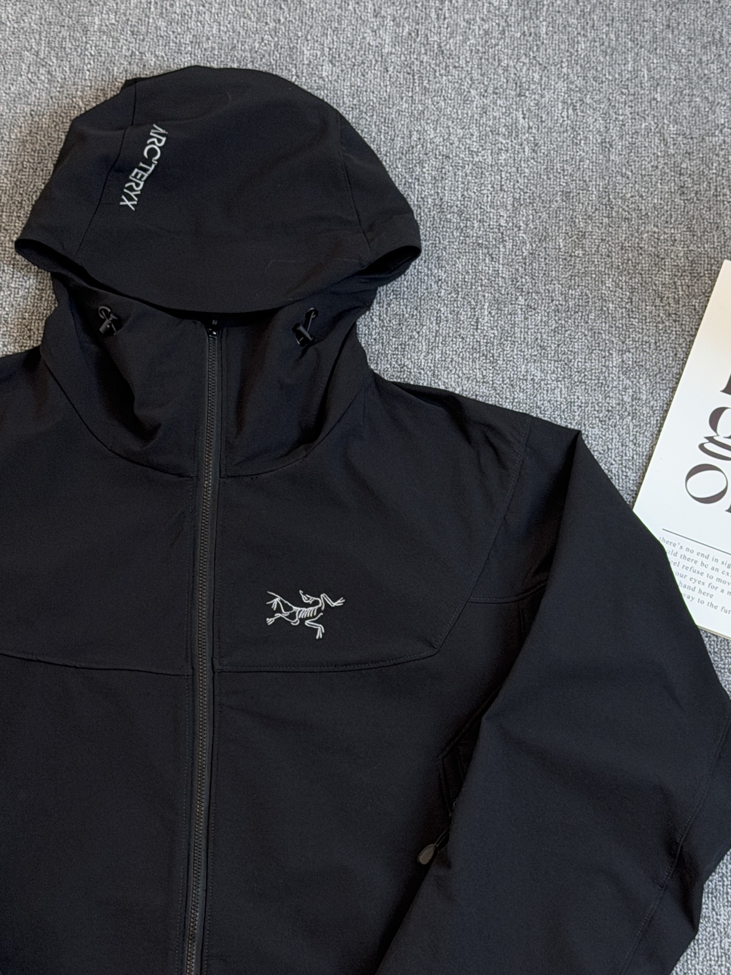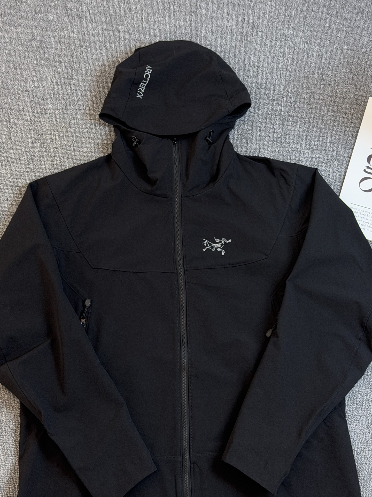 这款衣服是AAAAA 1:1 质量 (非常棒). 使用了和原版一模一样的材料. 商标部分也保持了和ARC'TERYX一样. 图片拍摄是实物衣服拍摄, 您所收到的实物保证和我们图片一模一样.