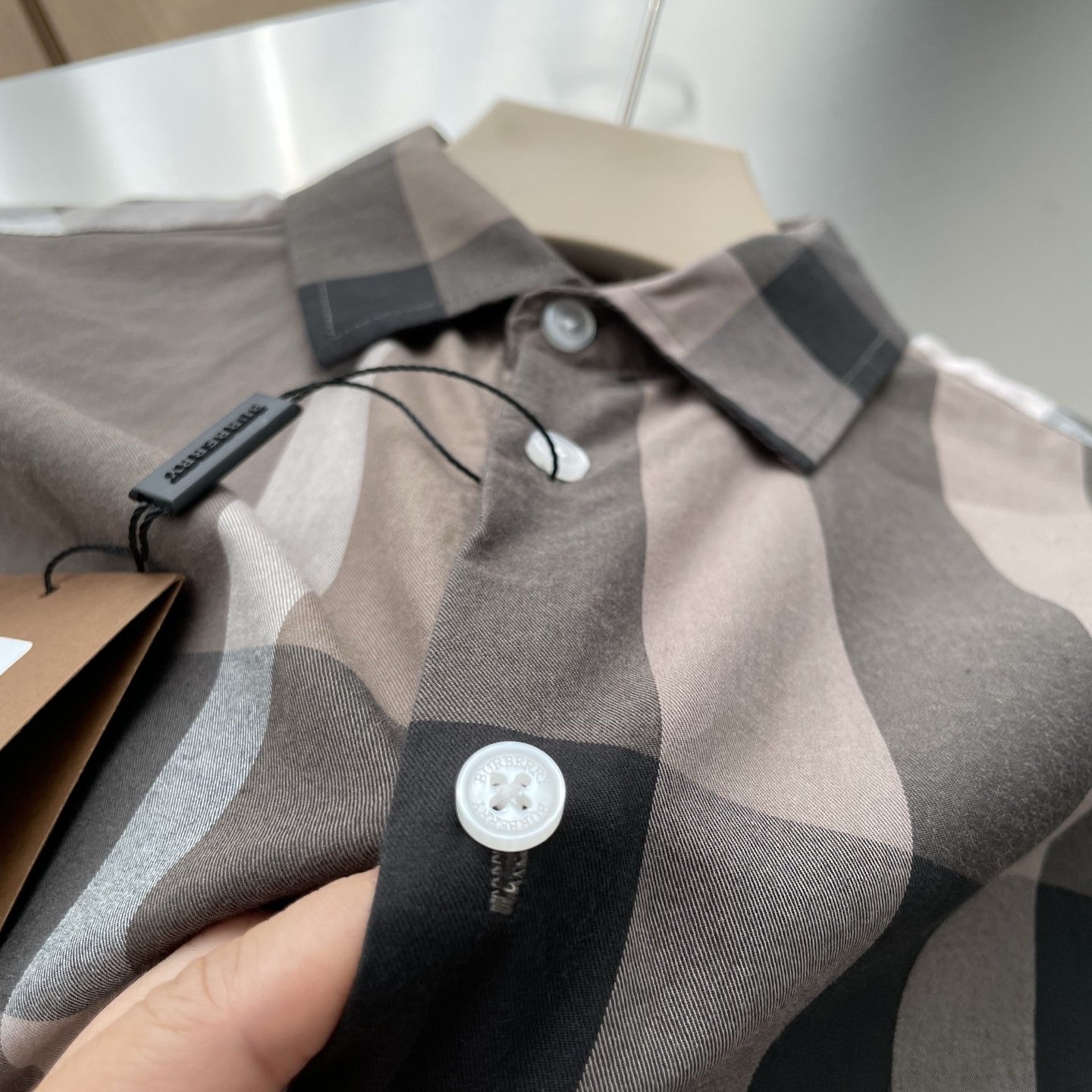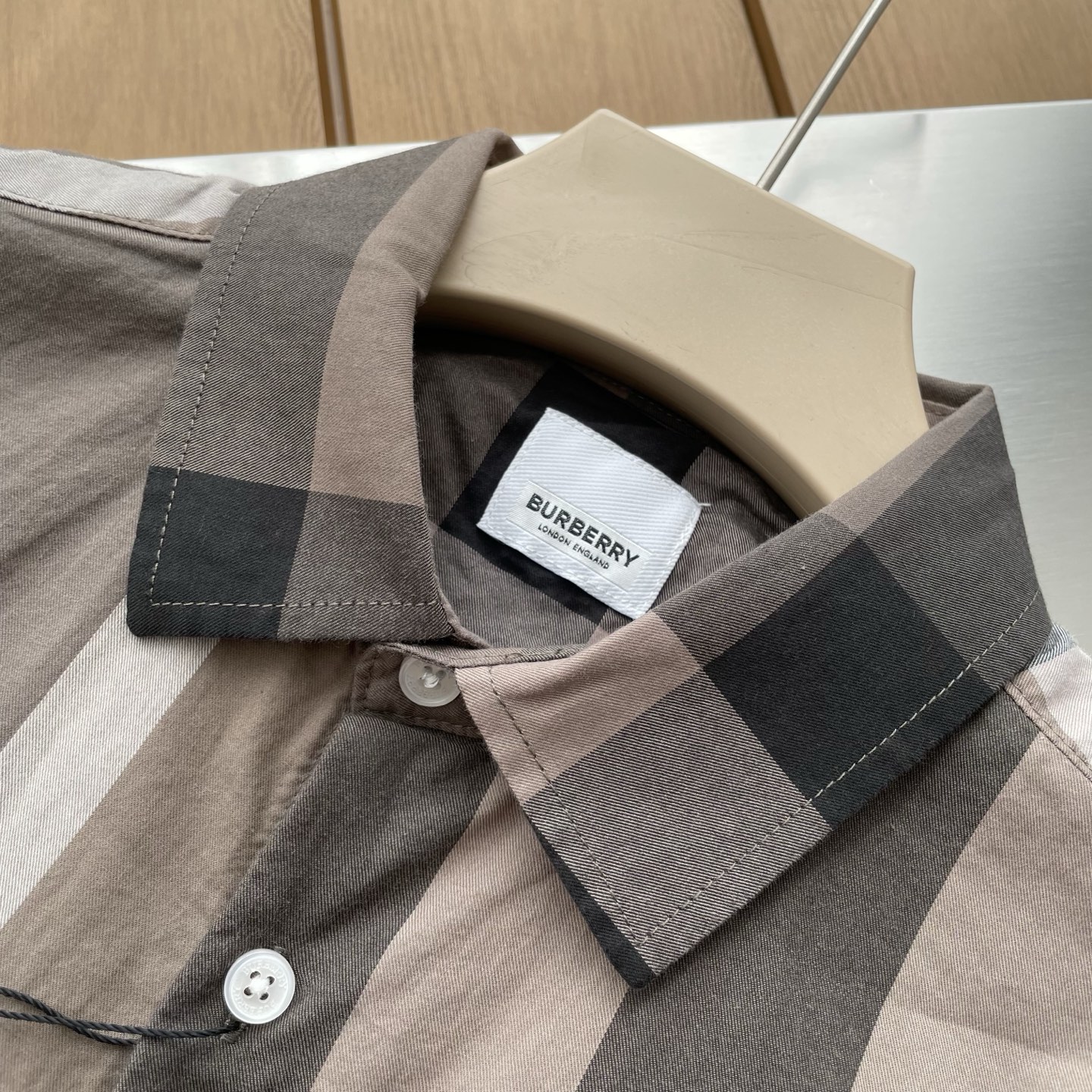 这款衣服是AAAAA 1:1 质量 (非常棒). 使用了和原版一模一样的材料. 商标部分也保持了和巴宝莉/Burberry一样. 图片拍摄是实物衣服拍摄, 您所收到的实物保证和我们图片一模一样.