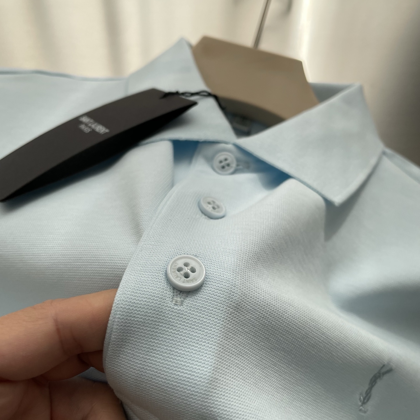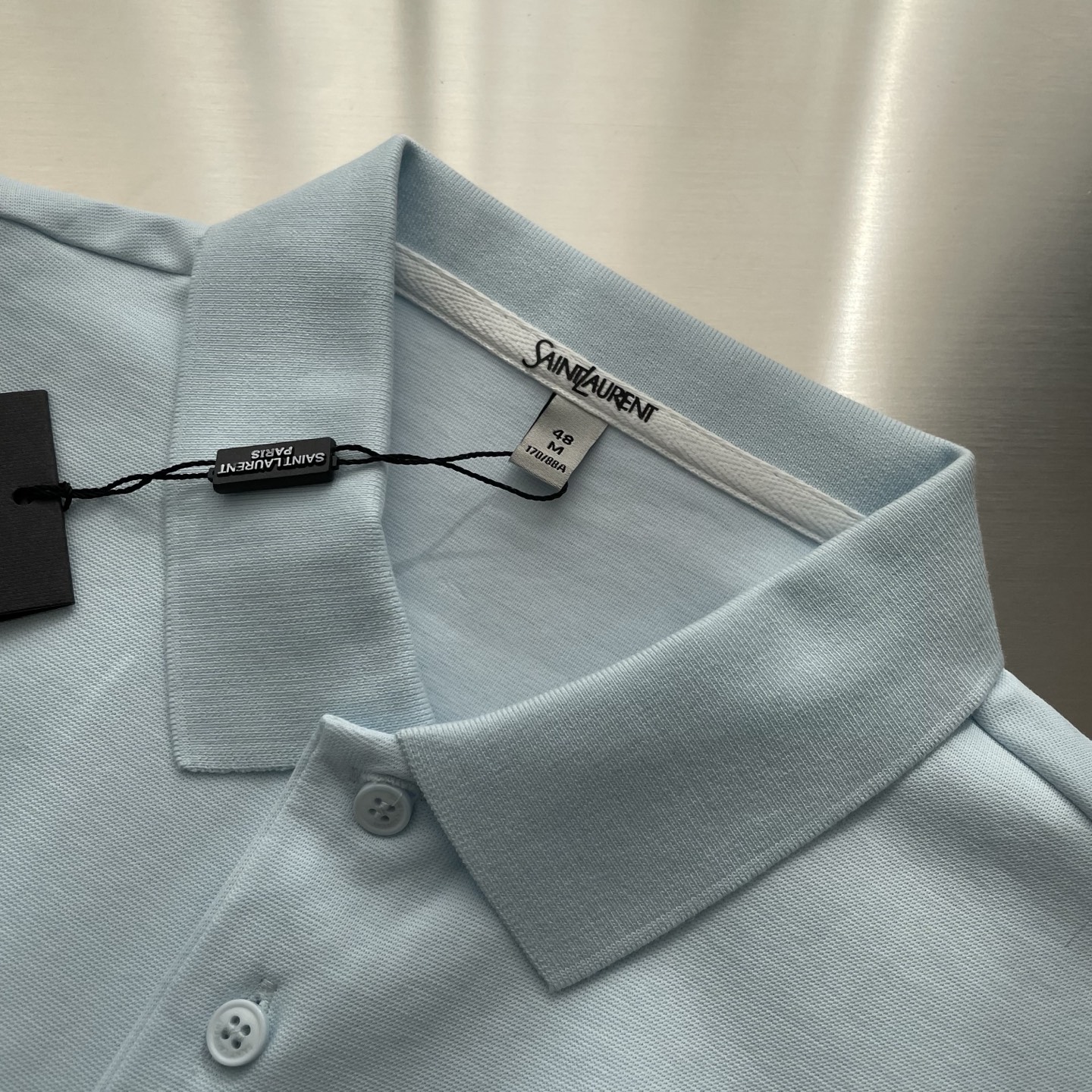 这款衣服是AAAAA 1:1 质量 (非常棒). 使用了和原版一模一样的材料. 商标部分也保持了和圣罗兰/Saint Laurent一样. 图片拍摄是实物衣服拍摄, 您所收到的实物保证和我们图片一模一样.
