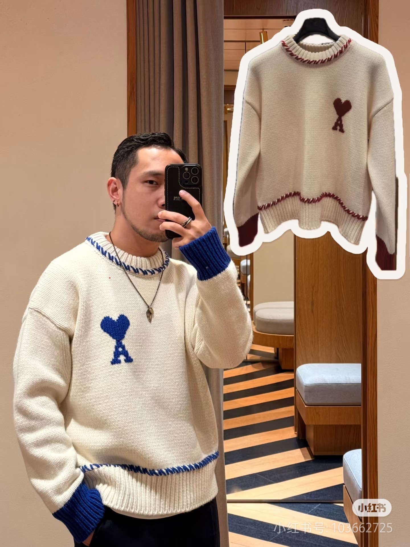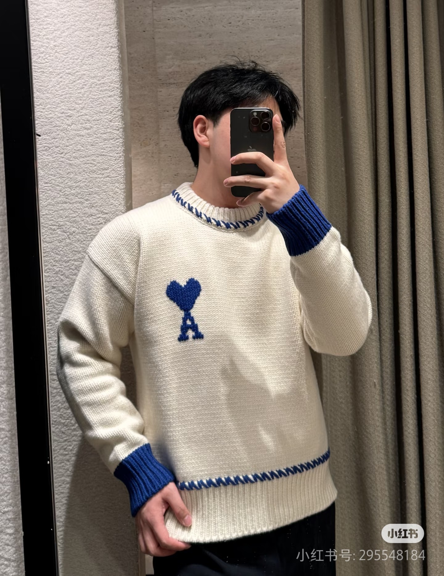 这款衣服是AAAAA 1:1 质量 (非常棒). 使用了和原版一模一样的材料. 商标部分也保持了和Ami一样. 图片拍摄是实物衣服拍摄, 您所收到的实物保证和我们图片一模一样.