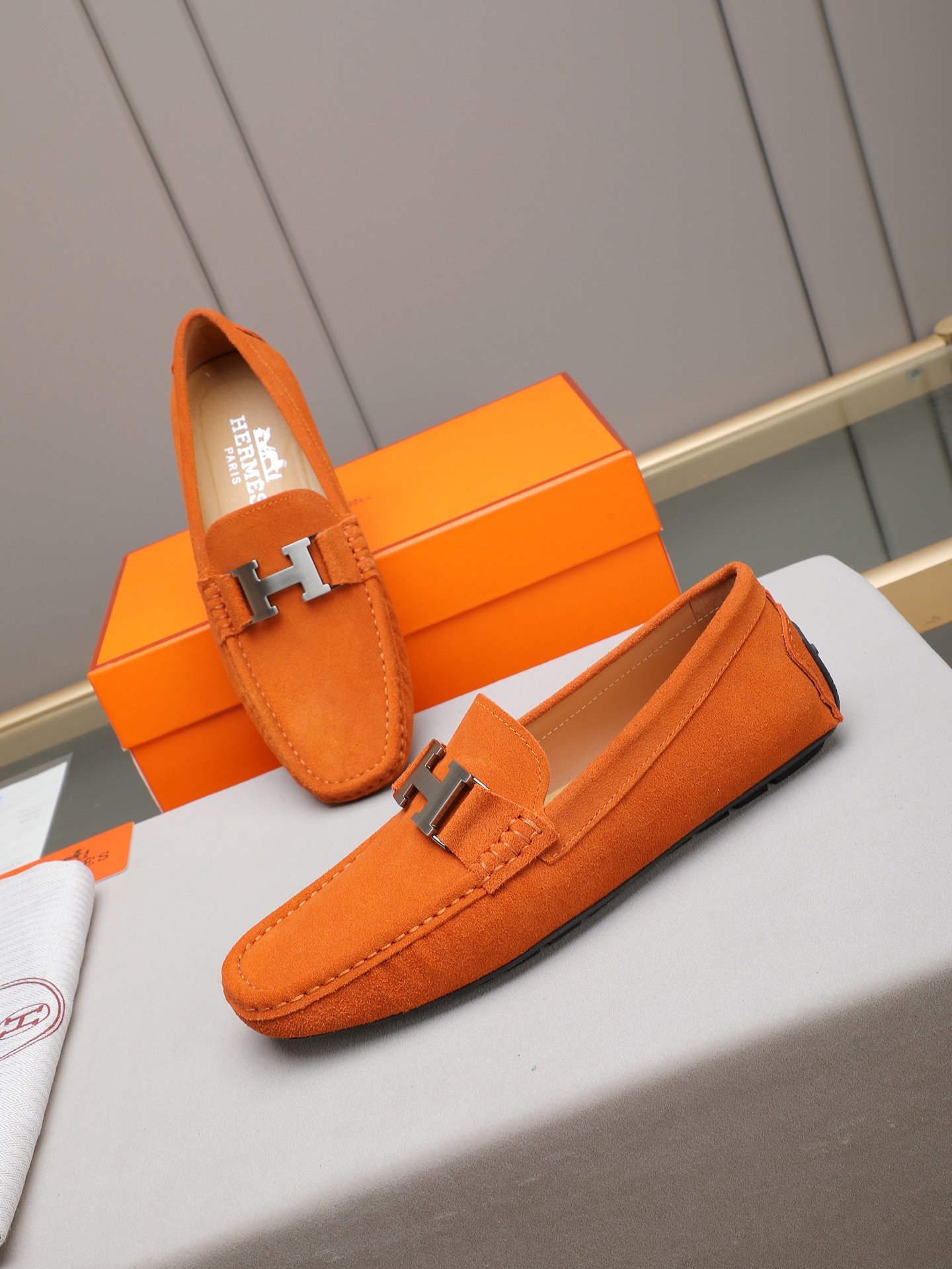 这款鞋子是AAAAA 1:1 质量 (非常棒). 使用了和原版一模一样的材料. 商标部分也保持了和爱马仕/Hermes一样. 图片拍摄是实物鞋子拍摄, 您所收到的实物保证和我们图片一模一样.