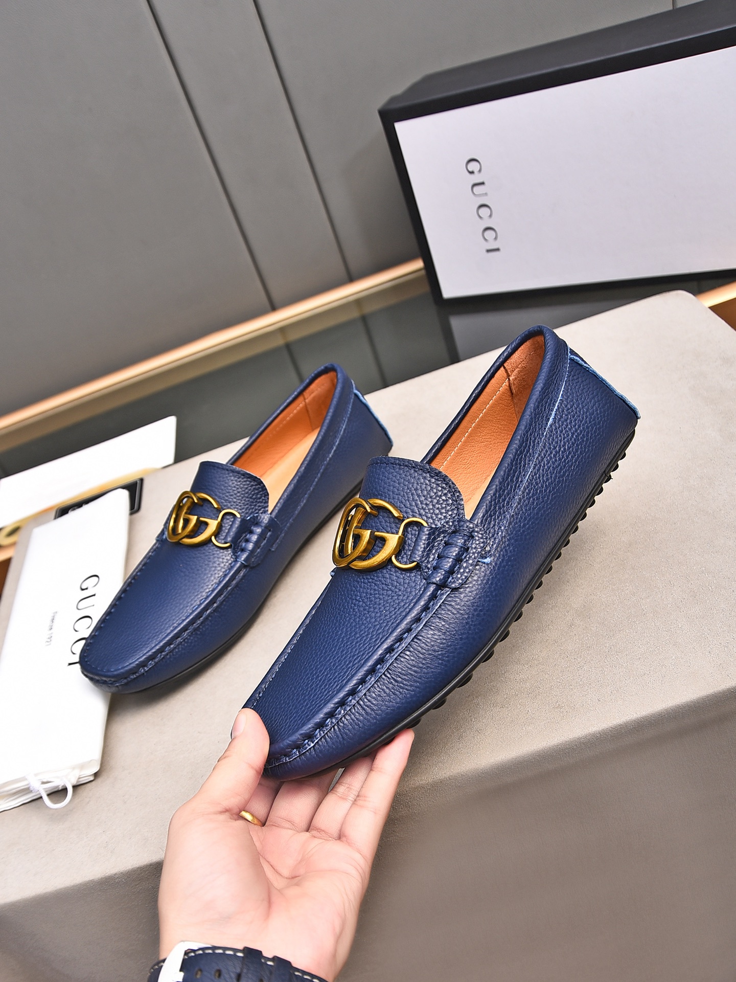 这款鞋子是AAAAA 1:1 质量 (非常棒). 使用了和原版一模一样的材料. 商标部分也保持了和古奇/Gucci一样. 图片拍摄是实物鞋子拍摄, 您所收到的实物保证和我们图片一模一样.