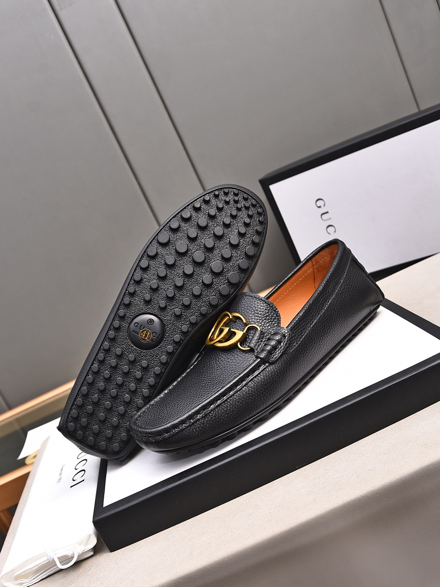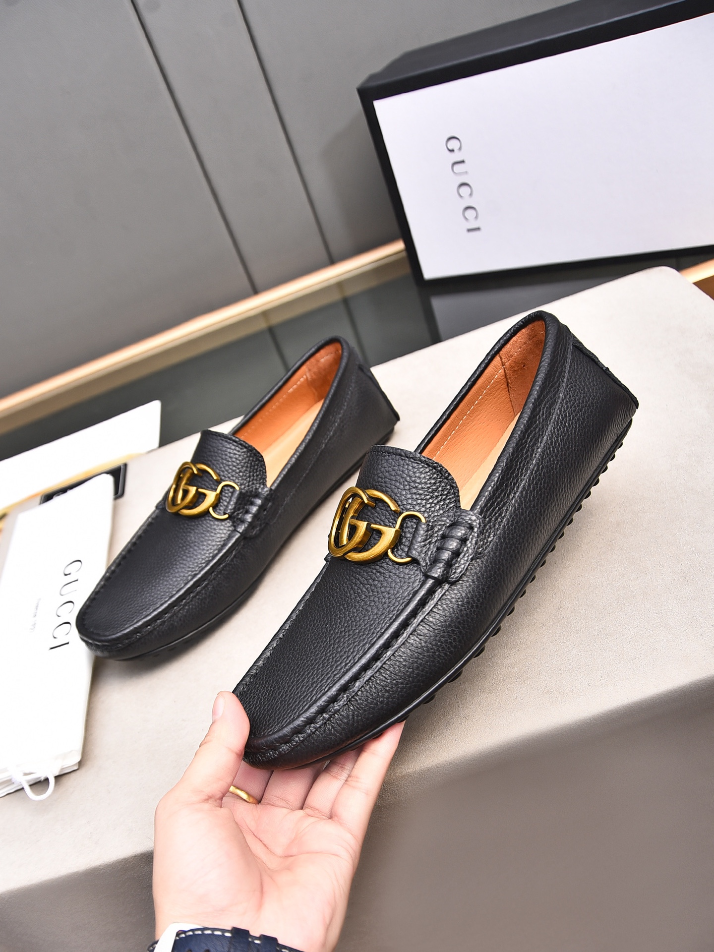 这款鞋子是AAAAA 1:1 质量 (非常棒). 使用了和原版一模一样的材料. 商标部分也保持了和古奇/Gucci一样. 图片拍摄是实物鞋子拍摄, 您所收到的实物保证和我们图片一模一样.