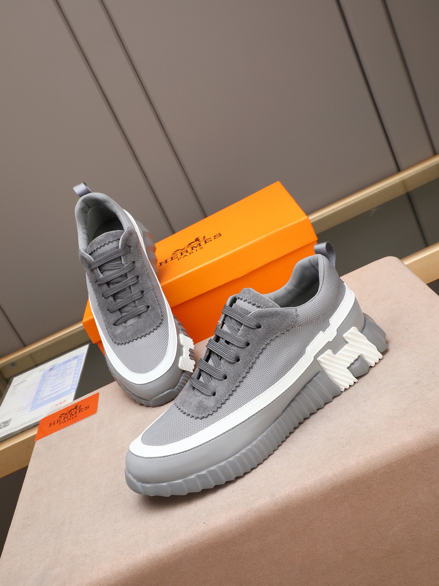 这款鞋子是AAAAA 1:1 质量 (非常棒). 使用了和原版一模一样的材料. 商标部分也保持了和爱马仕/Hermes一样. 图片拍摄是实物鞋子拍摄, 您所收到的实物保证和我们图片一模一样.