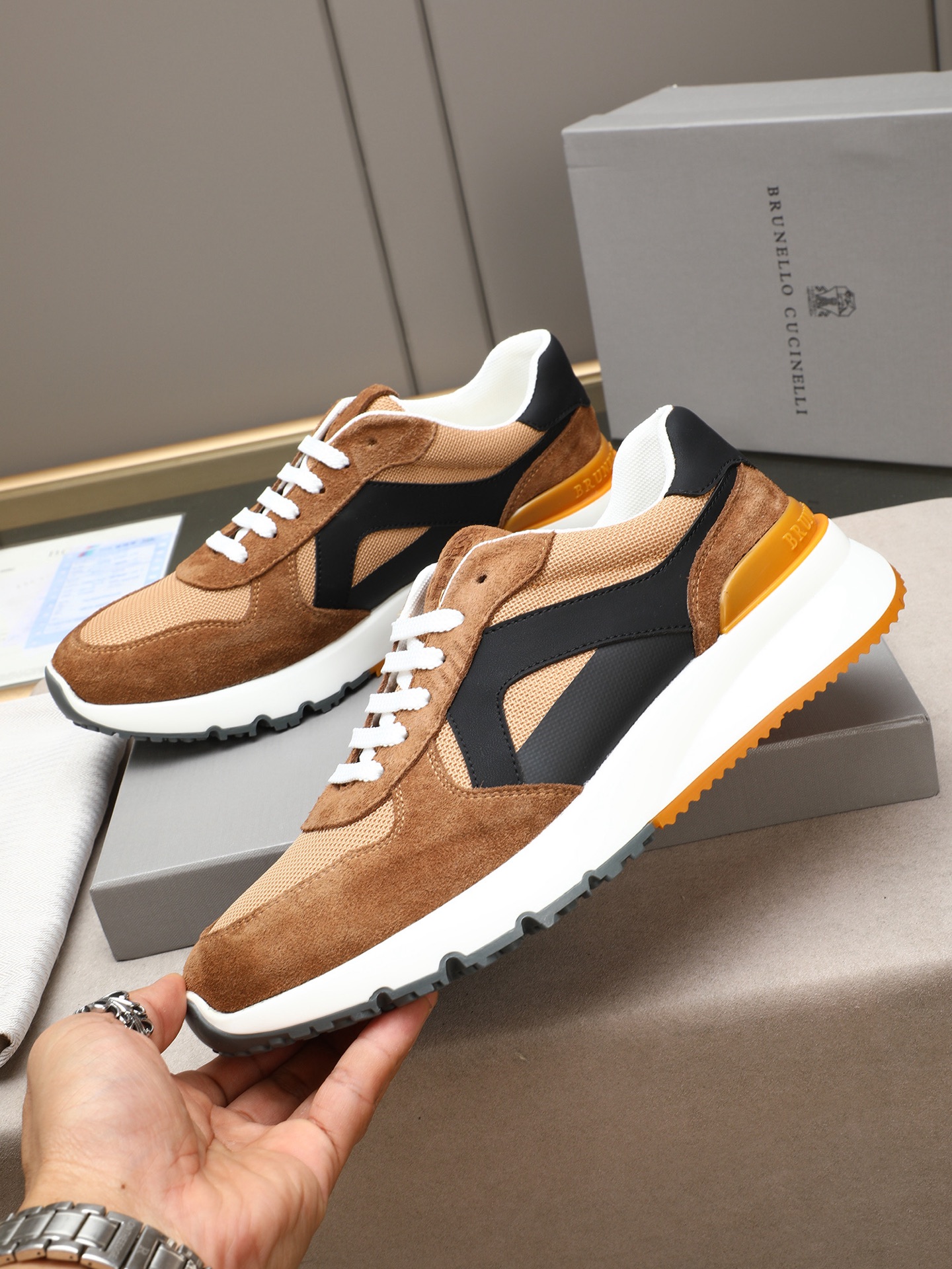 这款鞋子是AAAAA 1:1 质量 (非常棒). 使用了和原版一模一样的材料. 商标部分也保持了和Brunello Cucinelli一样. 图片拍摄是实物鞋子拍摄, 您所收到的实物保证和我们图片一模一样.