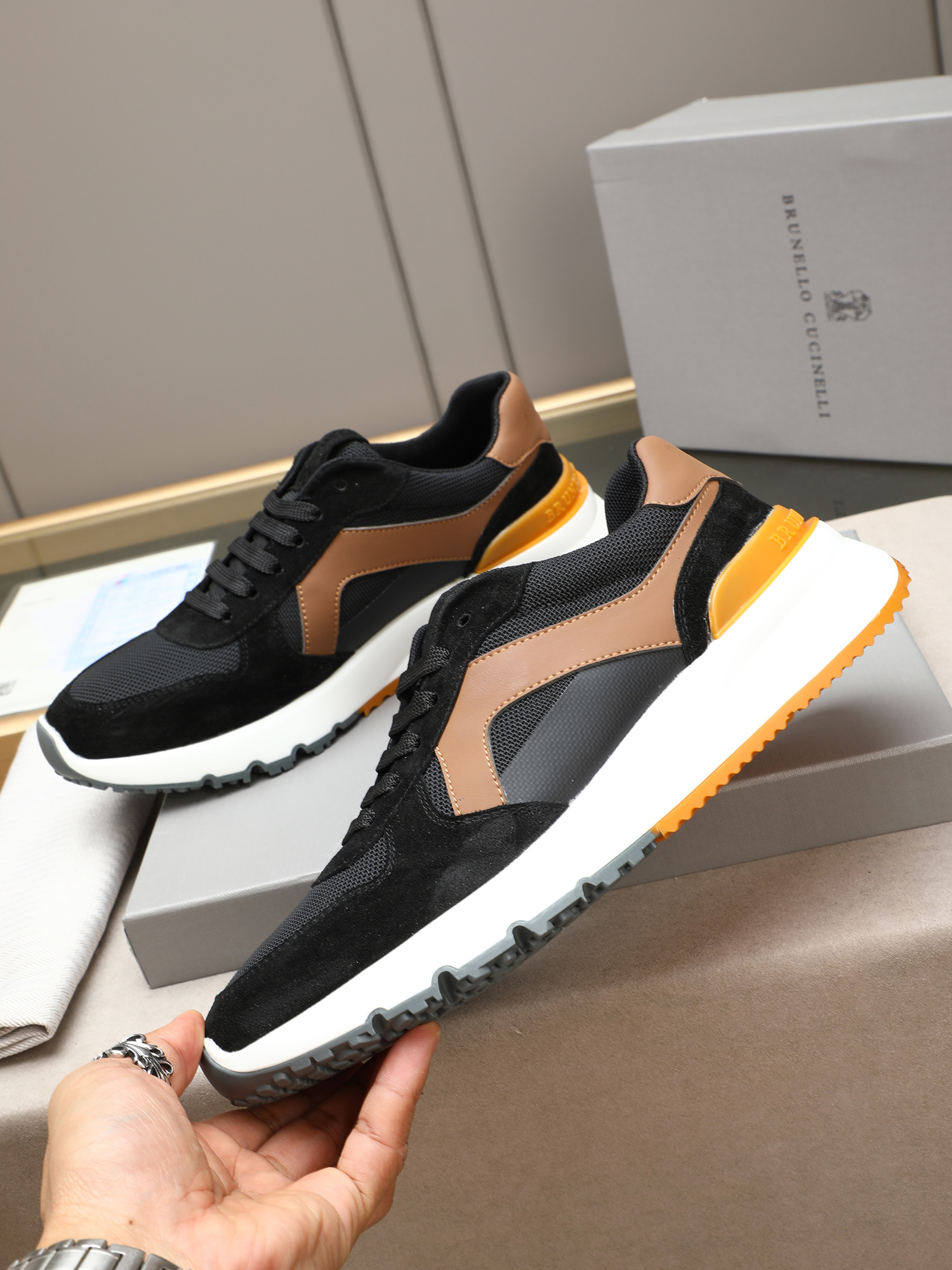 这款鞋子是AAAAA 1:1 质量 (非常棒). 使用了和原版一模一样的材料. 商标部分也保持了和Brunello Cucinelli一样. 图片拍摄是实物鞋子拍摄, 您所收到的实物保证和我们图片一模一样.