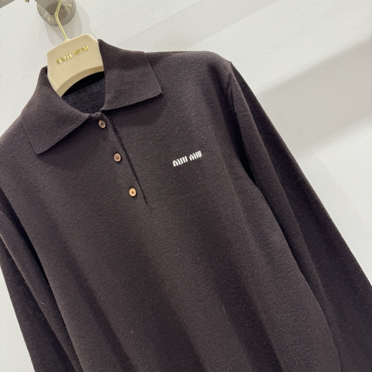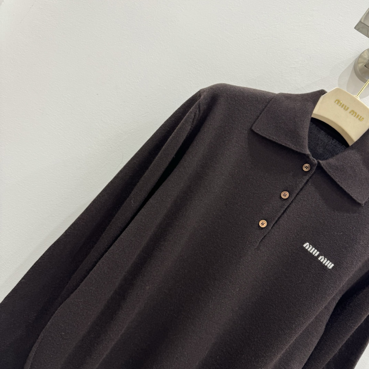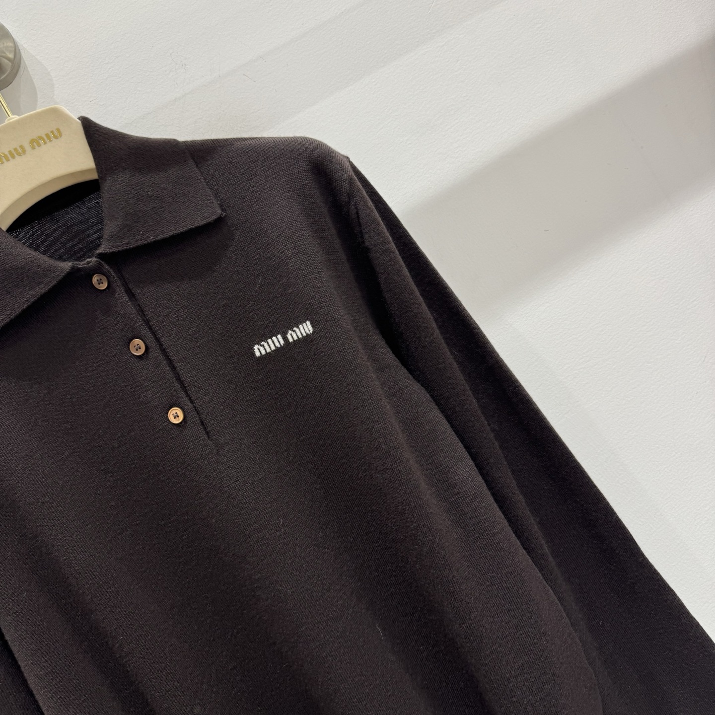 这款衣服是AAAAA 1:1 质量 (非常棒). 使用了和原版一模一样的材料. 商标部分也保持了和缪缪/Miu Miu一样. 图片拍摄是实物衣服拍摄, 您所收到的实物保证和我们图片一模一样.
