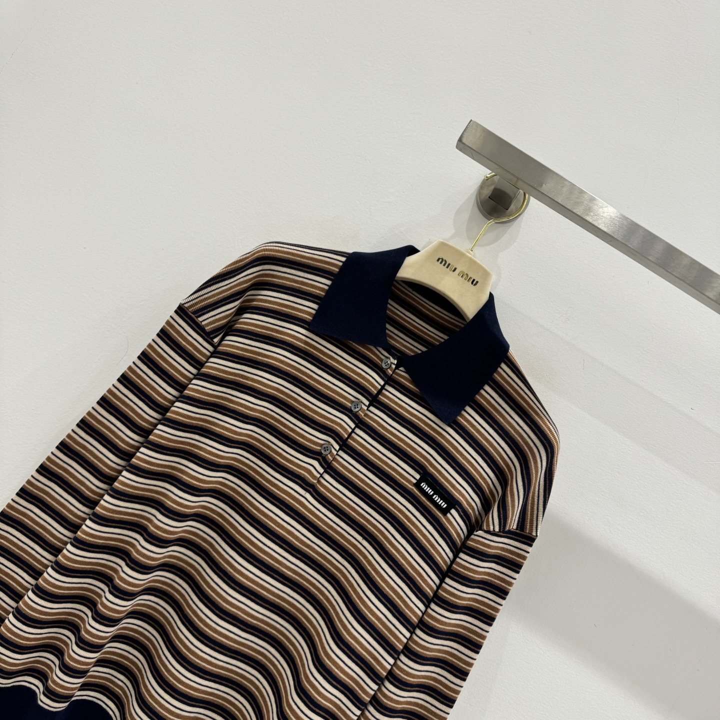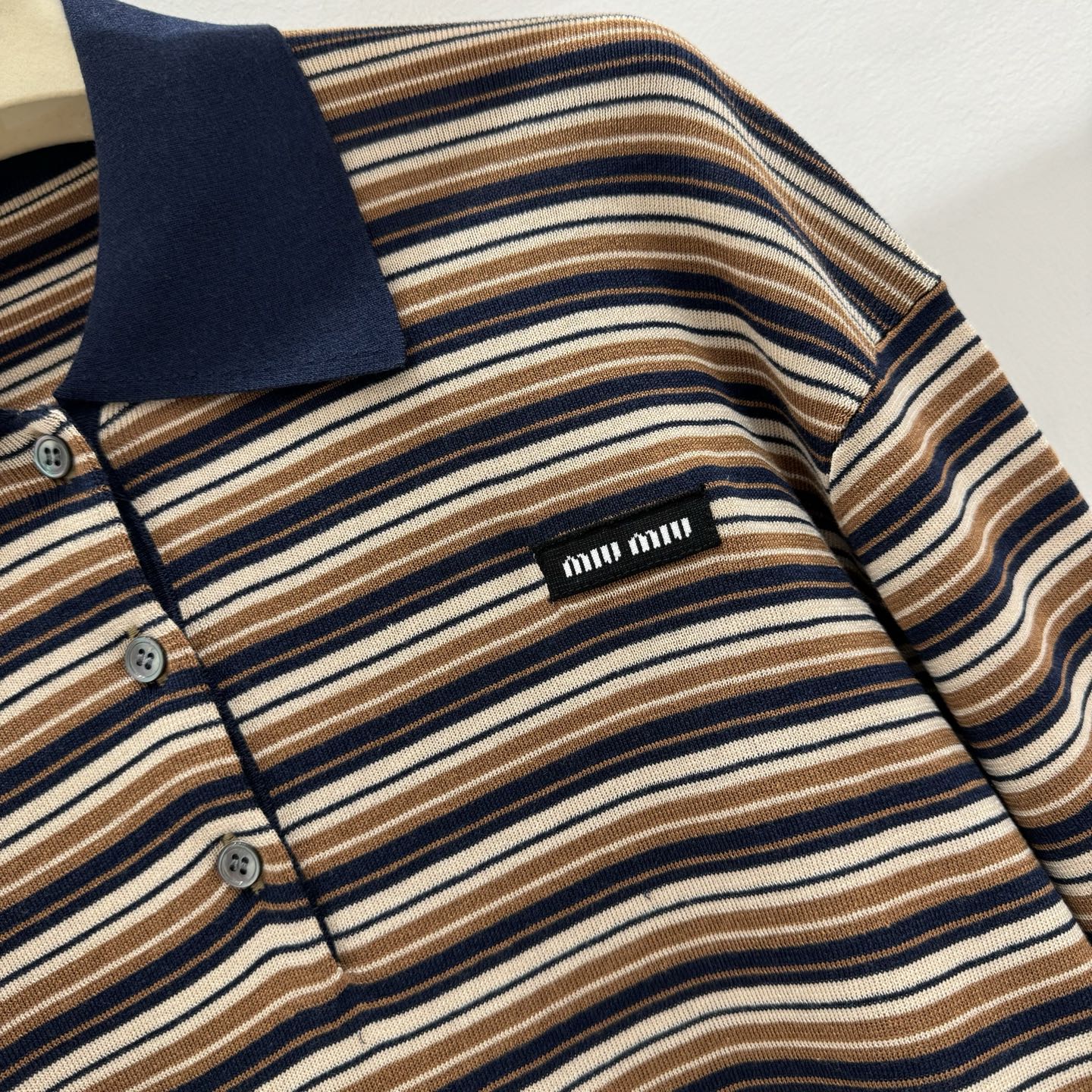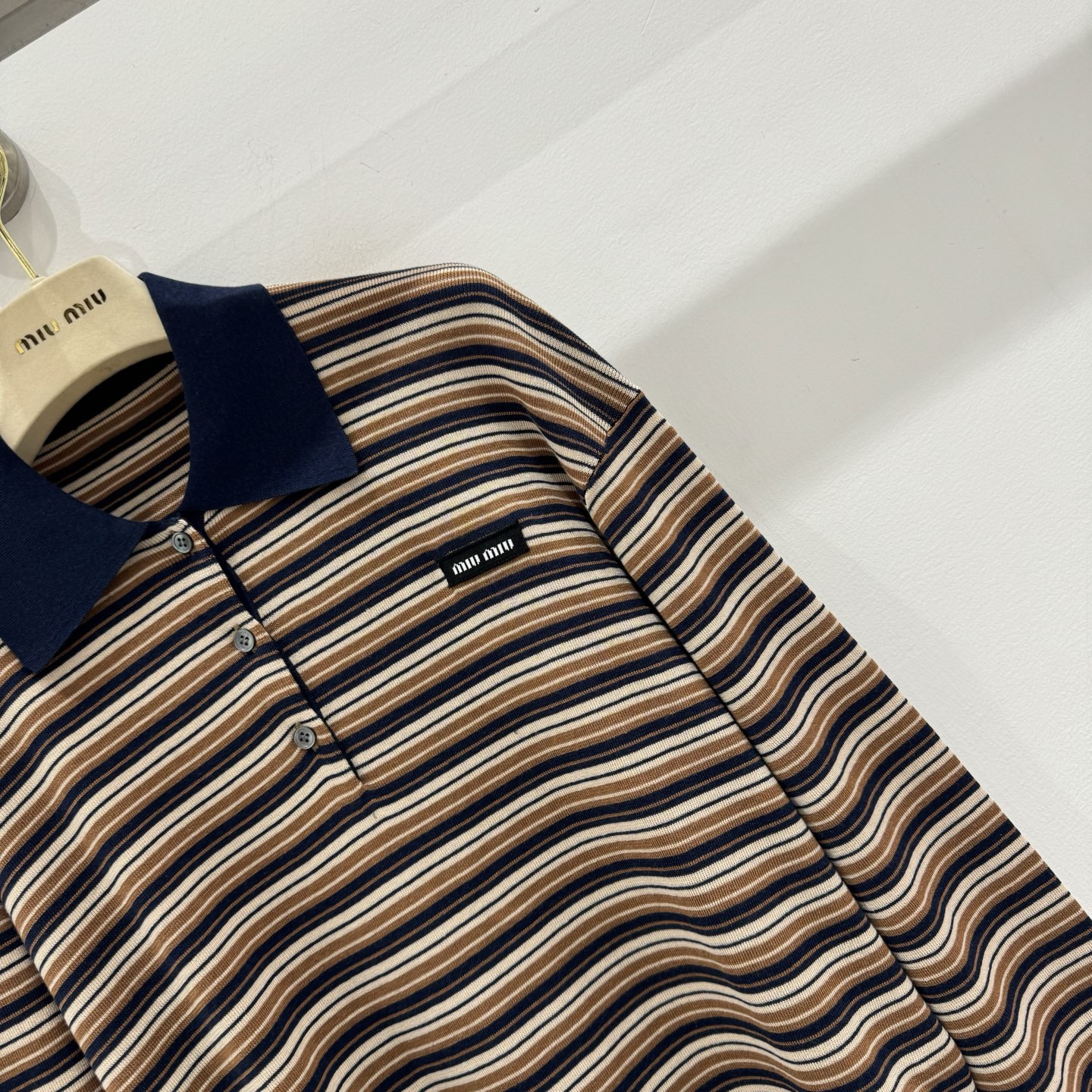 这款衣服是AAAAA 1:1 质量 (非常棒). 使用了和原版一模一样的材料. 商标部分也保持了和缪缪/Miu Miu一样. 图片拍摄是实物衣服拍摄, 您所收到的实物保证和我们图片一模一样.