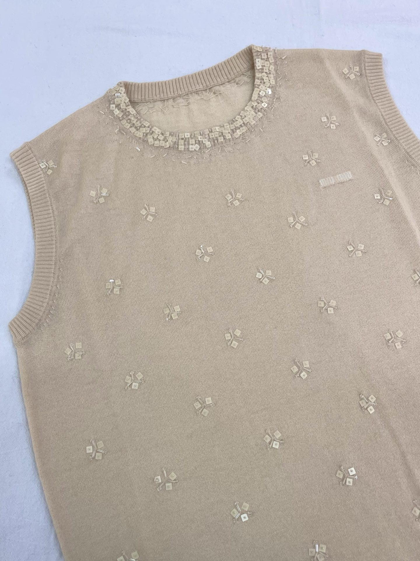 这款衣服是AAAAA 1:1 质量 (非常棒). 使用了和原版一模一样的材料. 商标部分也保持了和缪缪/Miu Miu一样. 图片拍摄是实物衣服拍摄, 您所收到的实物保证和我们图片一模一样.
