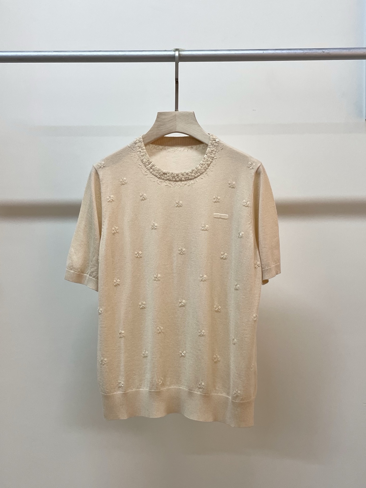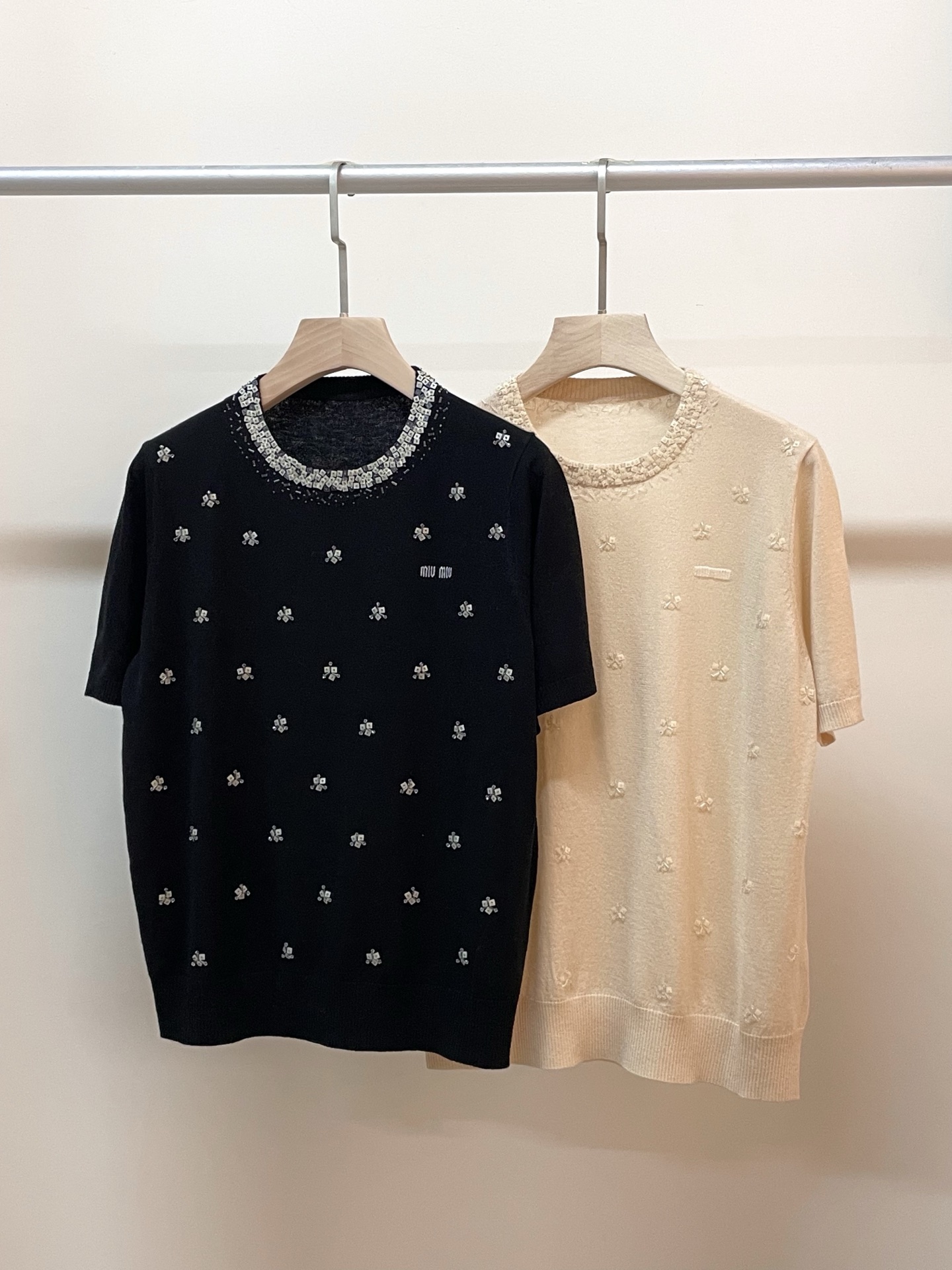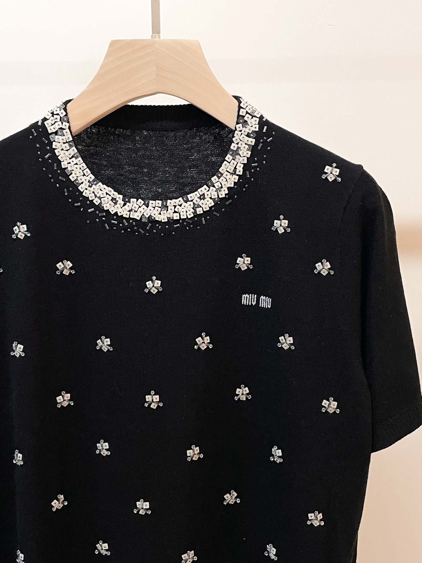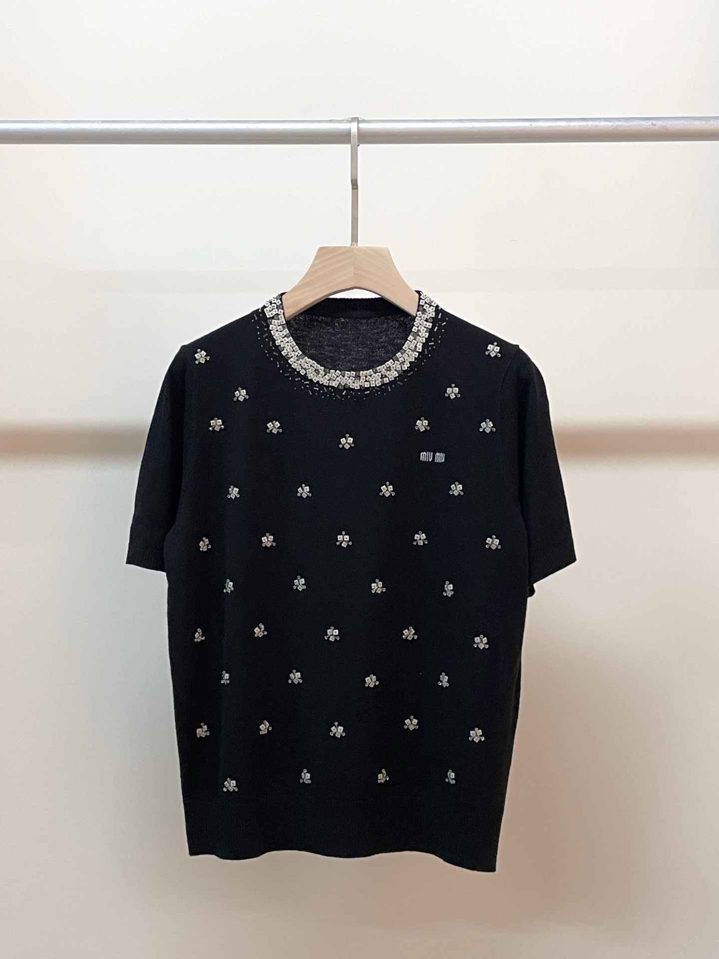 这款衣服是AAAAA 1:1 质量 (非常棒). 使用了和原版一模一样的材料. 商标部分也保持了和缪缪/Miu Miu一样. 图片拍摄是实物衣服拍摄, 您所收到的实物保证和我们图片一模一样.