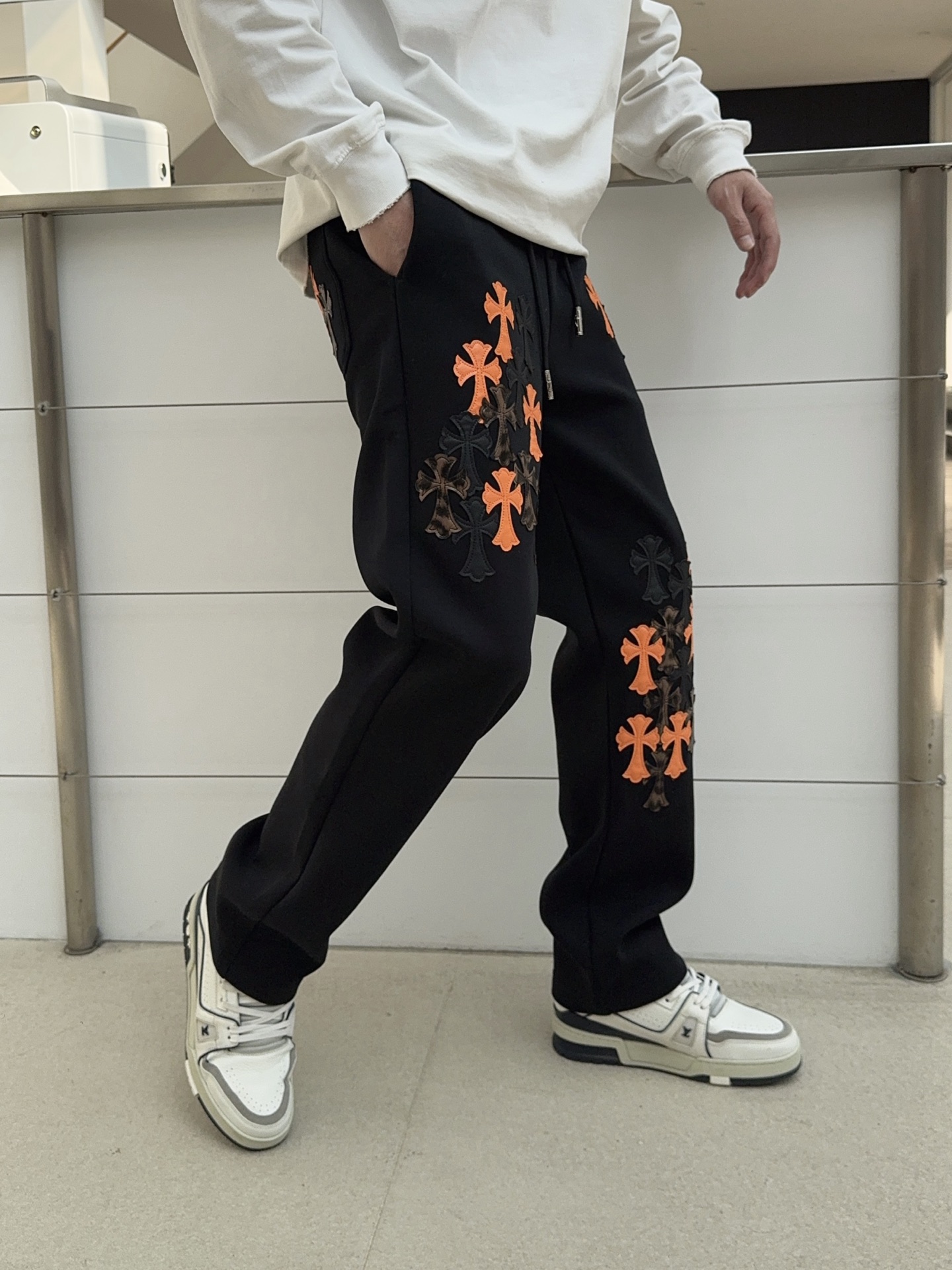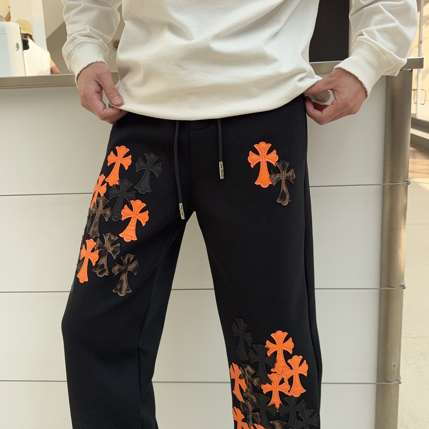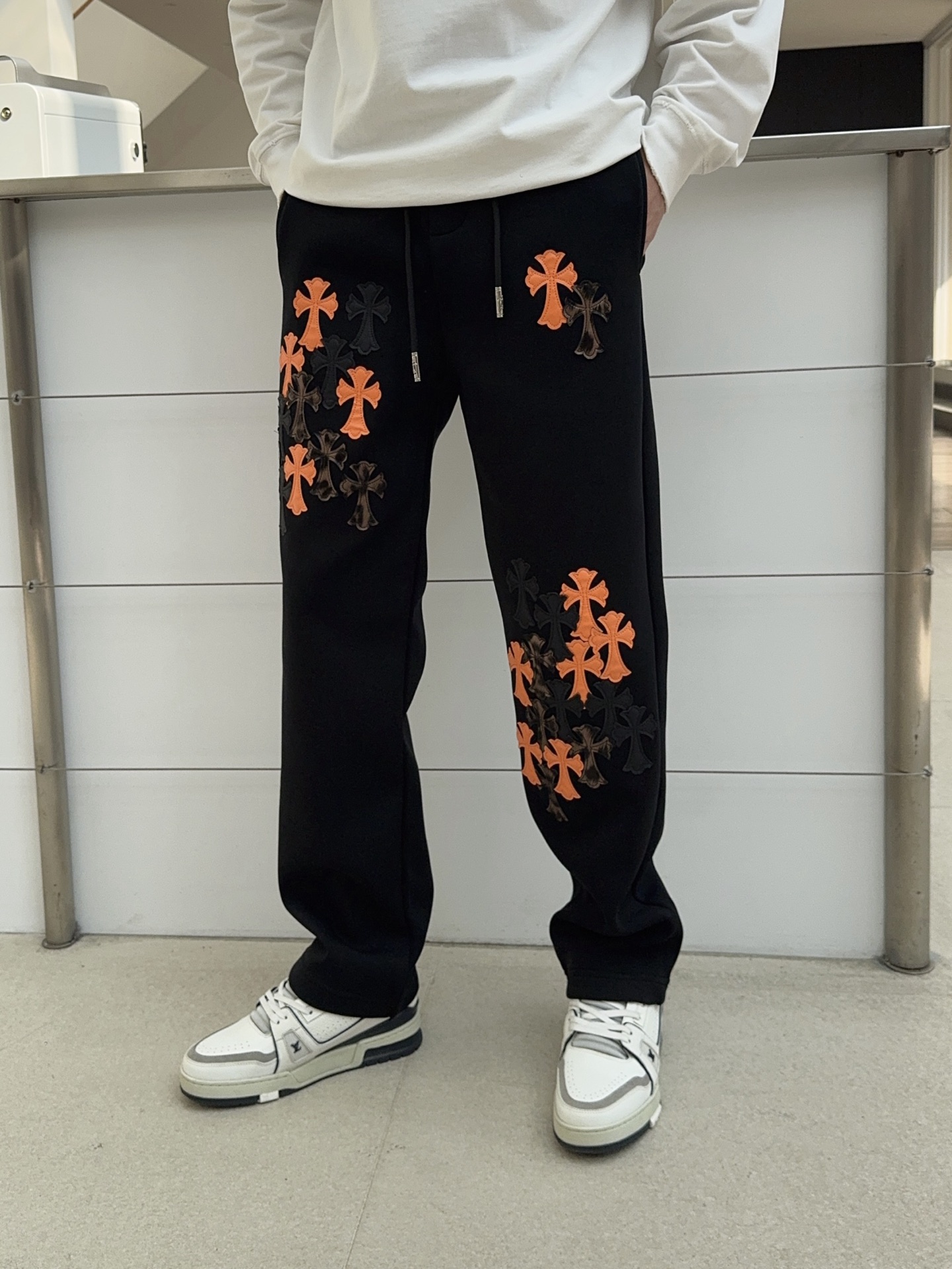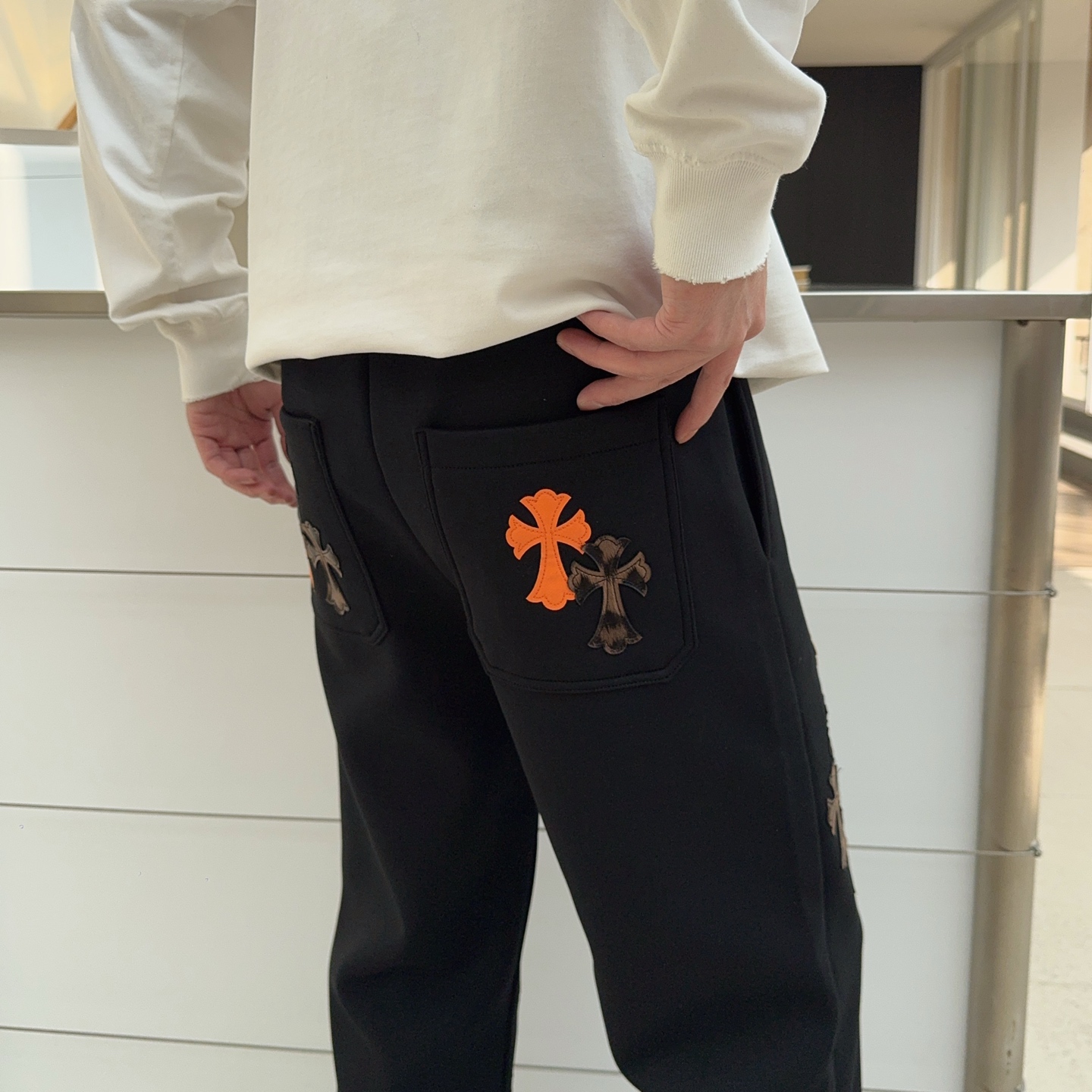 这款衣服是AAAAA 1:1 质量 (非常棒). 使用了和原版一模一样的材料. 商标部分也保持了和克罗心/Chrome Hearts一样. 图片拍摄是实物衣服拍摄, 您所收到的实物保证和我们图片一模一样.
