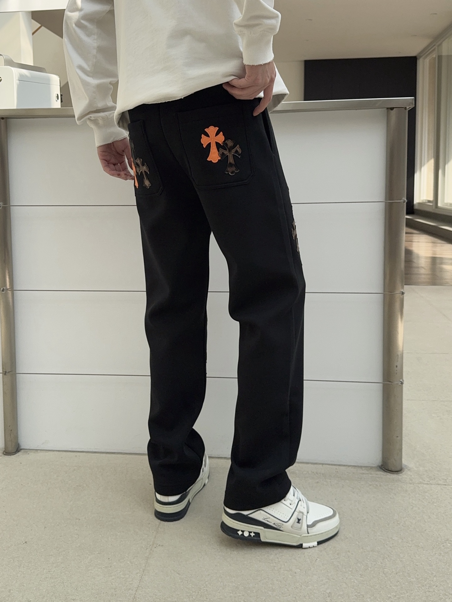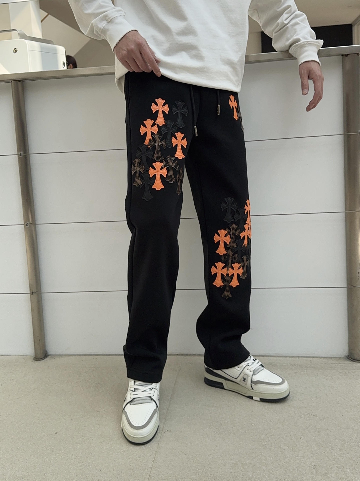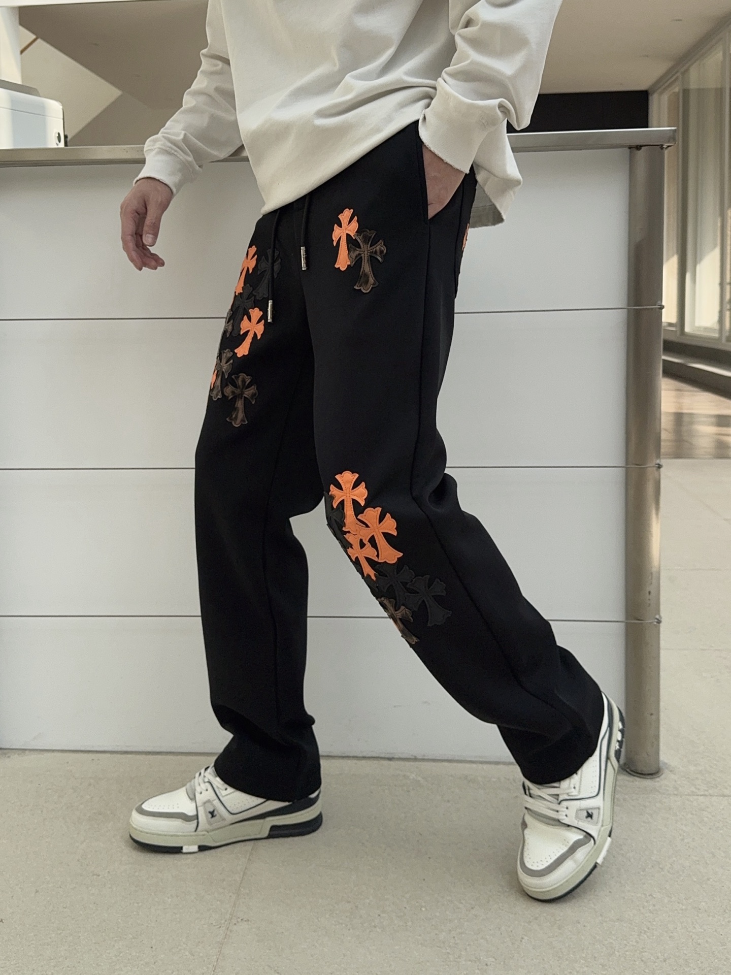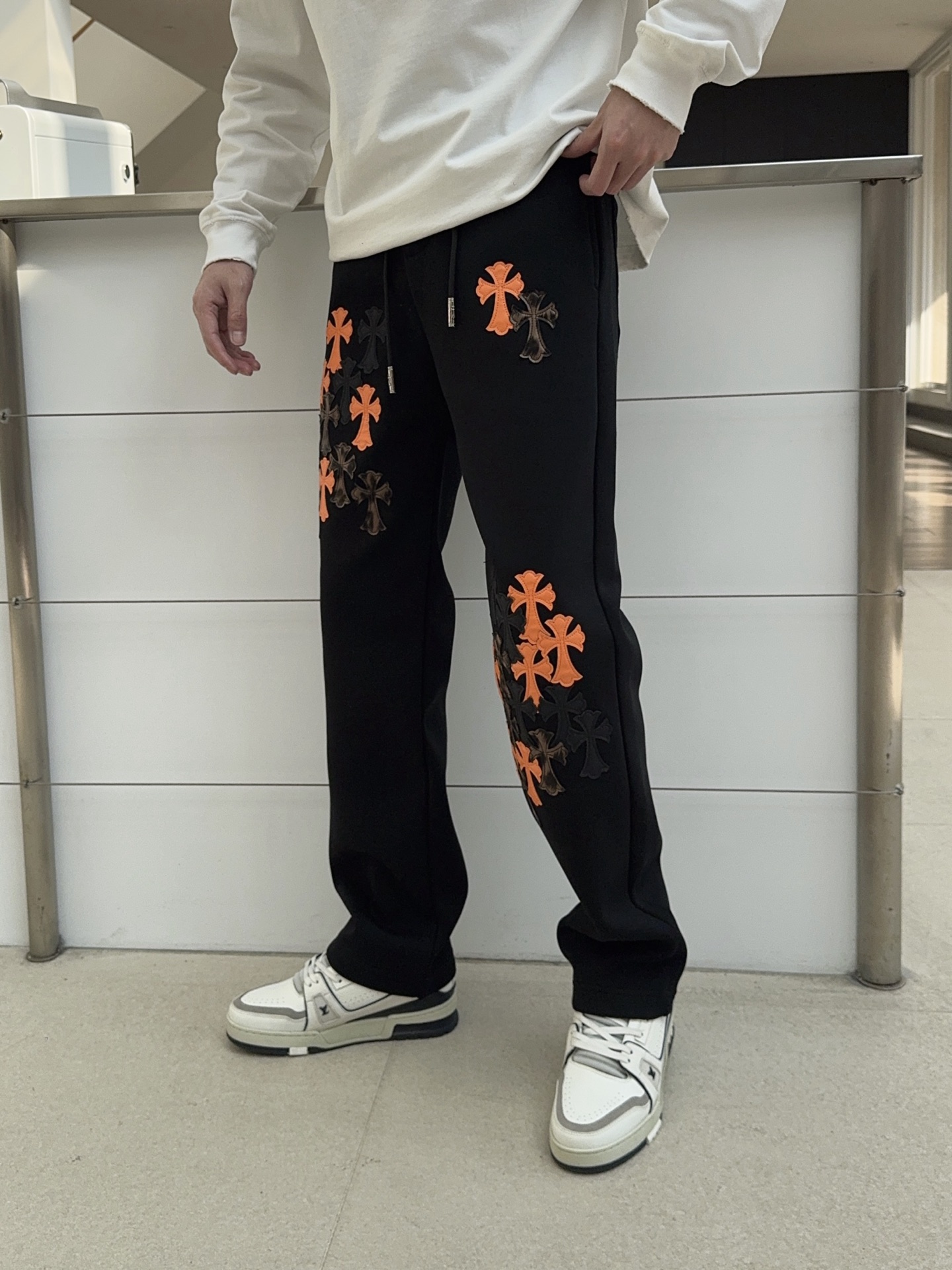 这款衣服是AAAAA 1:1 质量 (非常棒). 使用了和原版一模一样的材料. 商标部分也保持了和克罗心/Chrome Hearts一样. 图片拍摄是实物衣服拍摄, 您所收到的实物保证和我们图片一模一样.